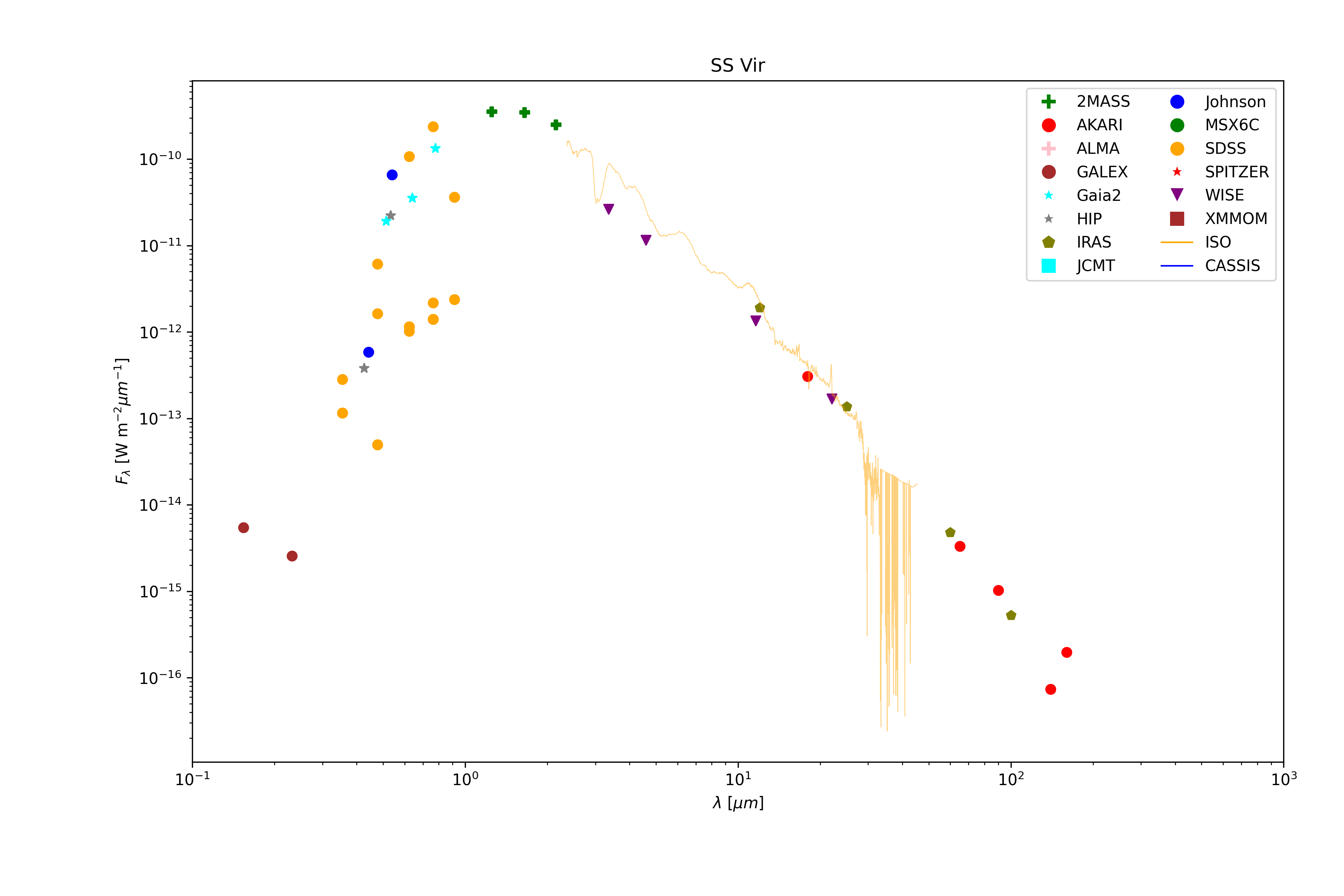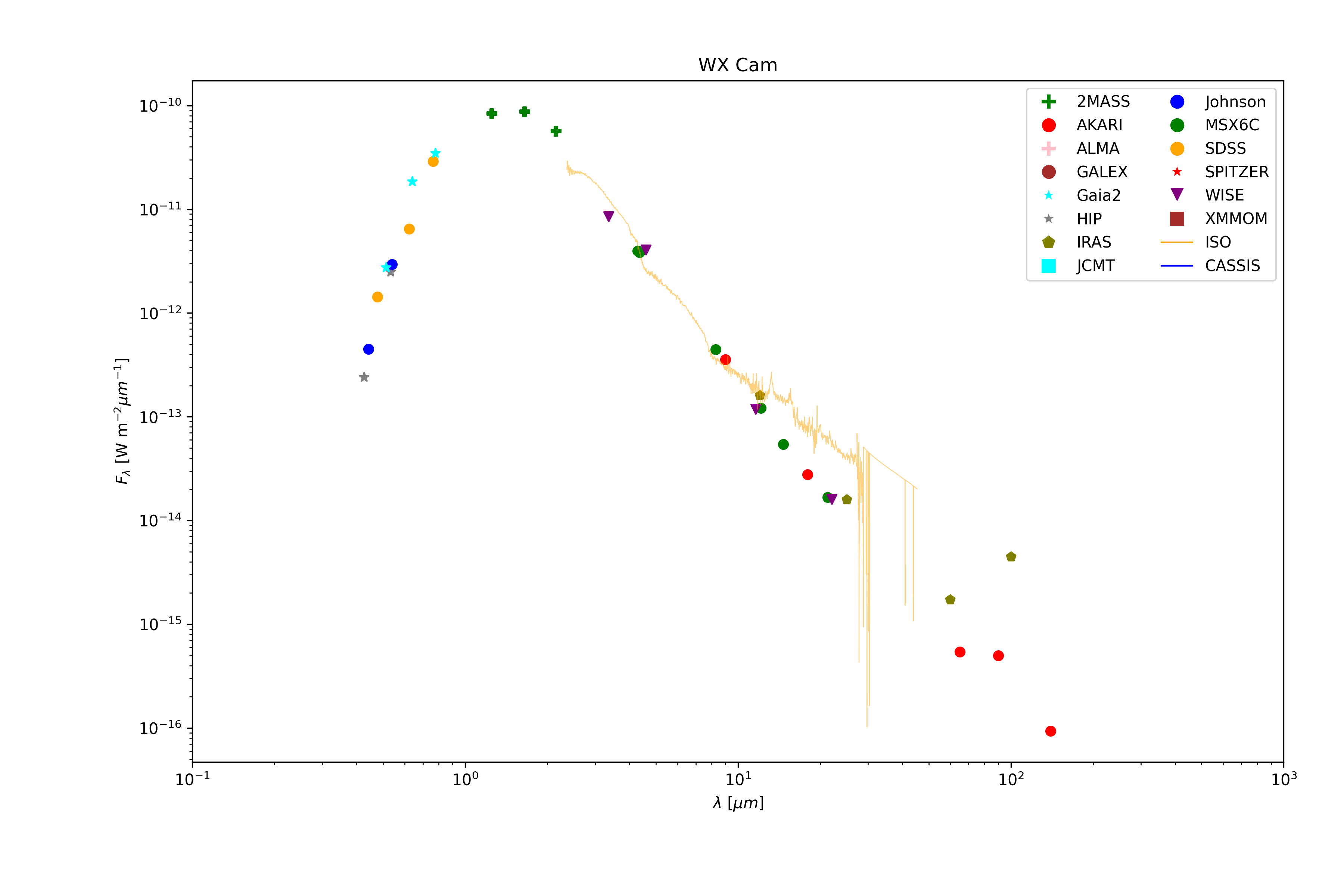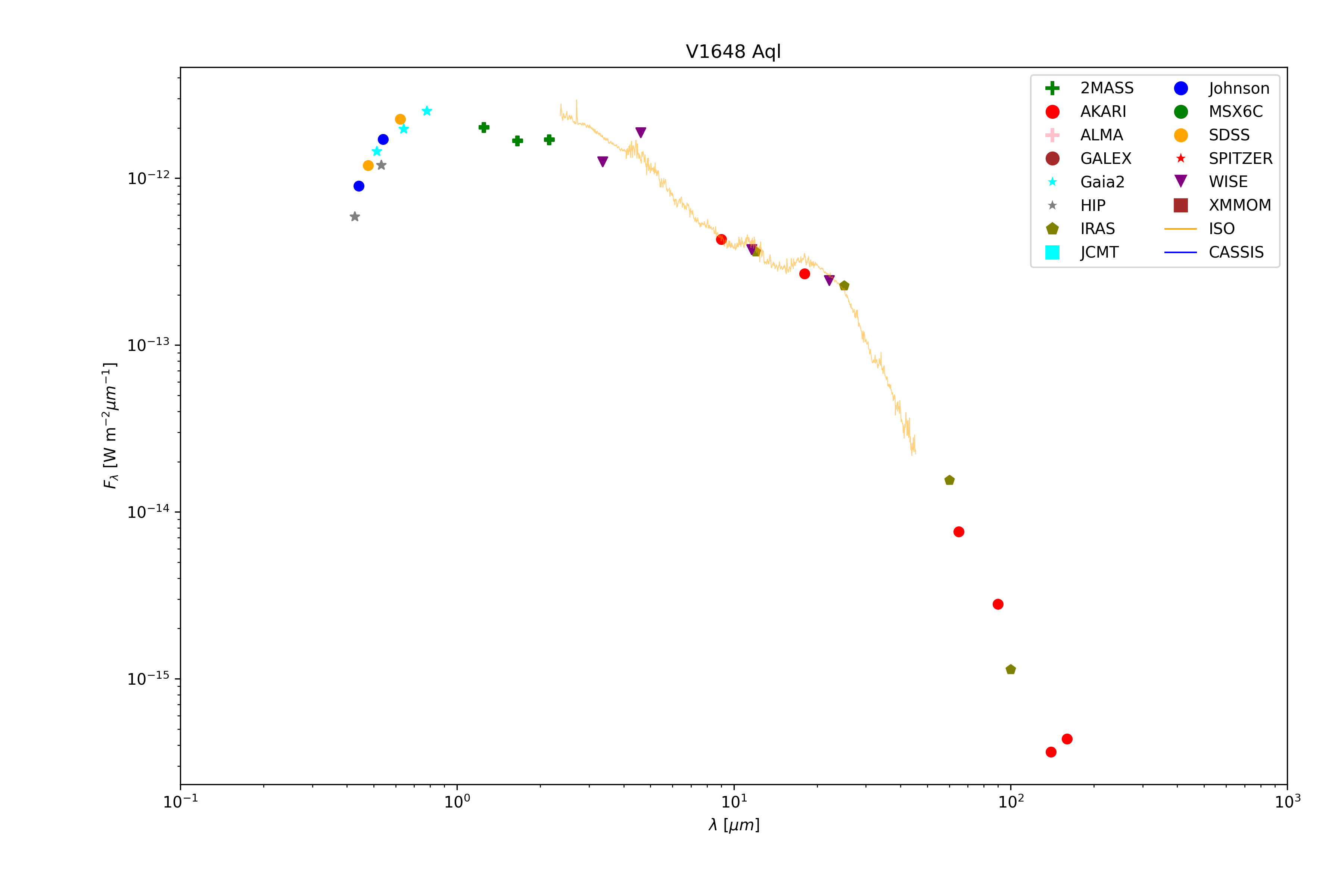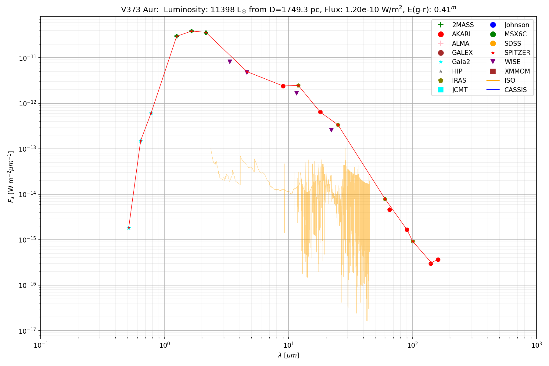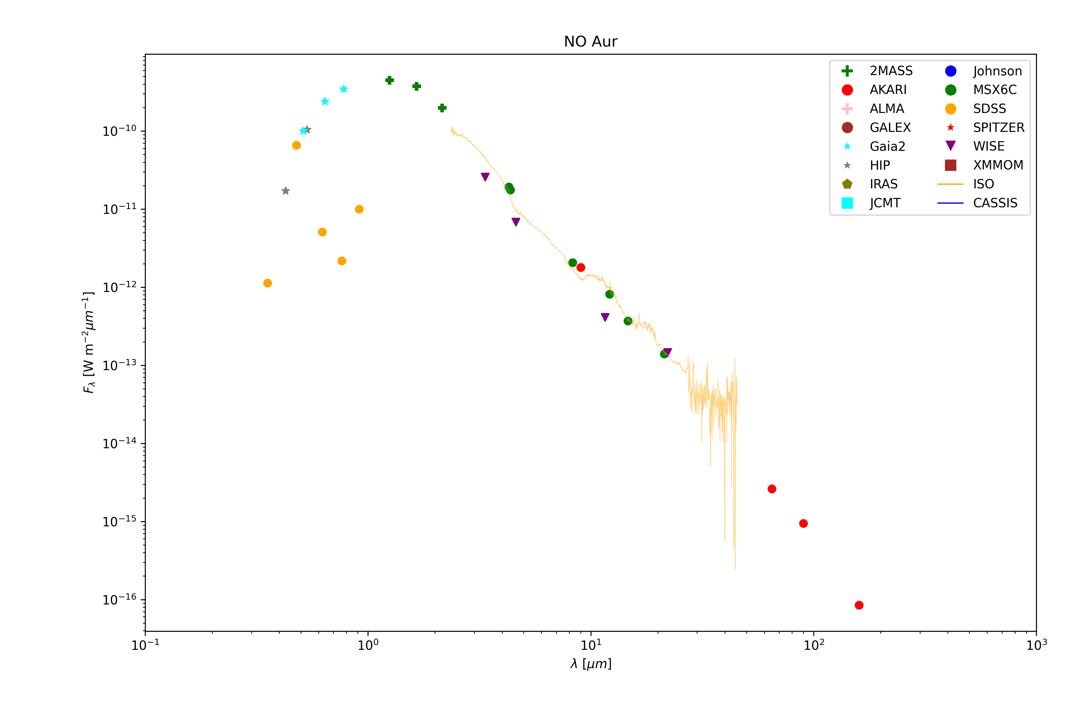 So, for each object, a file with our collected photometry, a file with the SED (corrected and uncorrected for interstellar absorption), a JSON containing all defined and collected data, and an archive with all ISO and Spitzer data and spectra (if available) are available.