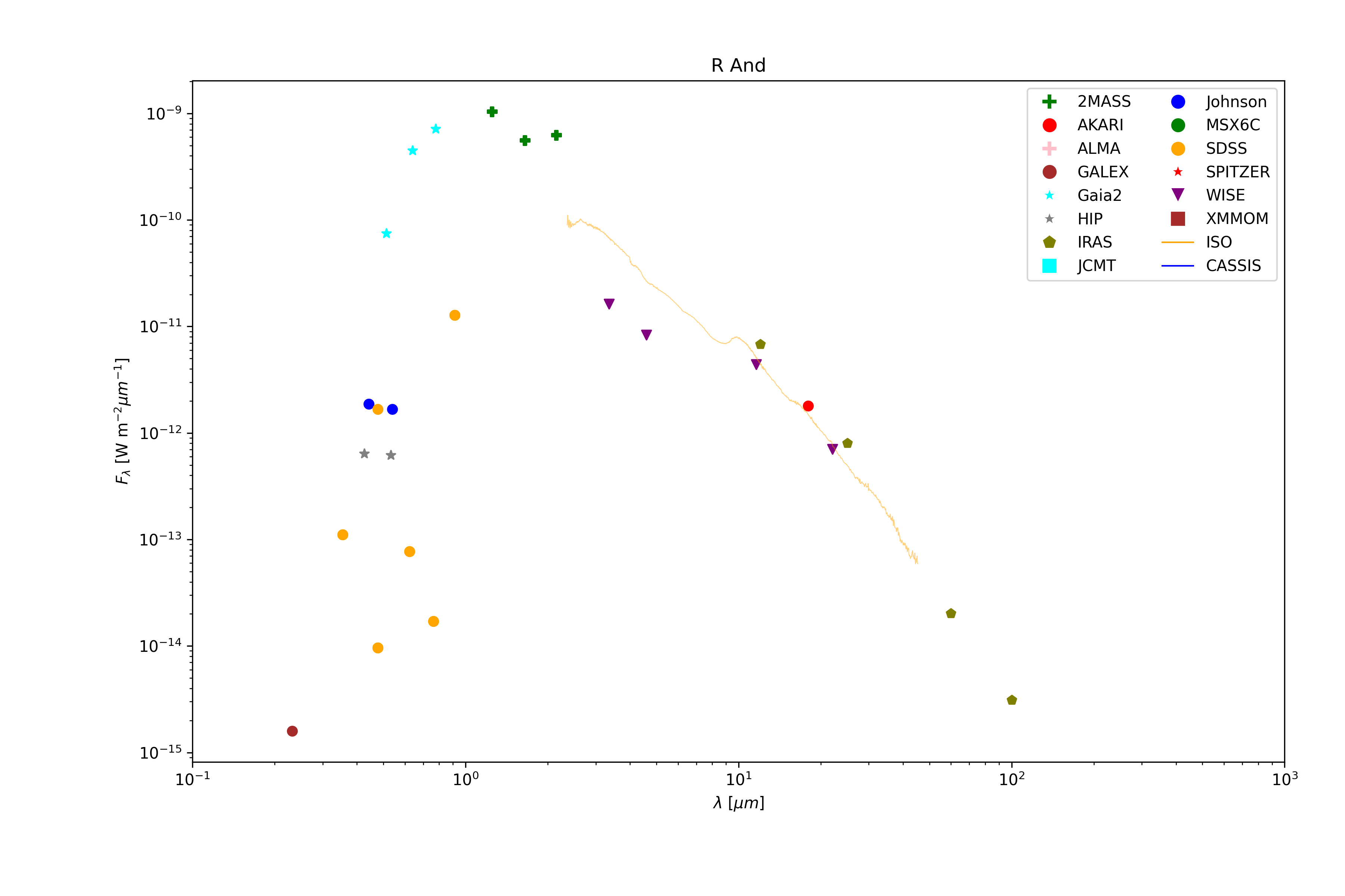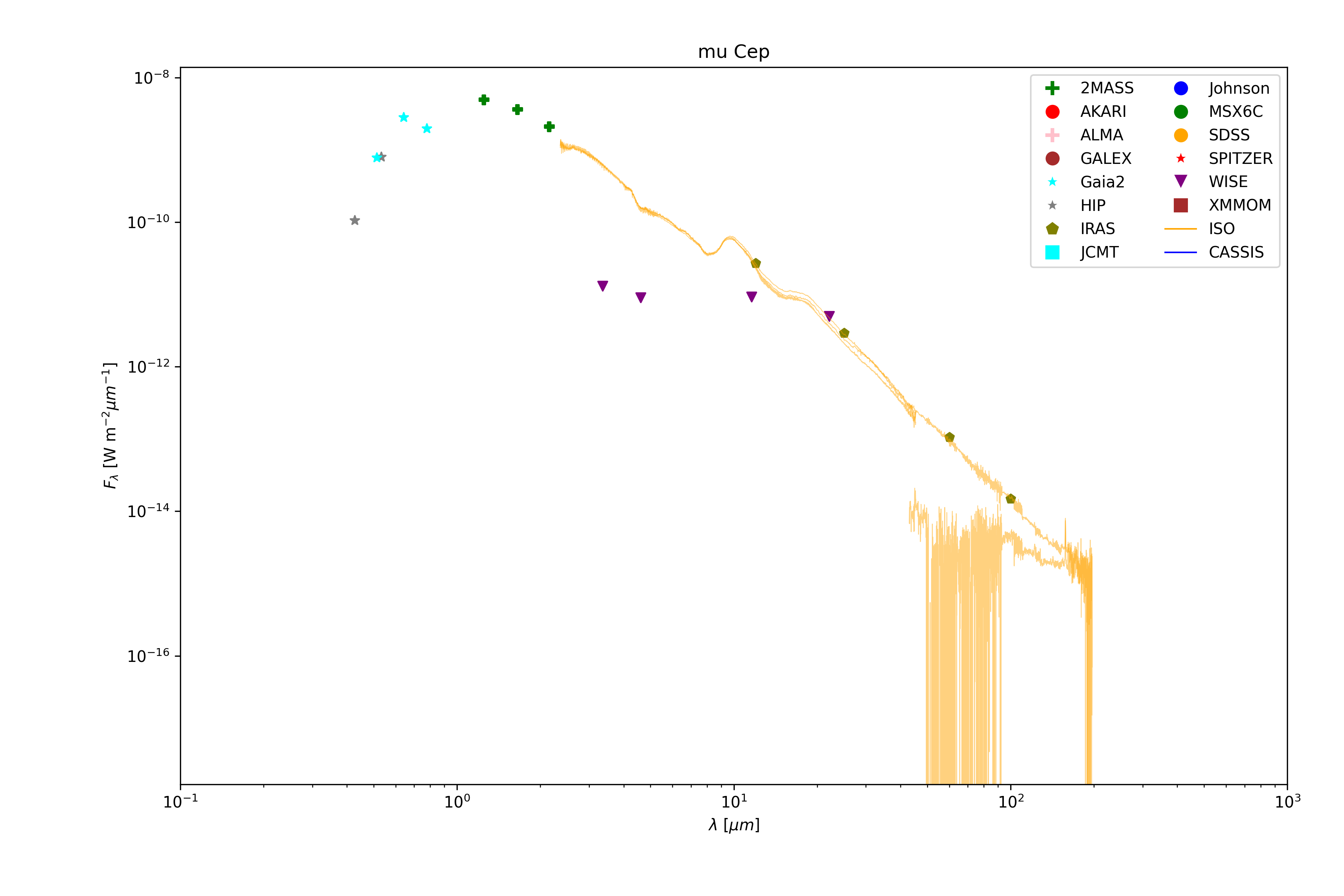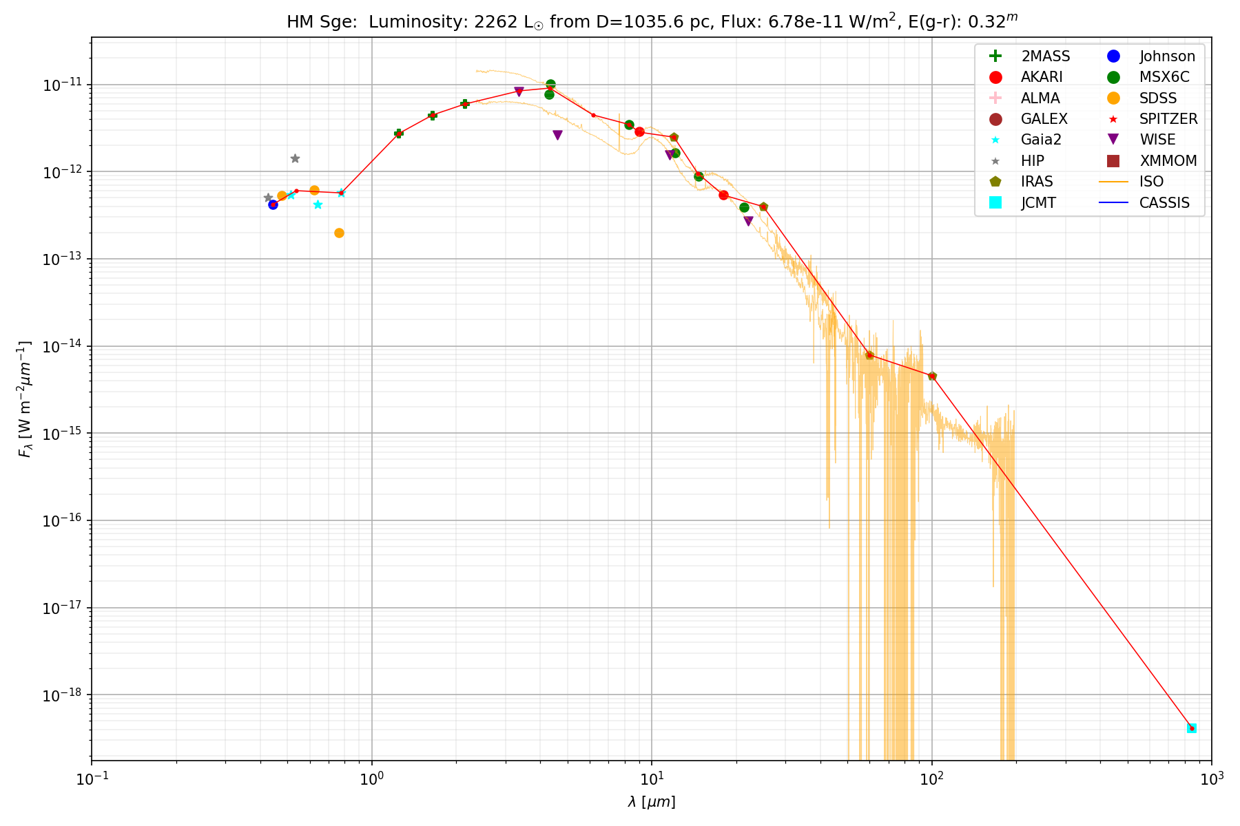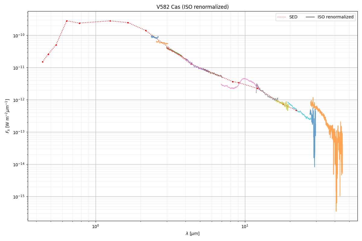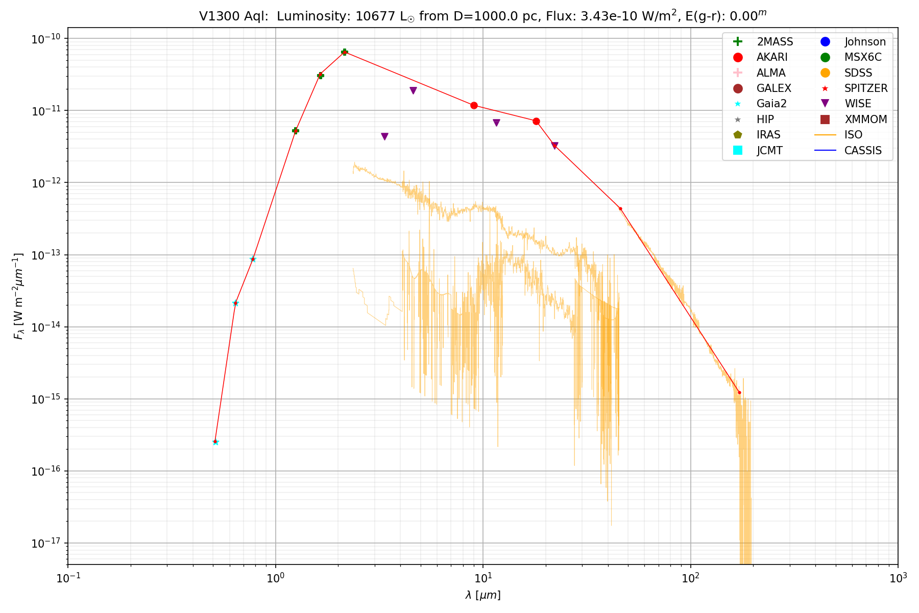 So, for each object, a file with our collected photometry, a file with the SED (corrected and uncorrected for interstellar absorption), a JSON containing all defined and collected data, and an archive with all ISO and Spitzer data and spectra (if available) are available.