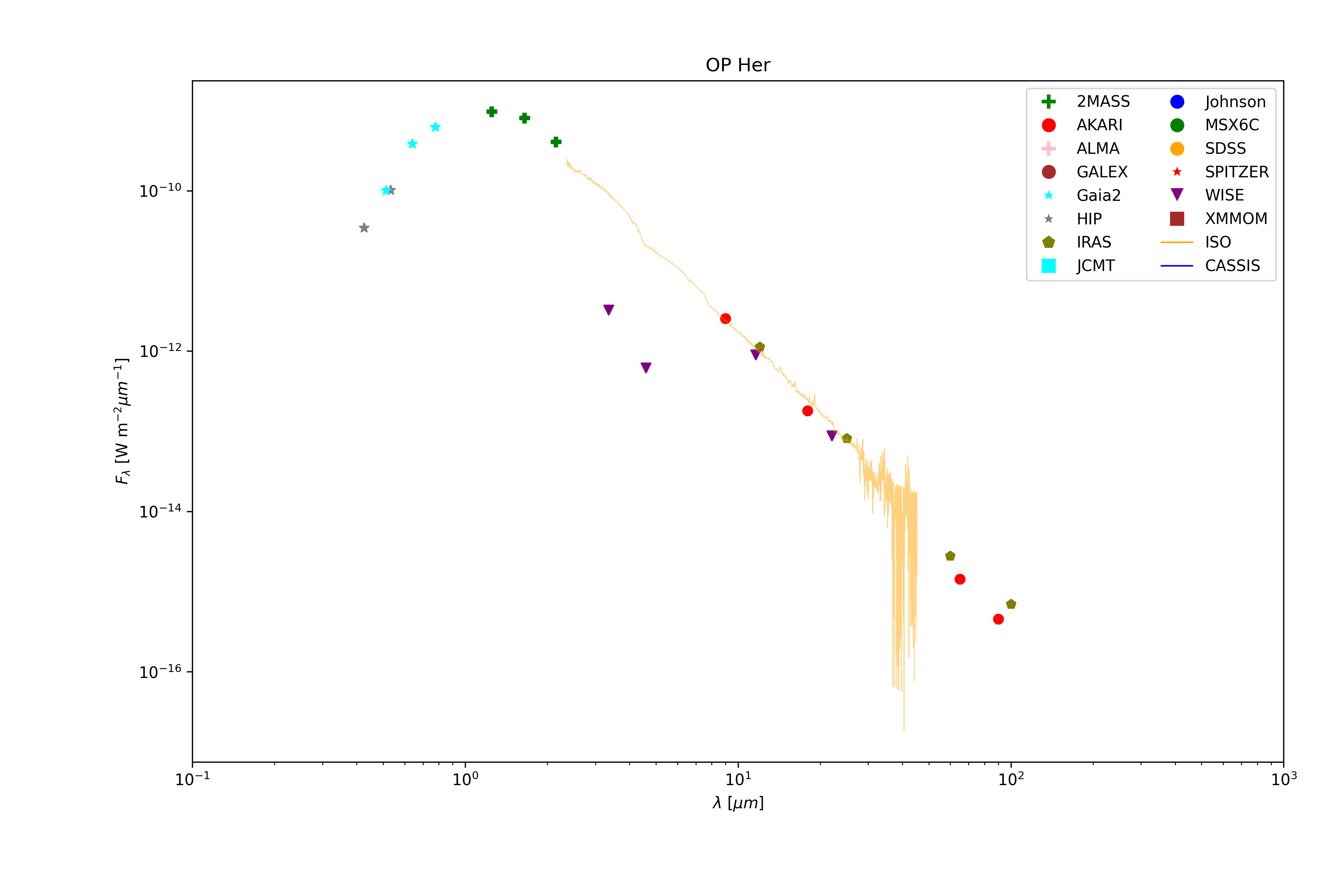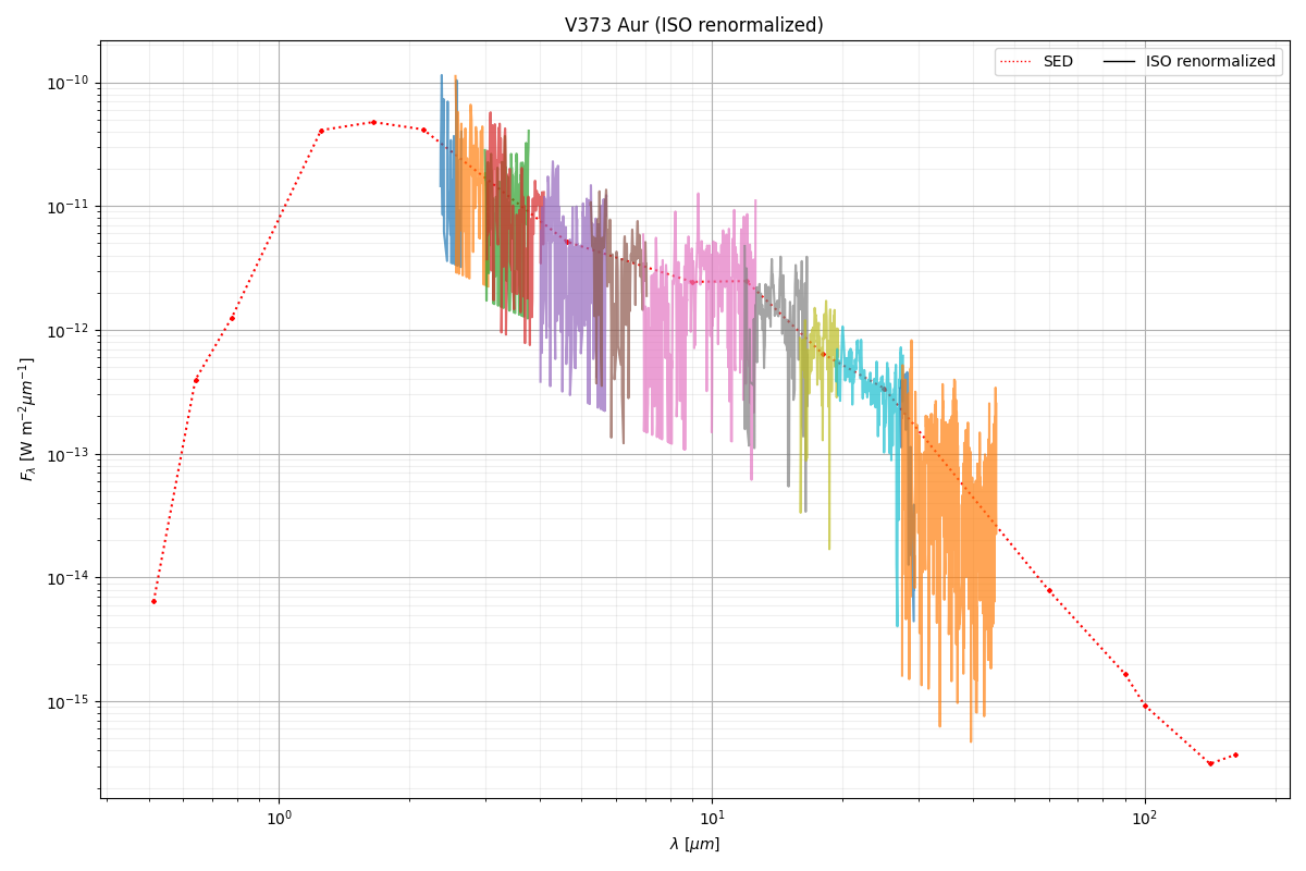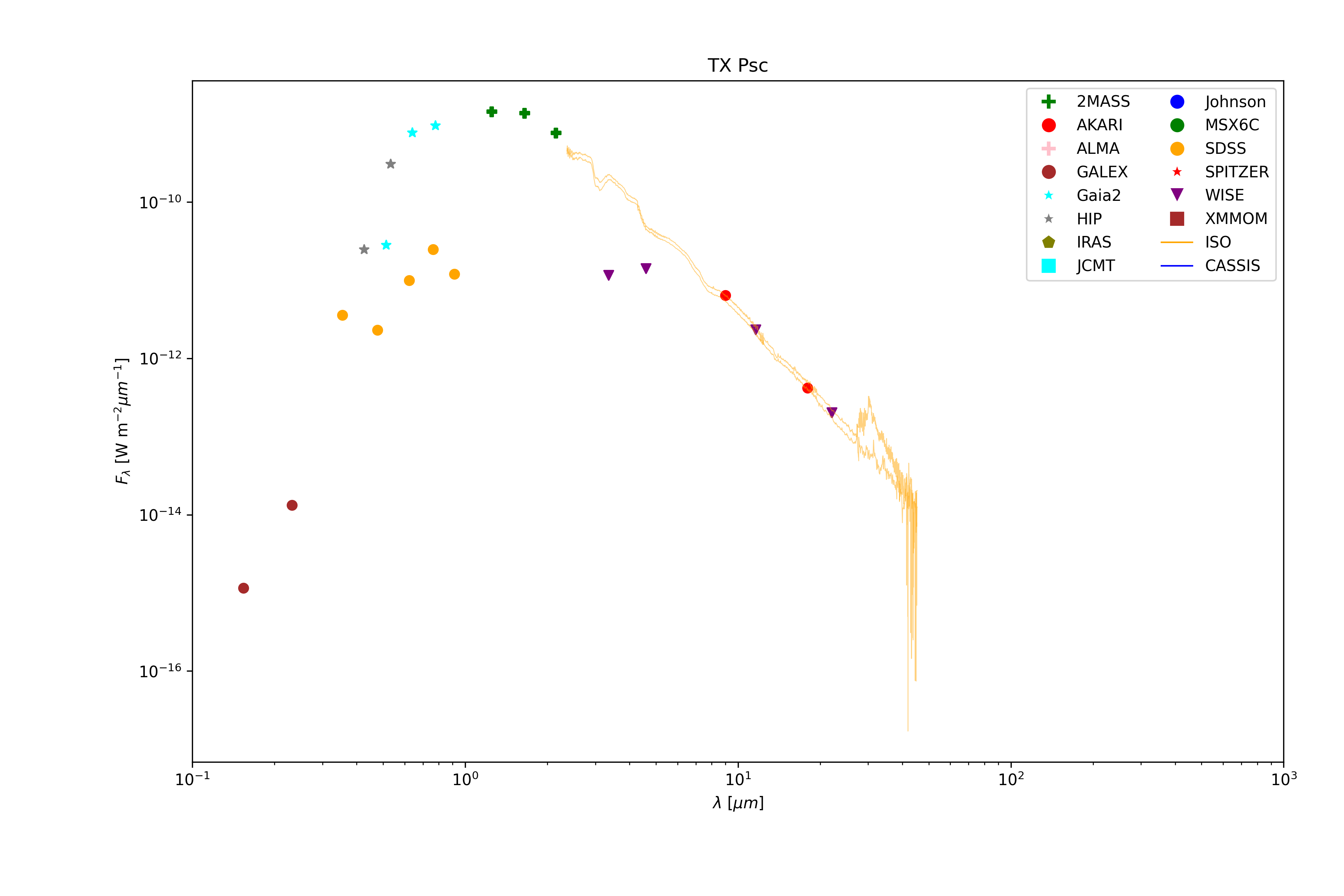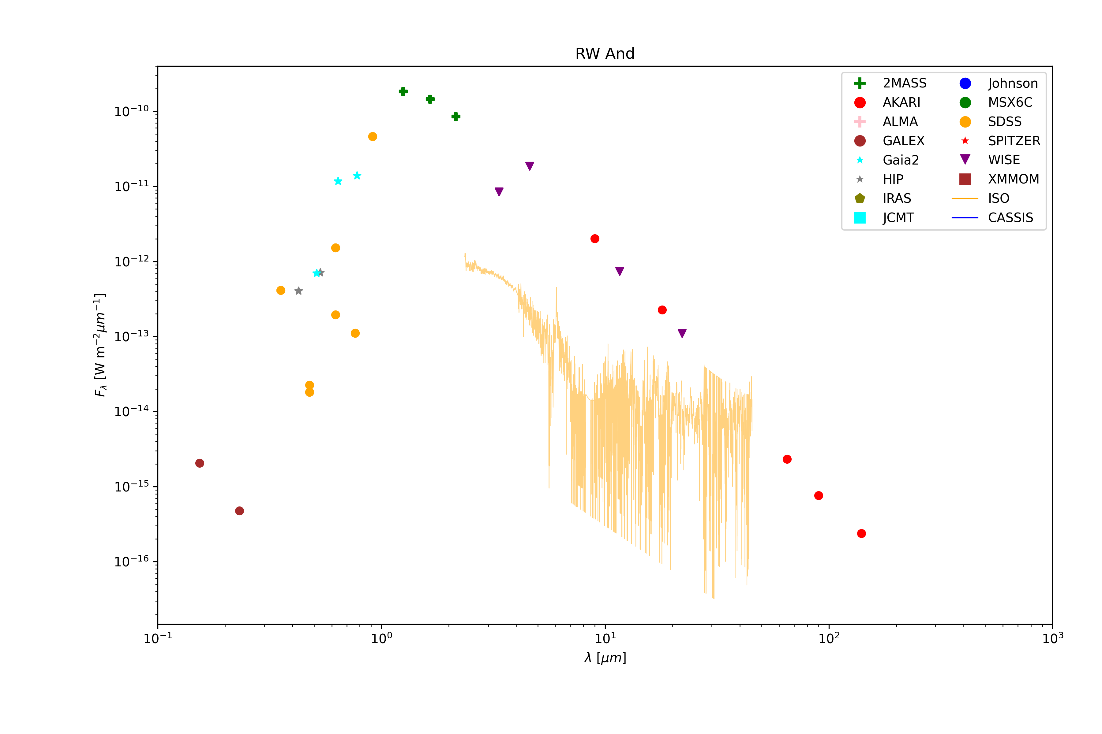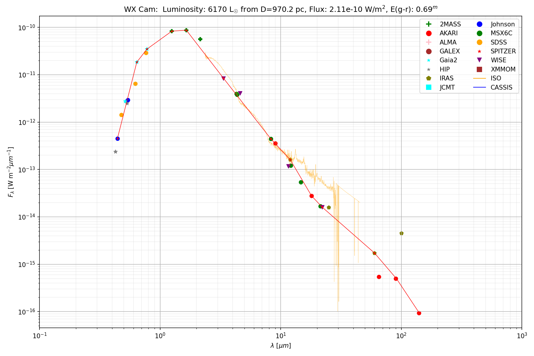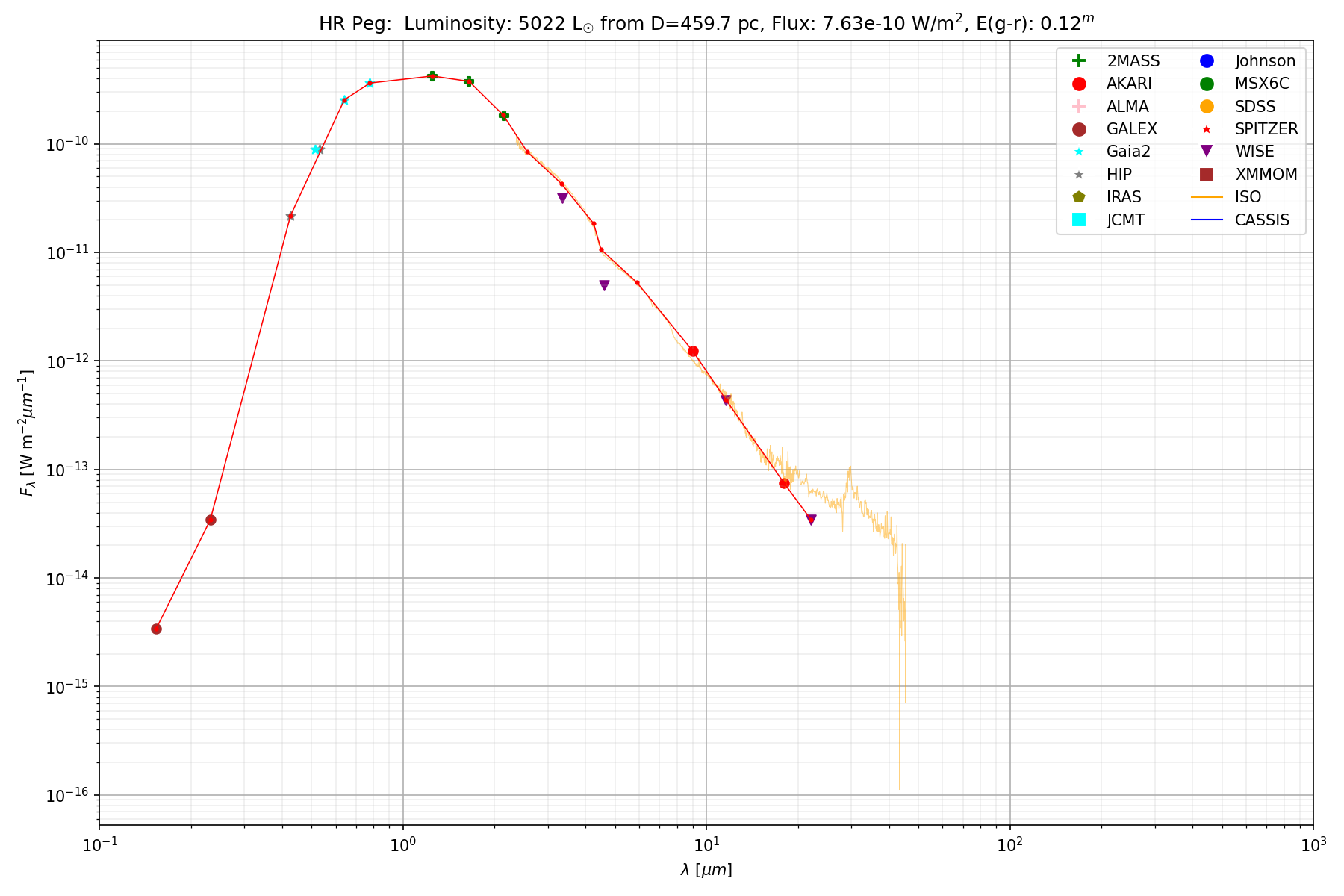 So, for each object, a file with our collected photometry, a file with the SED (corrected and uncorrected for interstellar absorption), a JSON containing all defined and collected data, and an archive with all ISO and Spitzer data and spectra (if available) are available.