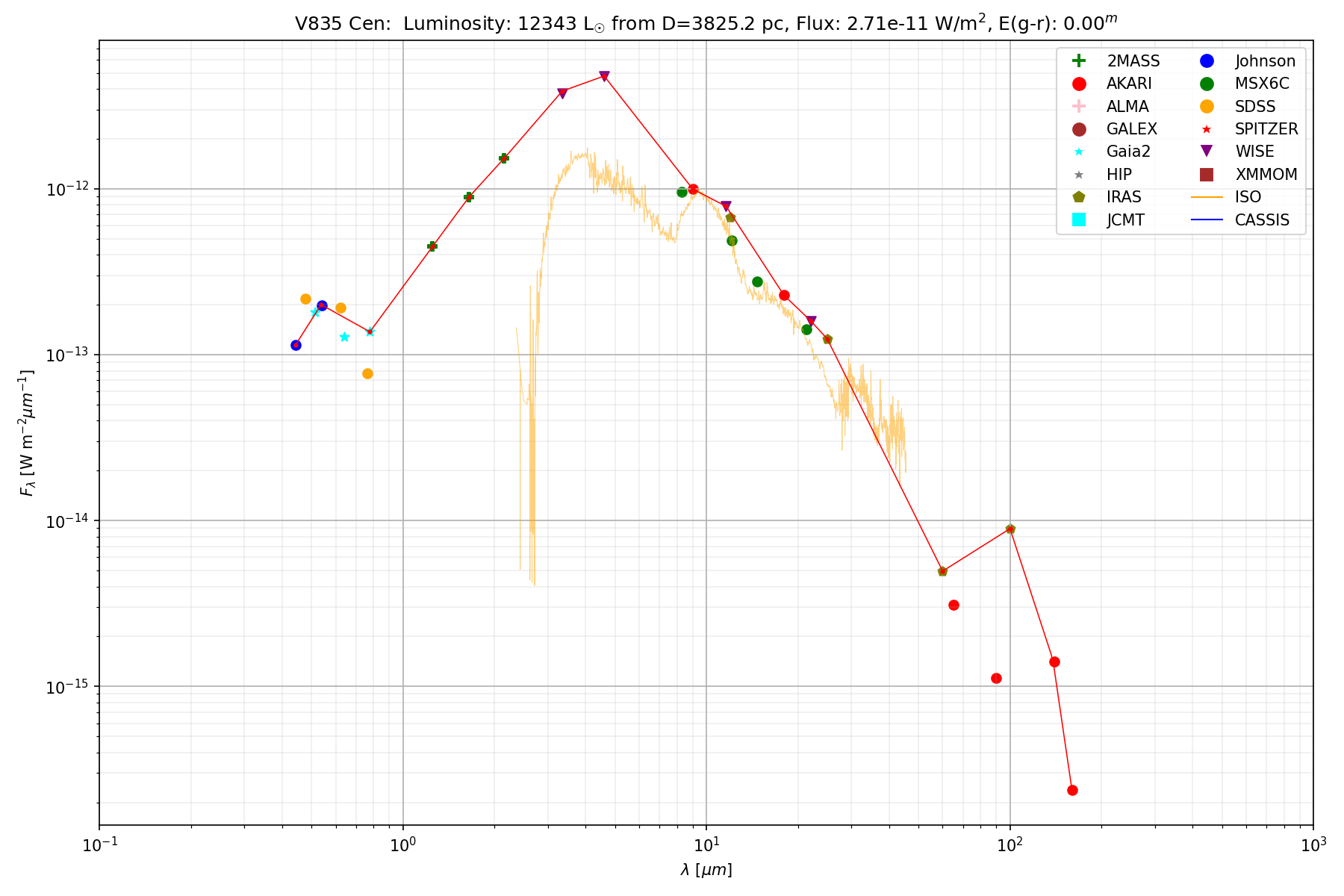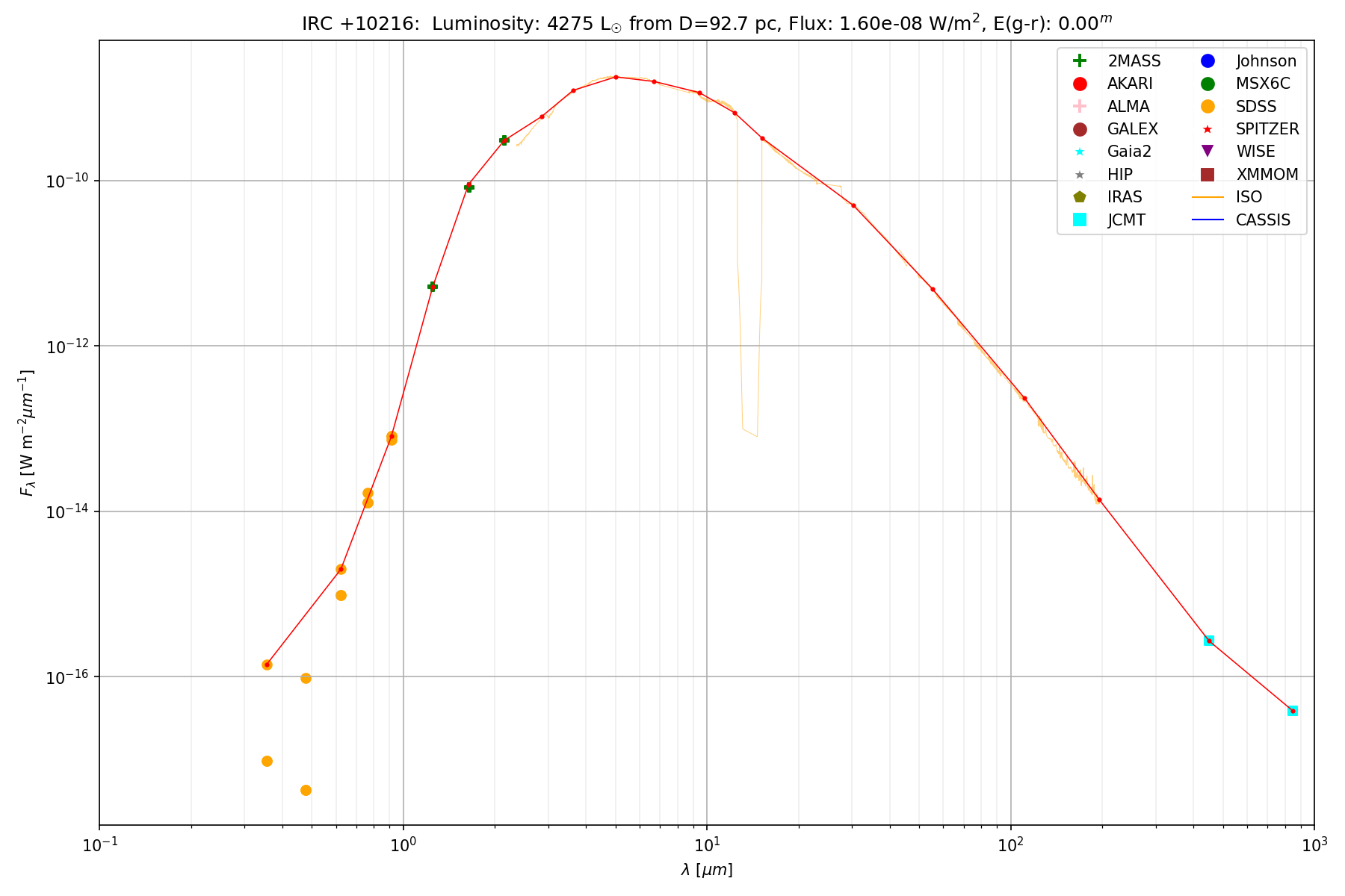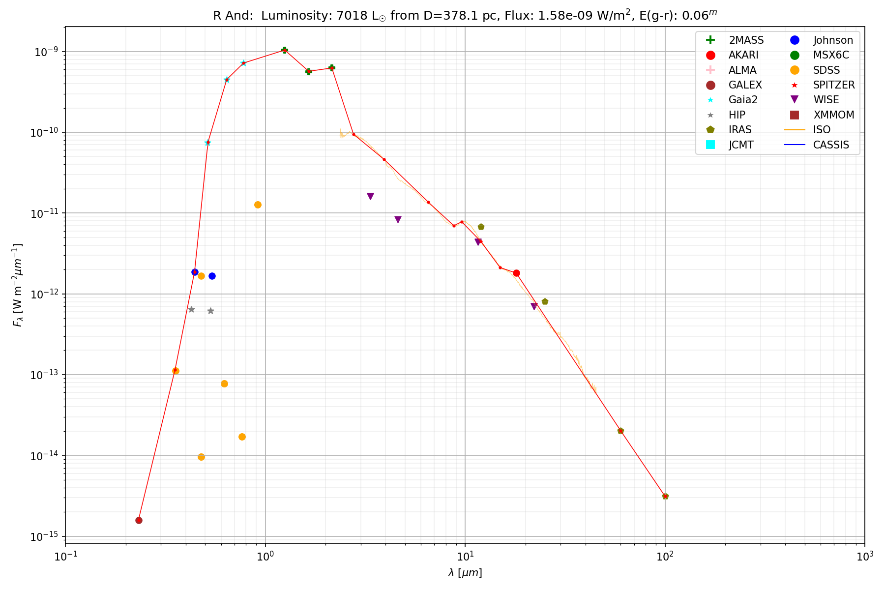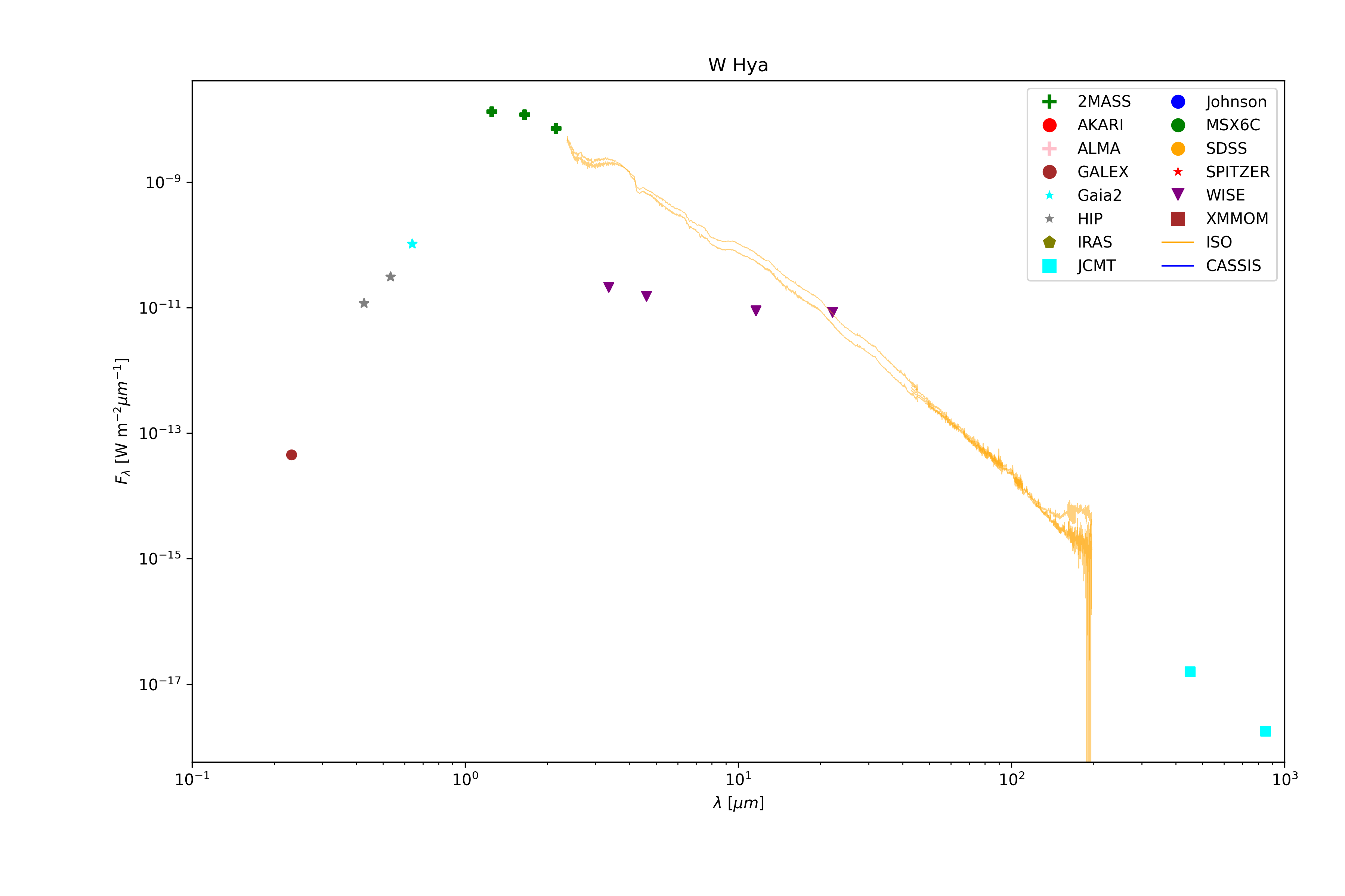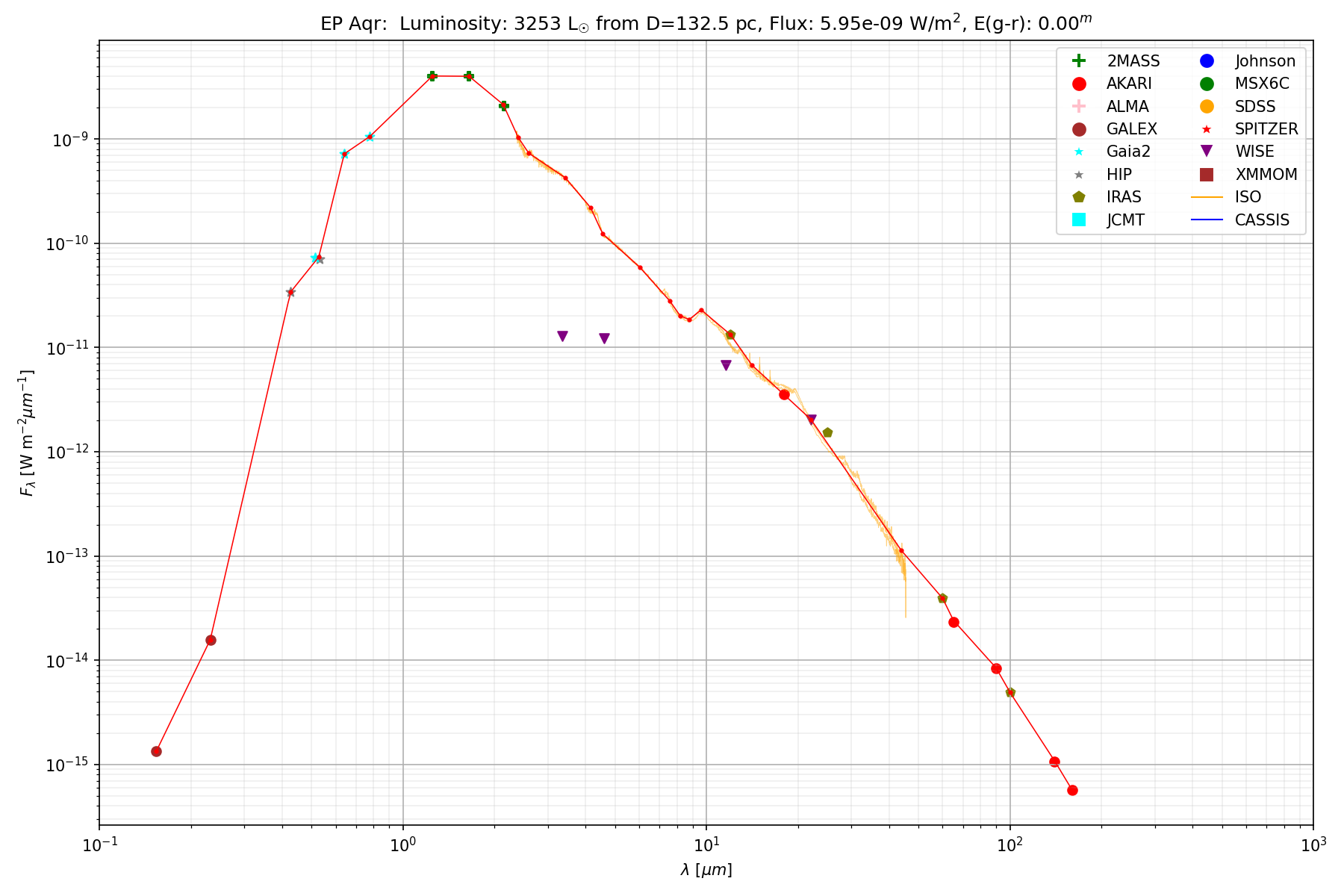 So, for each object, a file with our collected photometry, a file with the SED (corrected and uncorrected for interstellar absorption), a JSON containing all defined and collected data, and an archive with all ISO and Spitzer data and spectra (if available) are available.