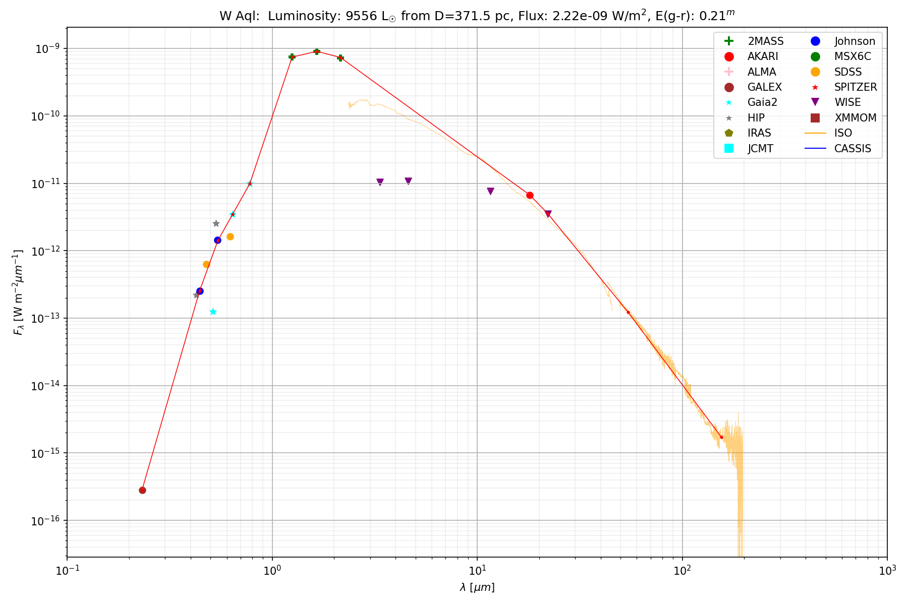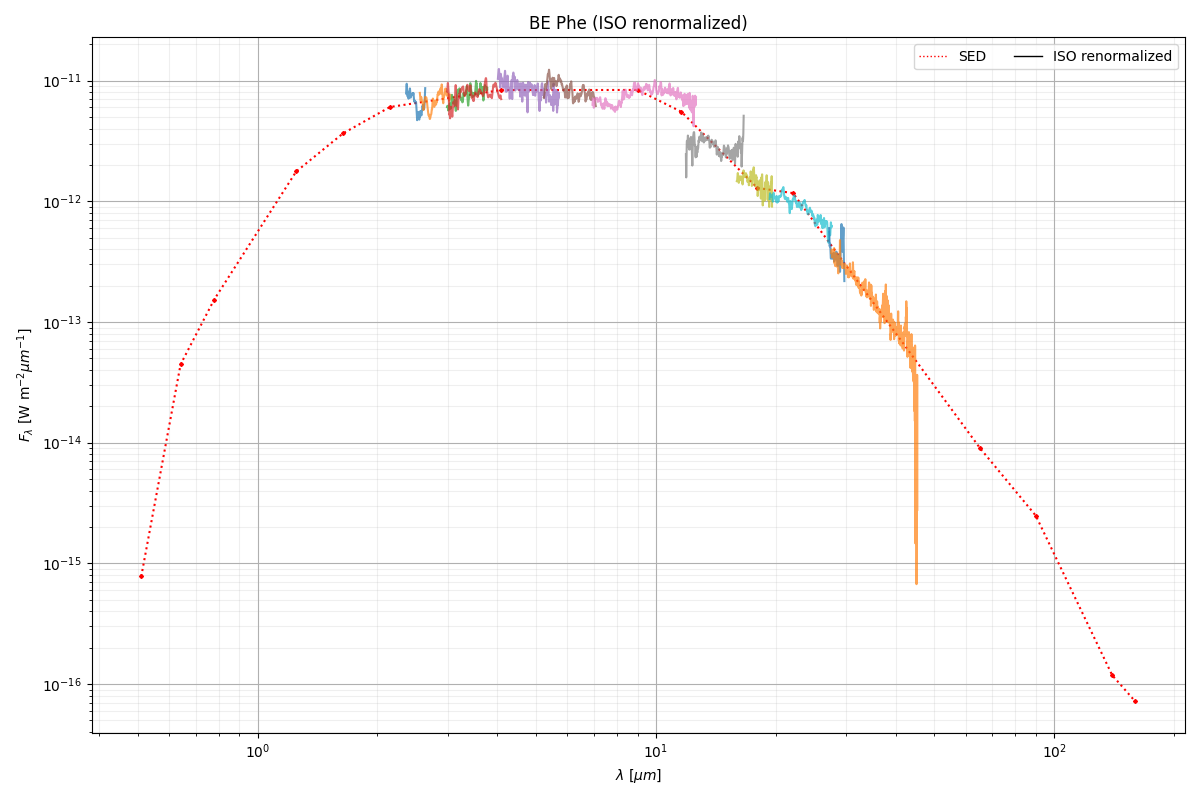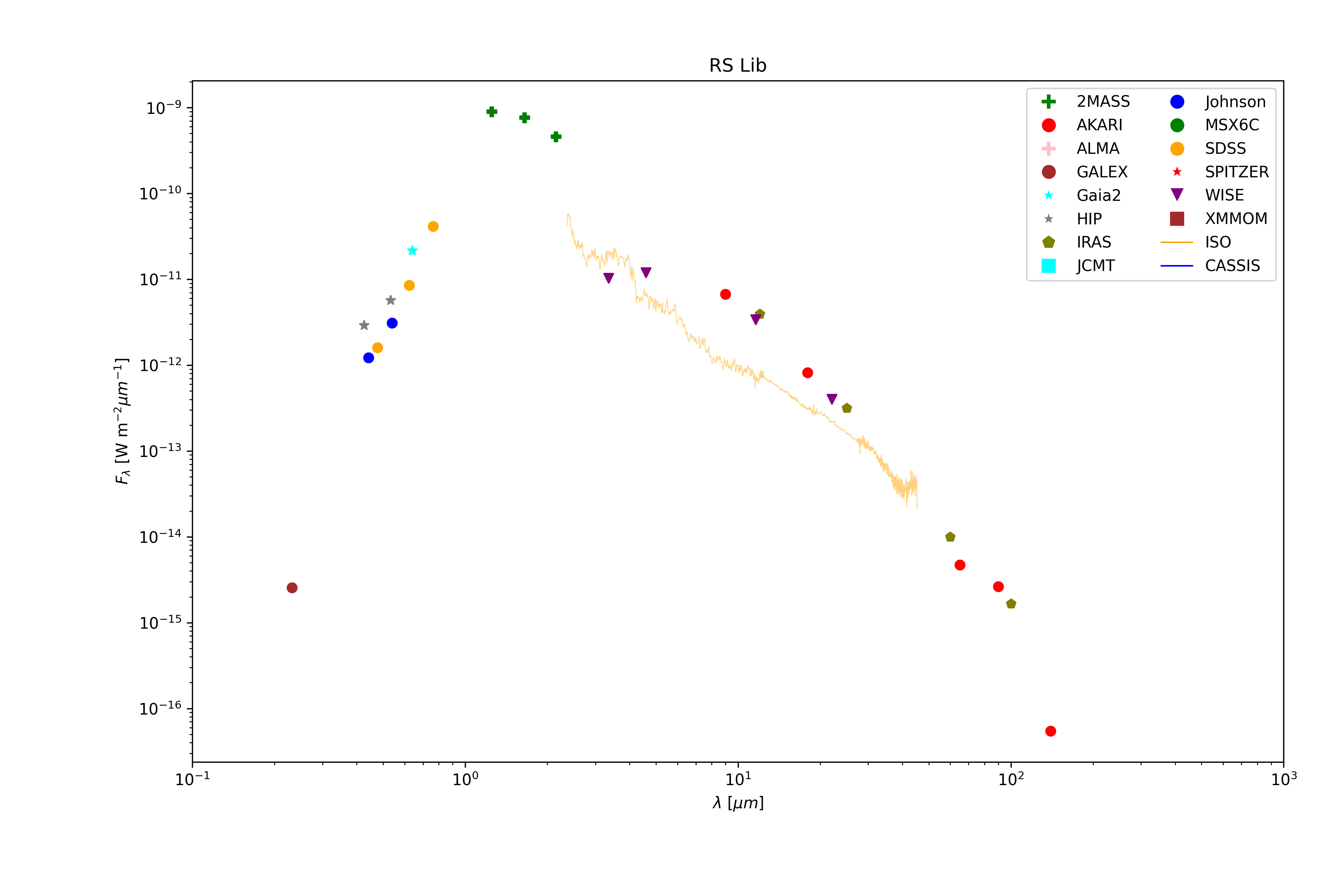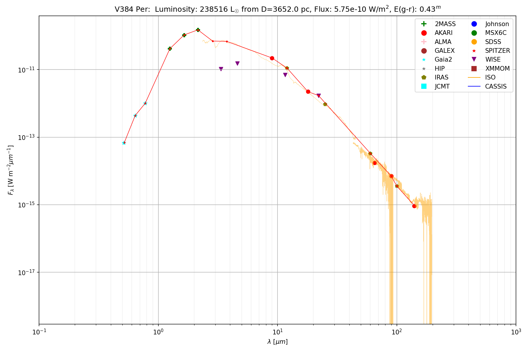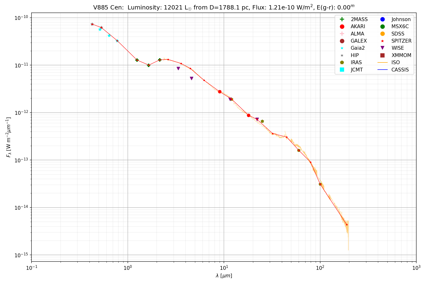 So, for each object, a file with our collected photometry, a file with the SED (corrected and uncorrected for interstellar absorption), a JSON containing all defined and collected data, and an archive with all ISO and Spitzer data and spectra (if available) are available.