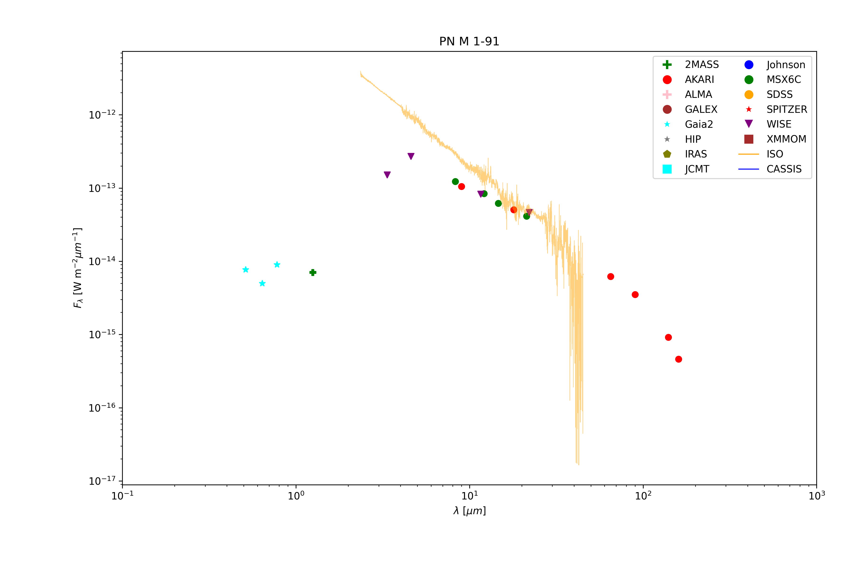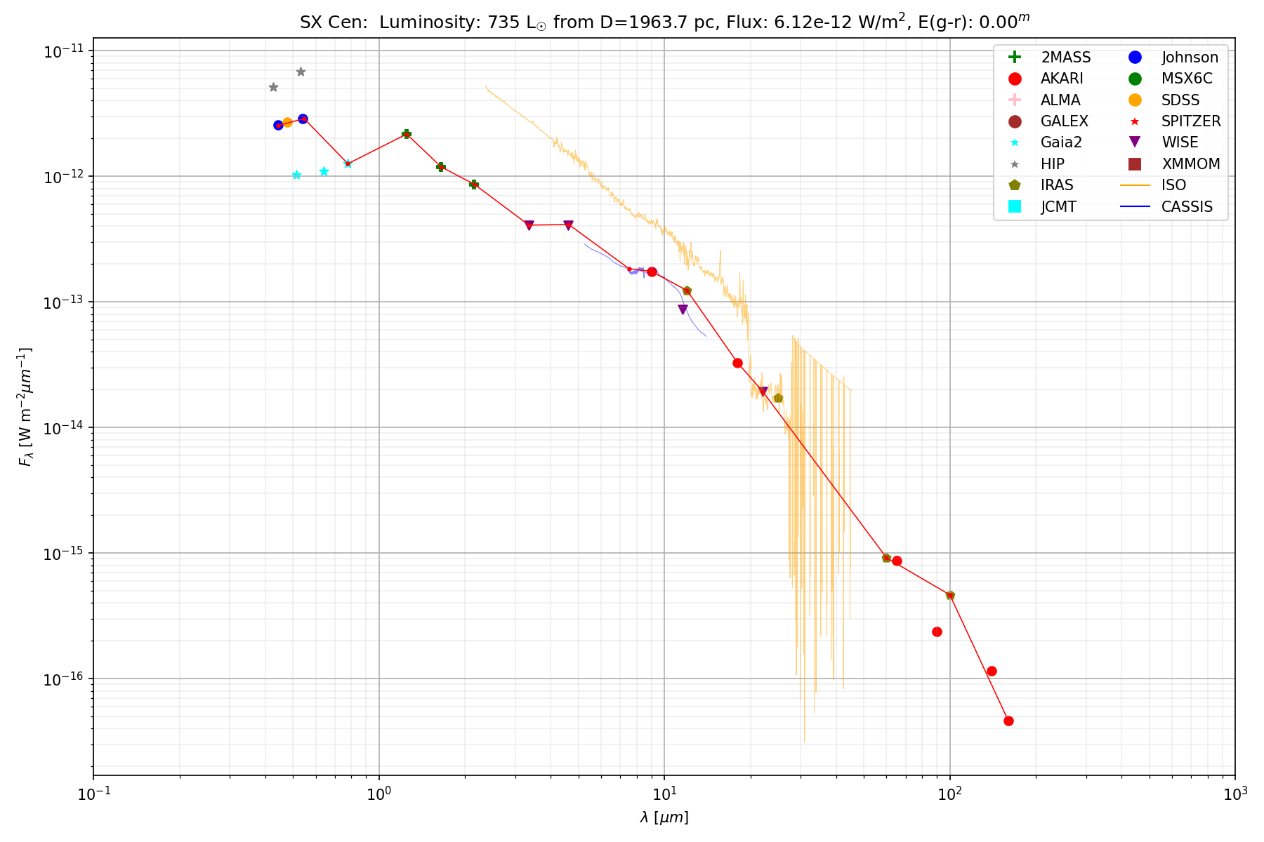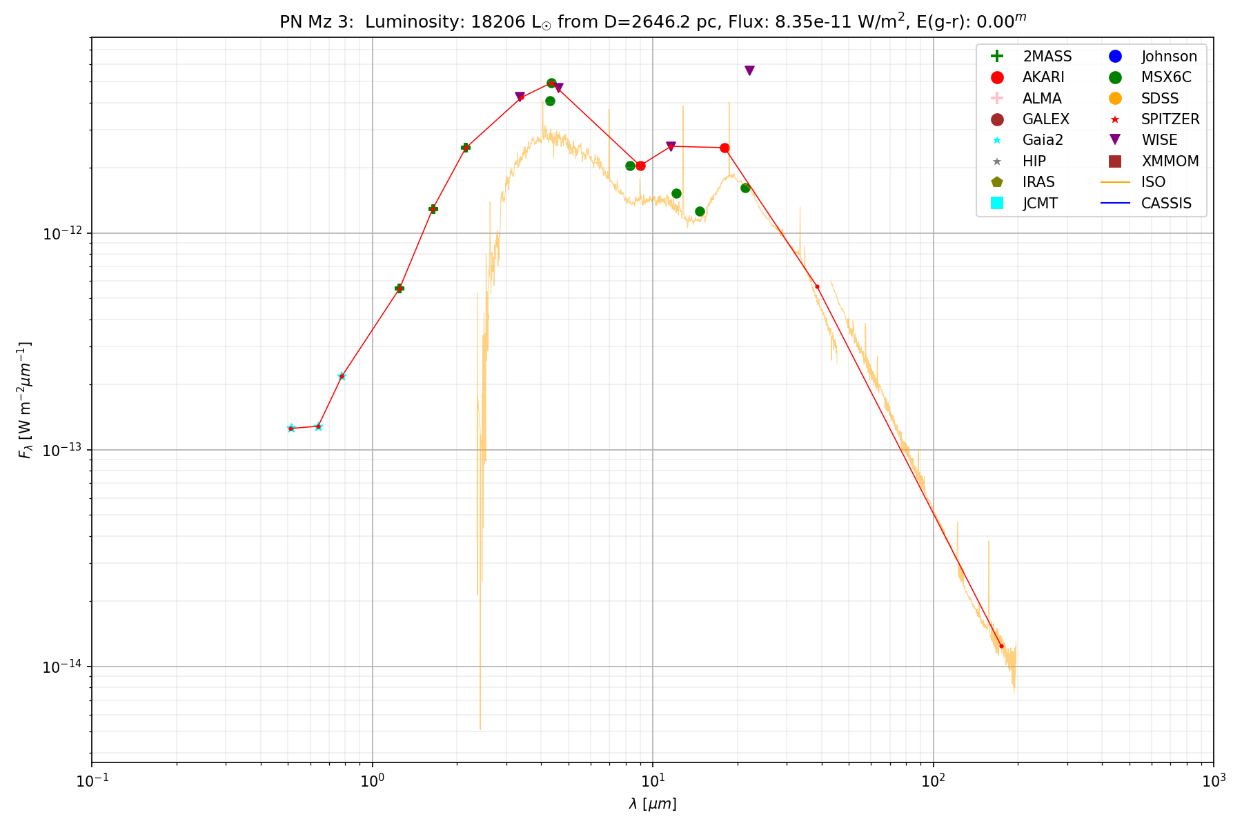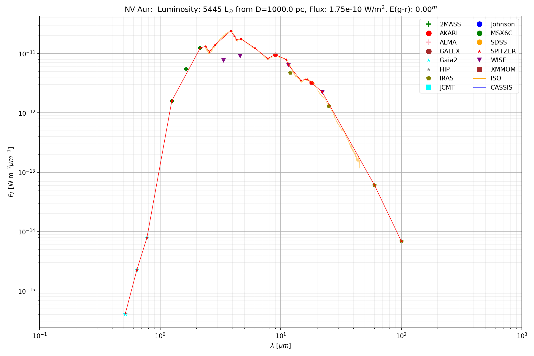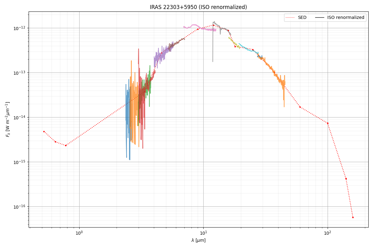 So, for each object, a file with our collected photometry, a file with the SED (corrected and uncorrected for interstellar absorption), a JSON containing all defined and collected data, and an archive with all ISO and Spitzer data and spectra (if available) are available.