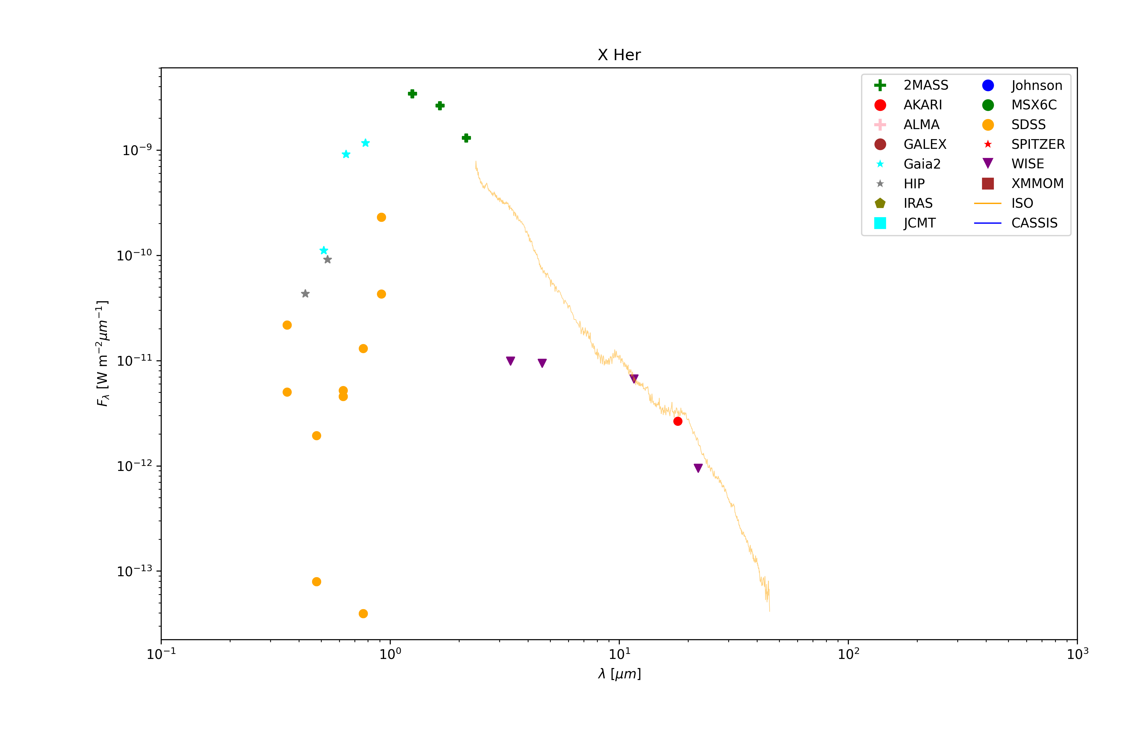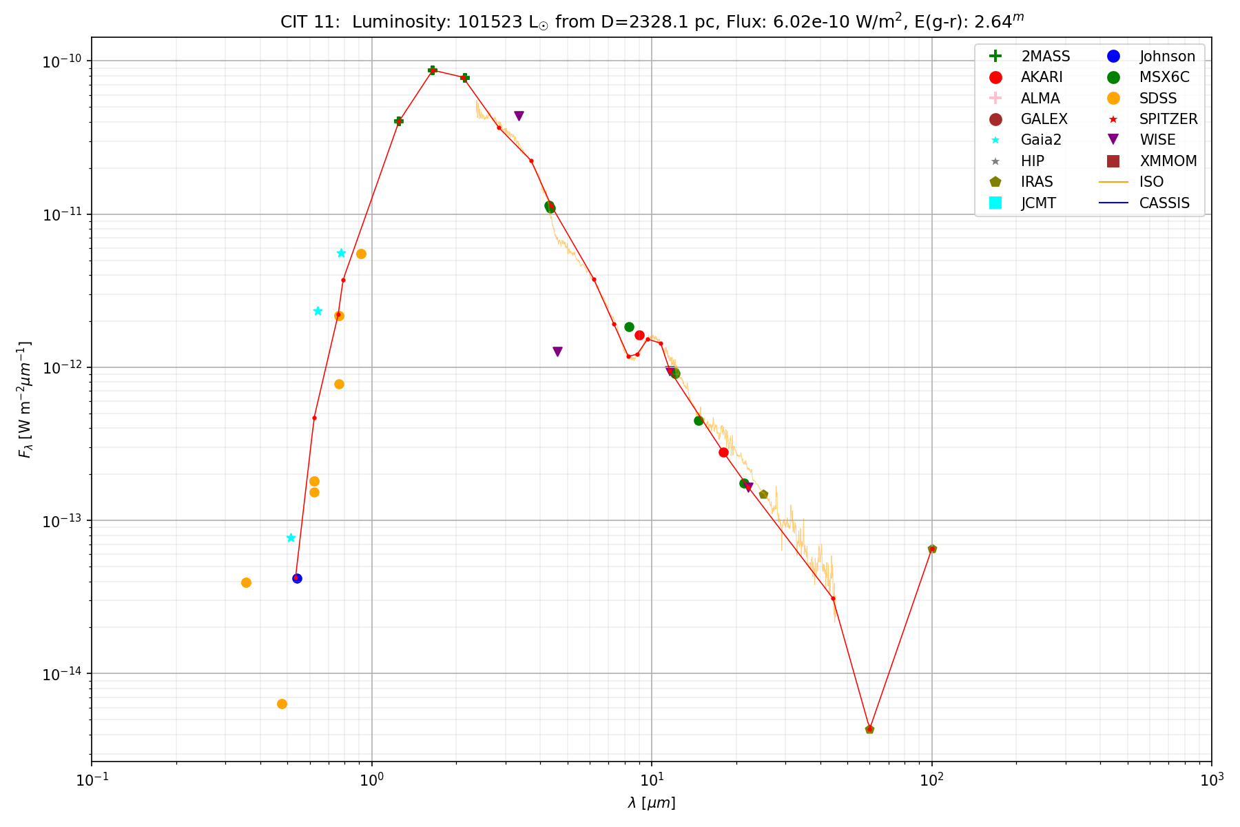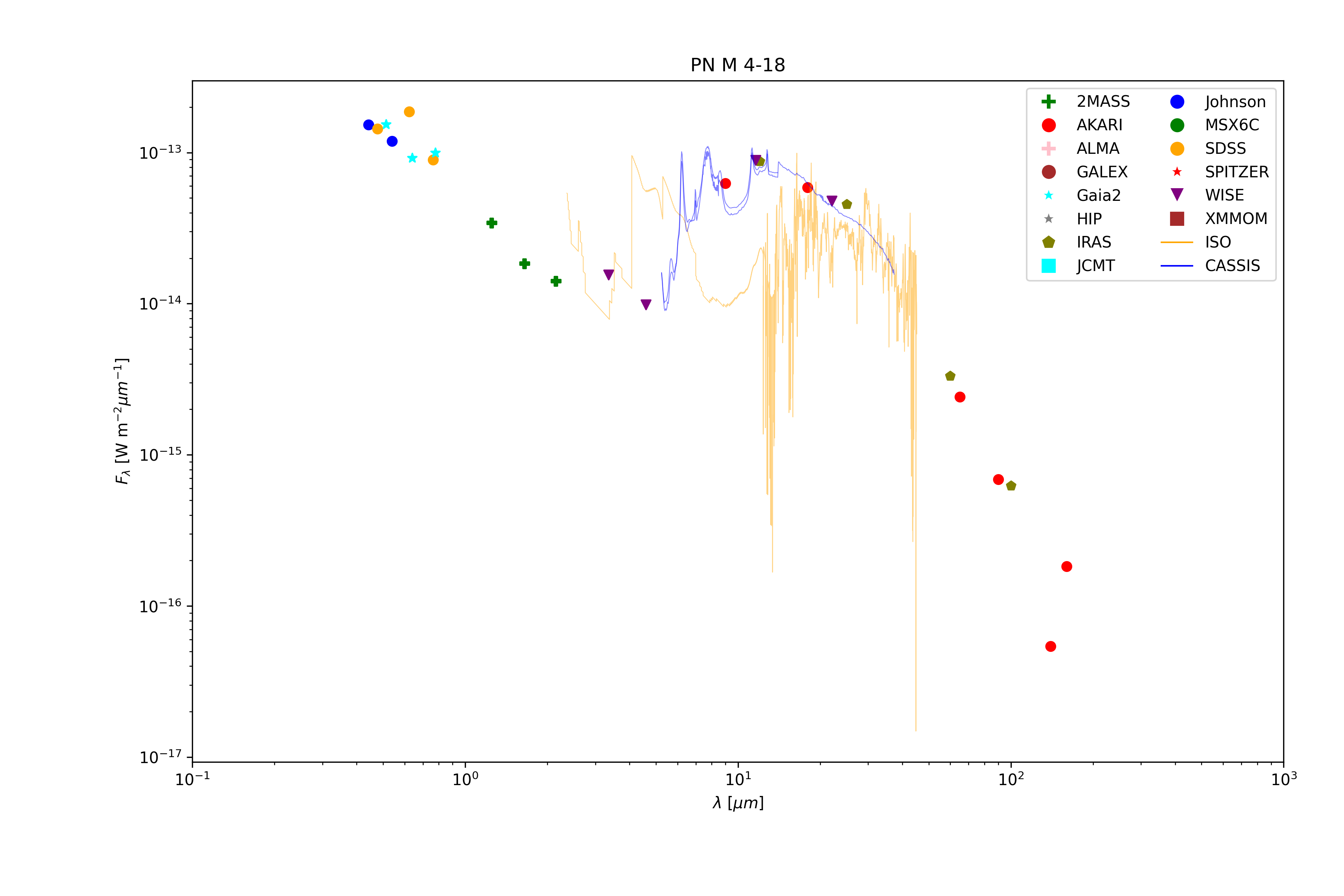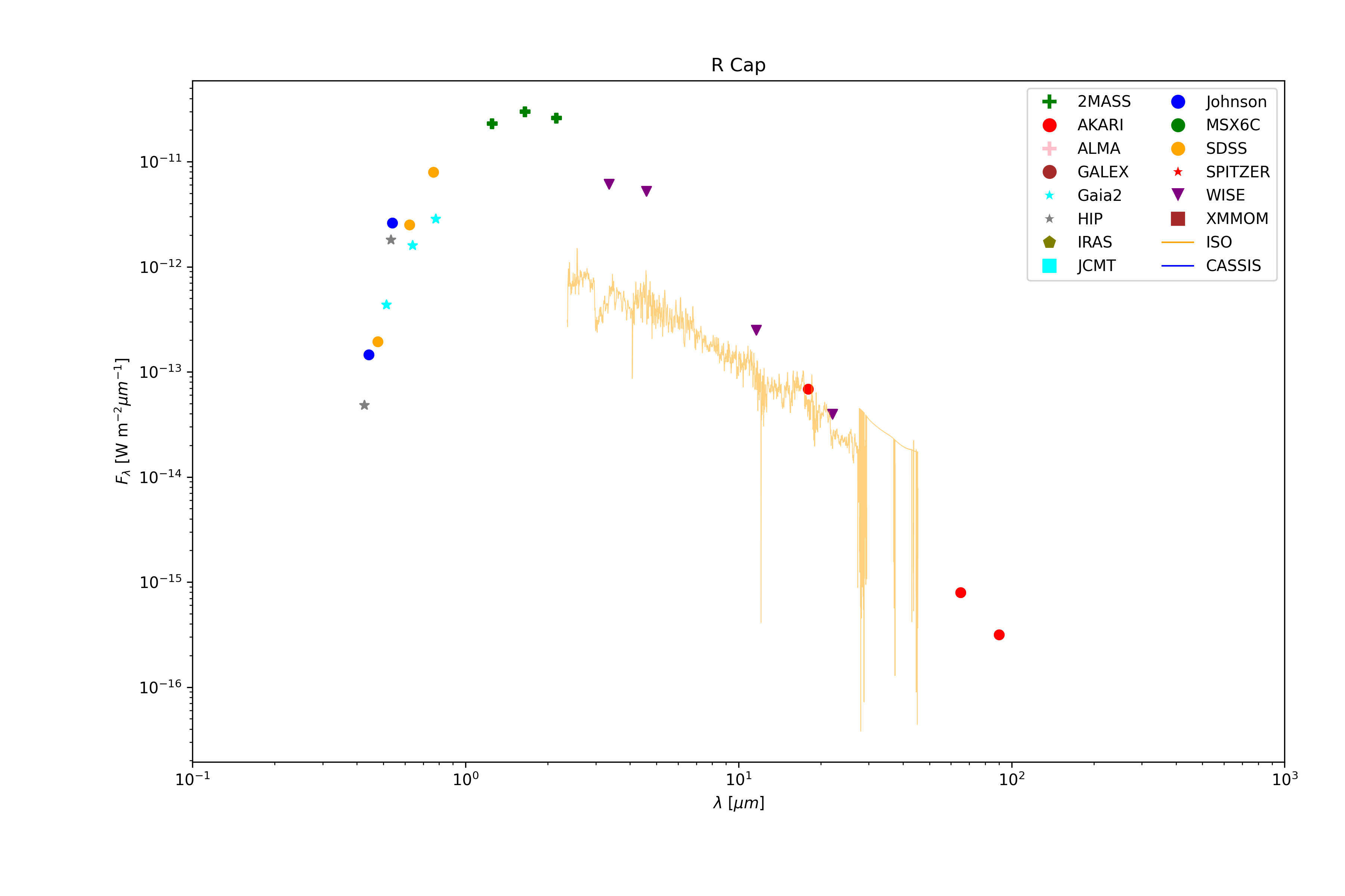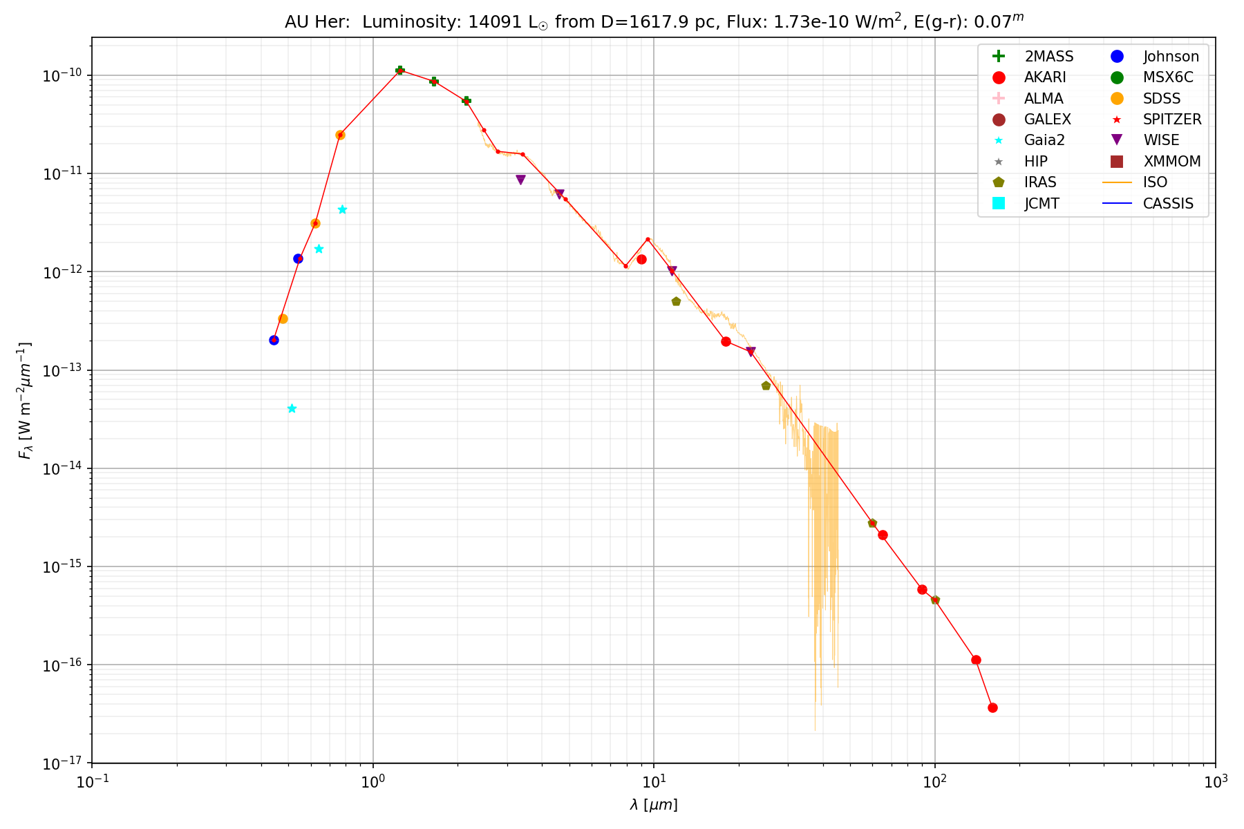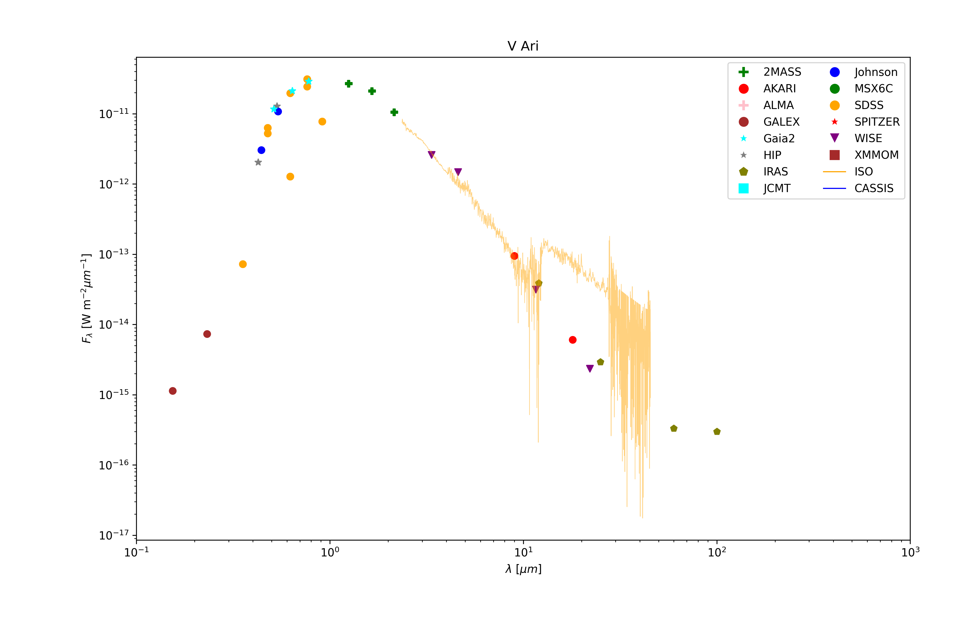 So, for each object, a file with our collected photometry, a file with the SED (corrected and uncorrected for interstellar absorption), a JSON containing all defined and collected data, and an archive with all ISO and Spitzer data and spectra (if available) are available.