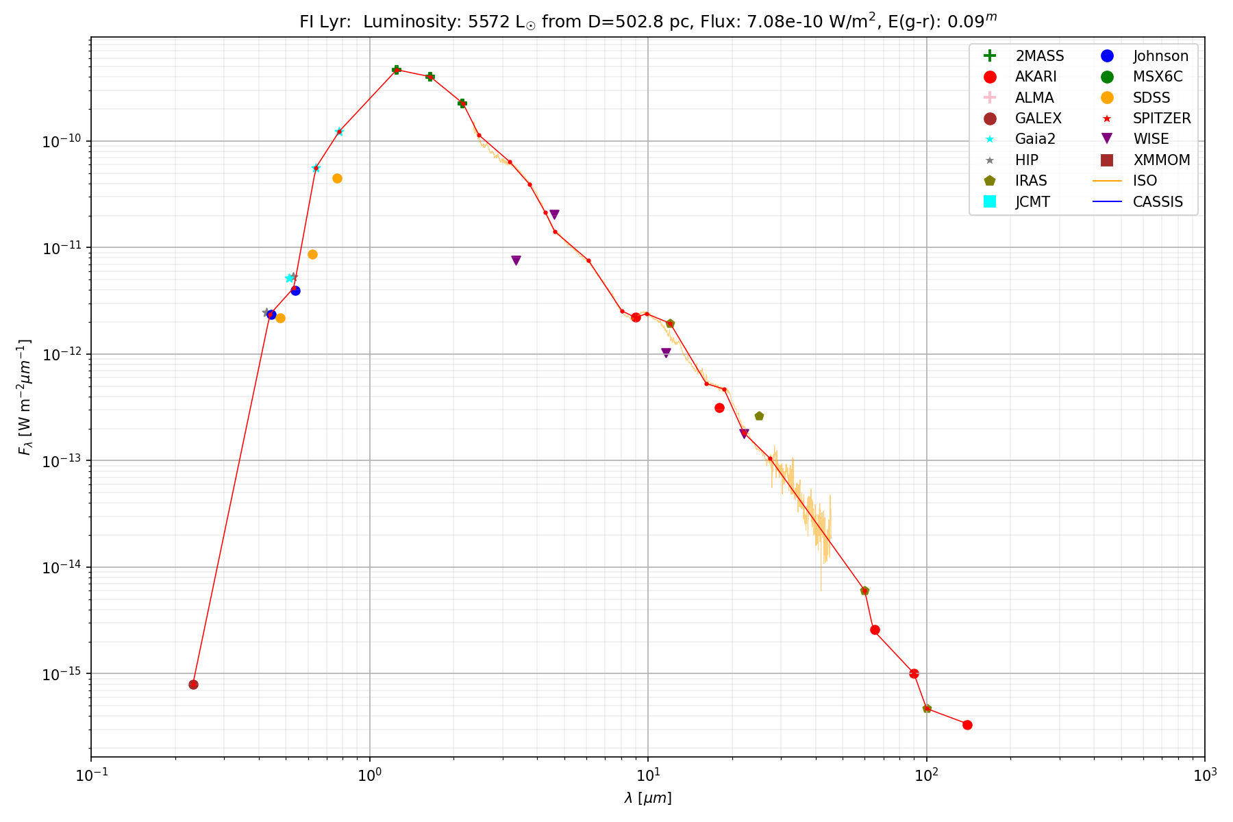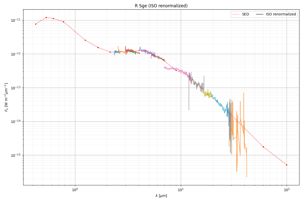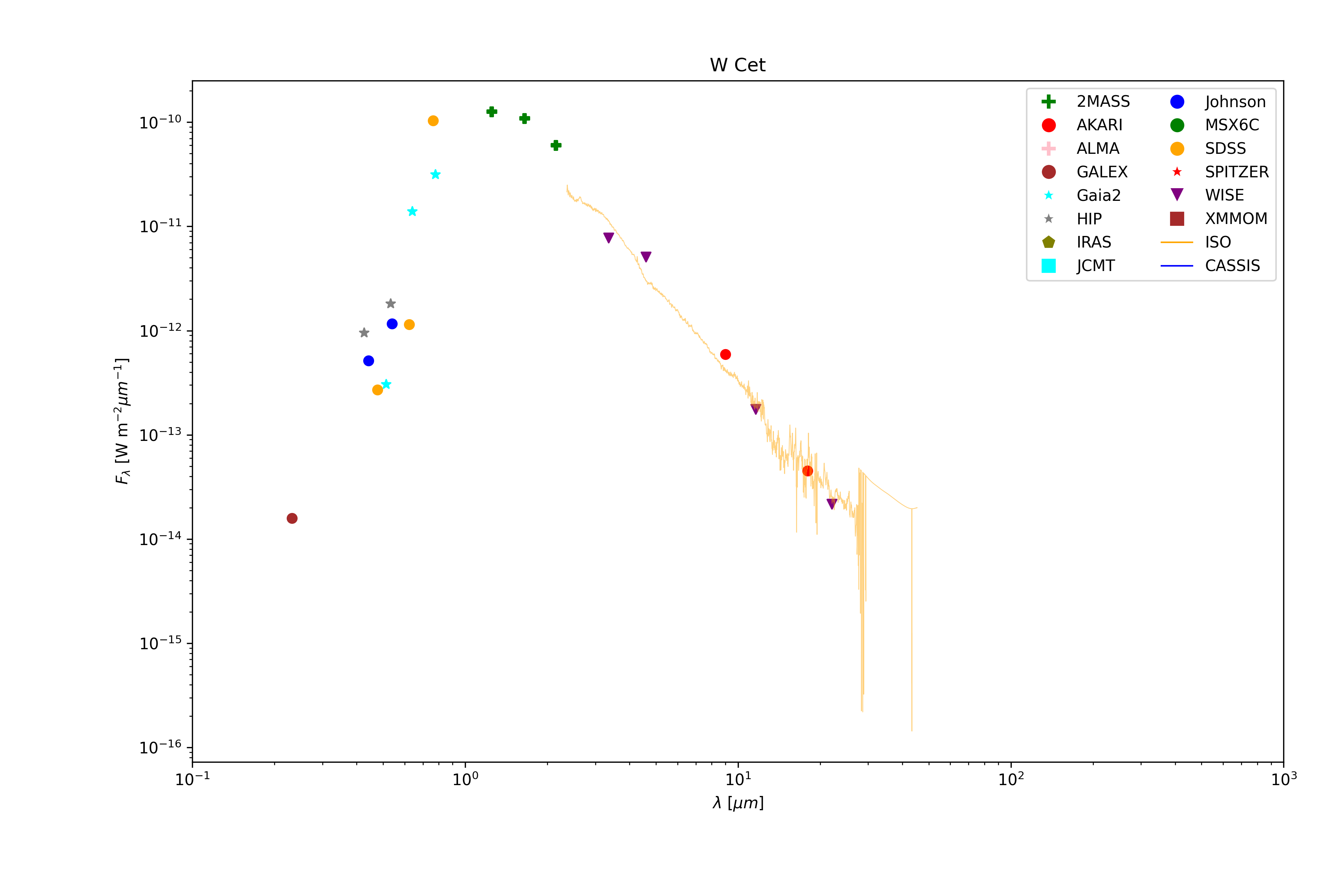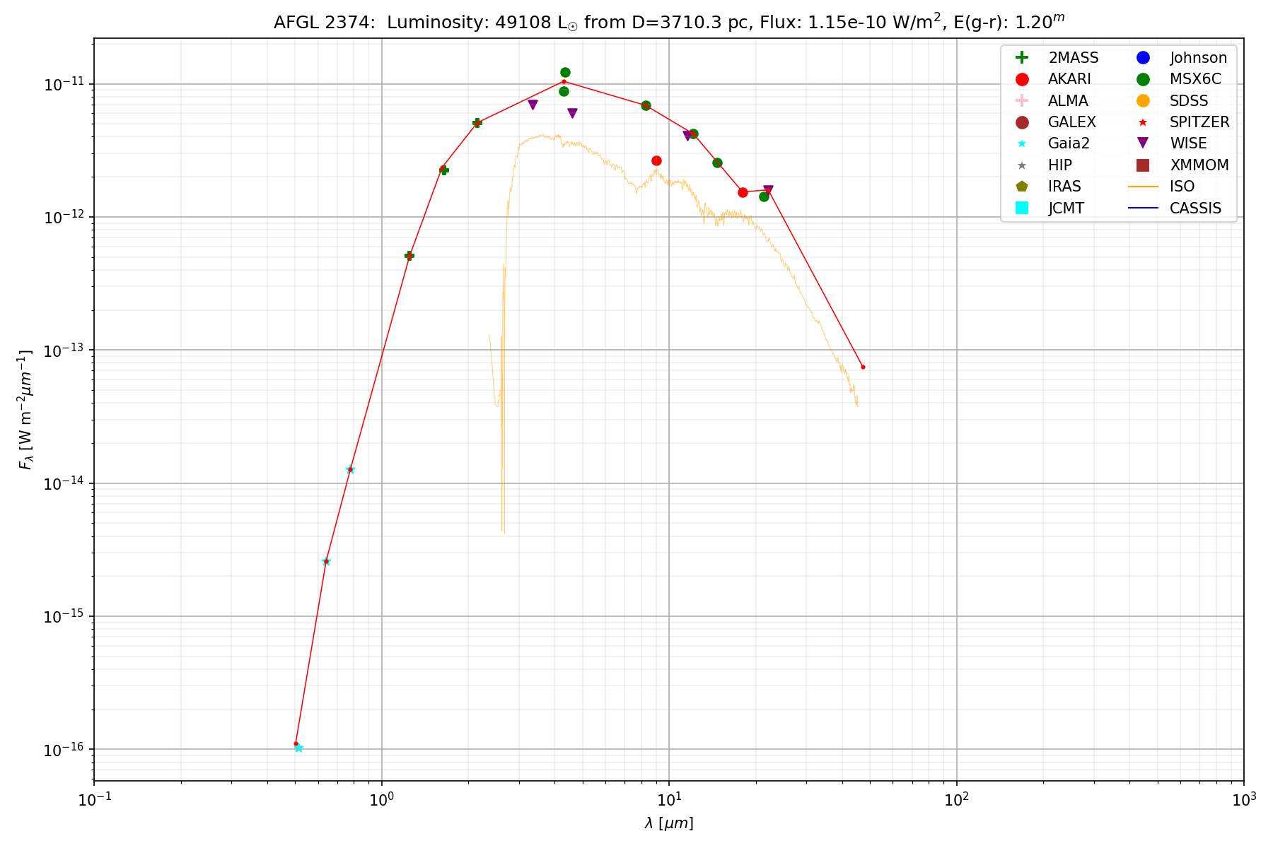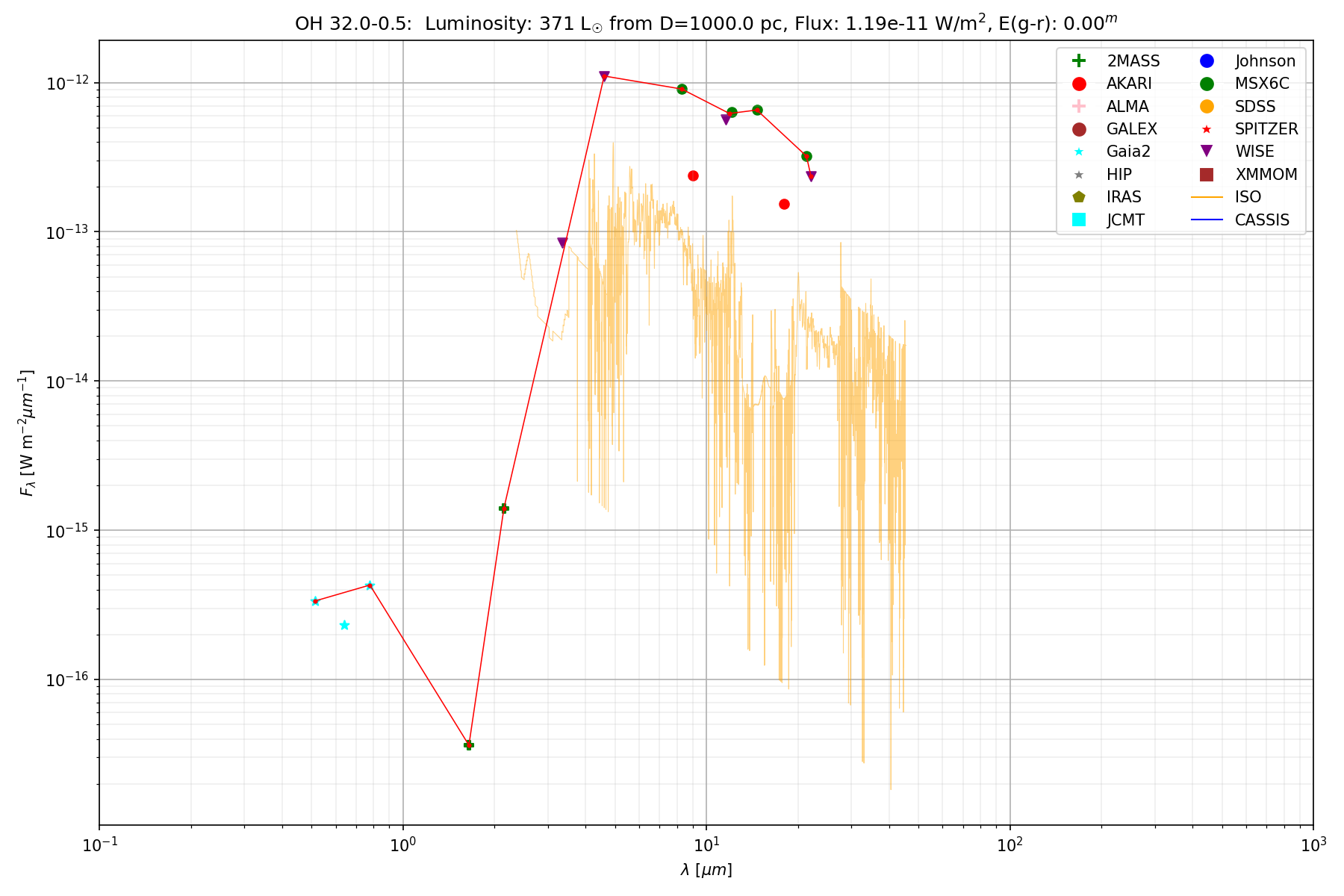So, for each object, a file with our collected photometry, a file with the SED (corrected and uncorrected for interstellar absorption), a JSON containing all defined and collected data, and an archive with all ISO and Spitzer data and spectra (if available) are available.
