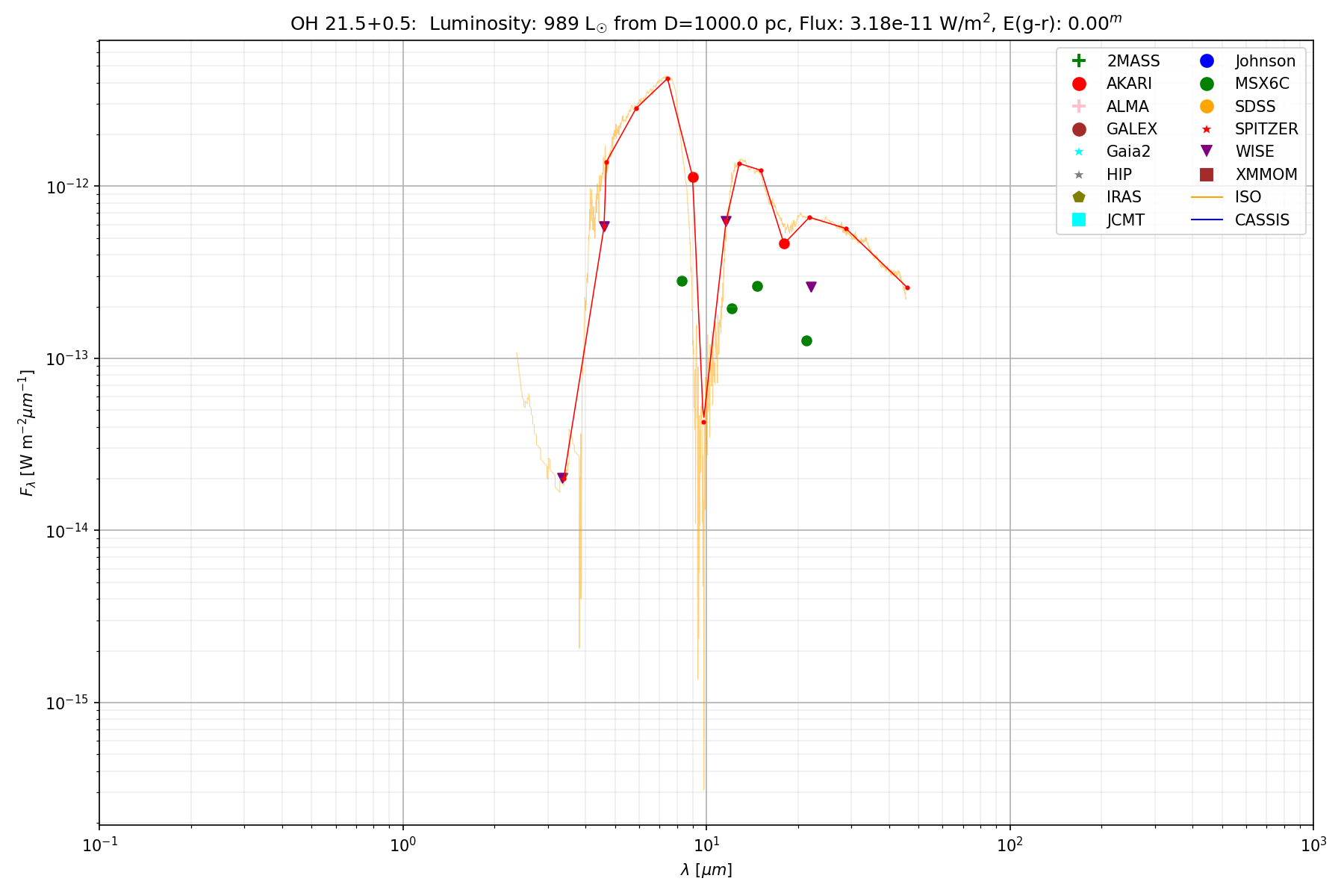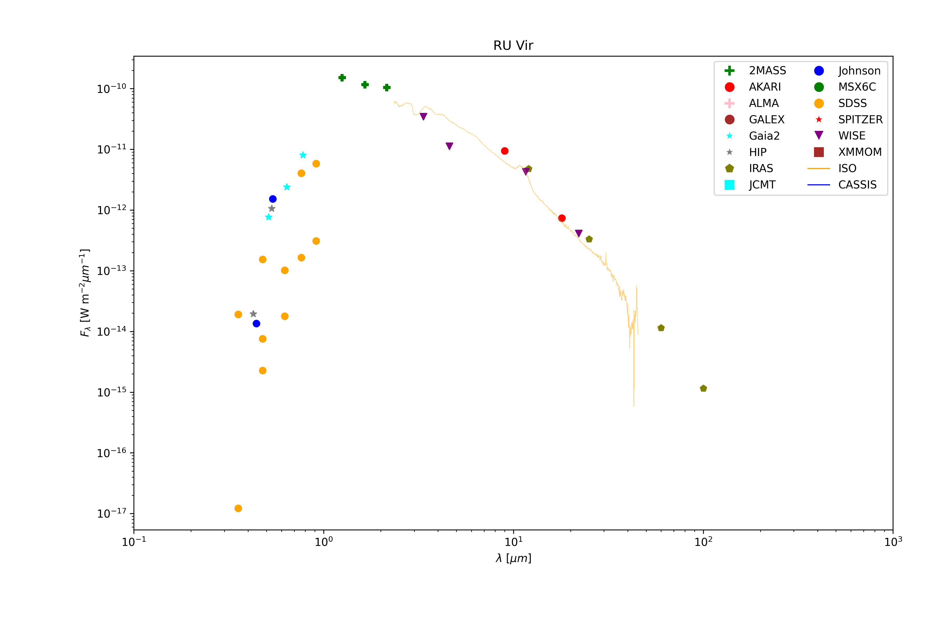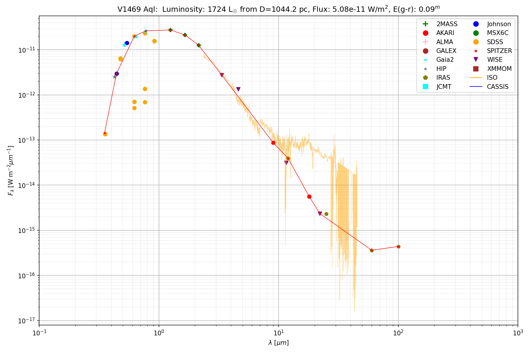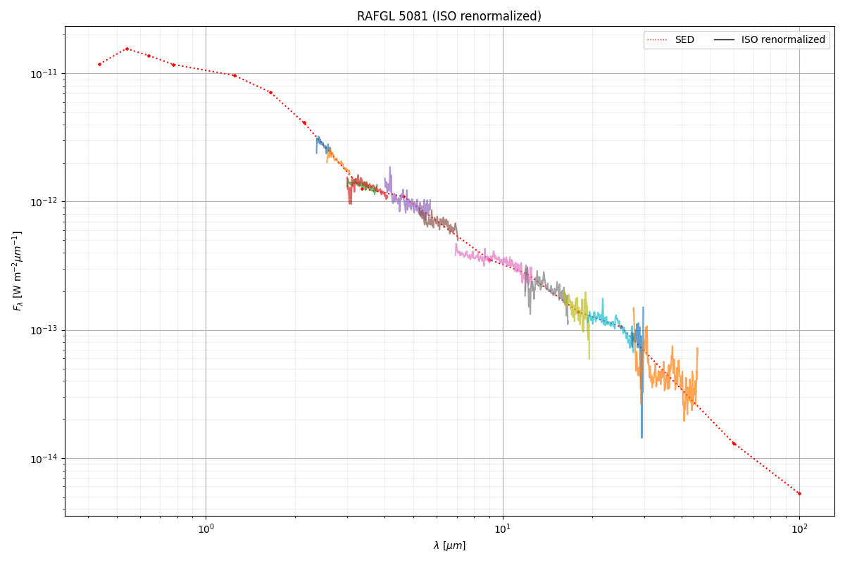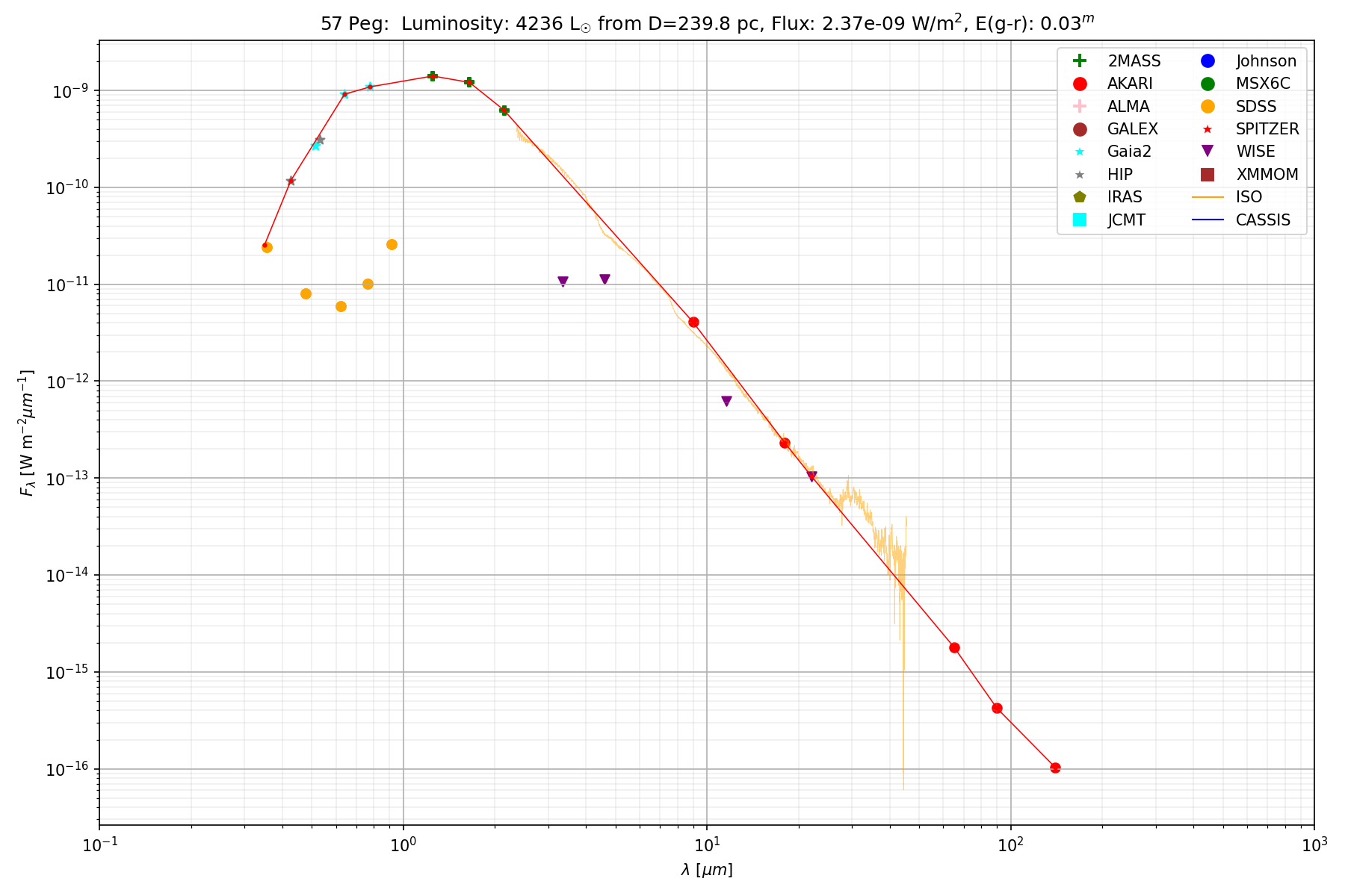 So, for each object, a file with our collected photometry, a file with the SED (corrected and uncorrected for interstellar absorption), a JSON containing all defined and collected data, and an archive with all ISO and Spitzer data and spectra (if available) are available.