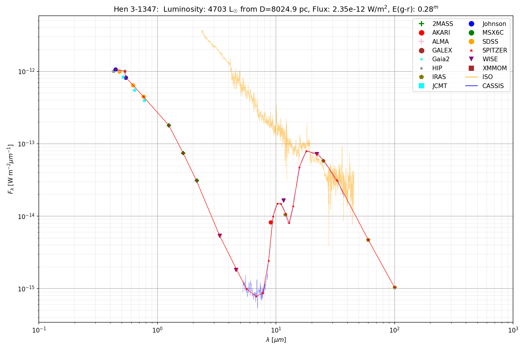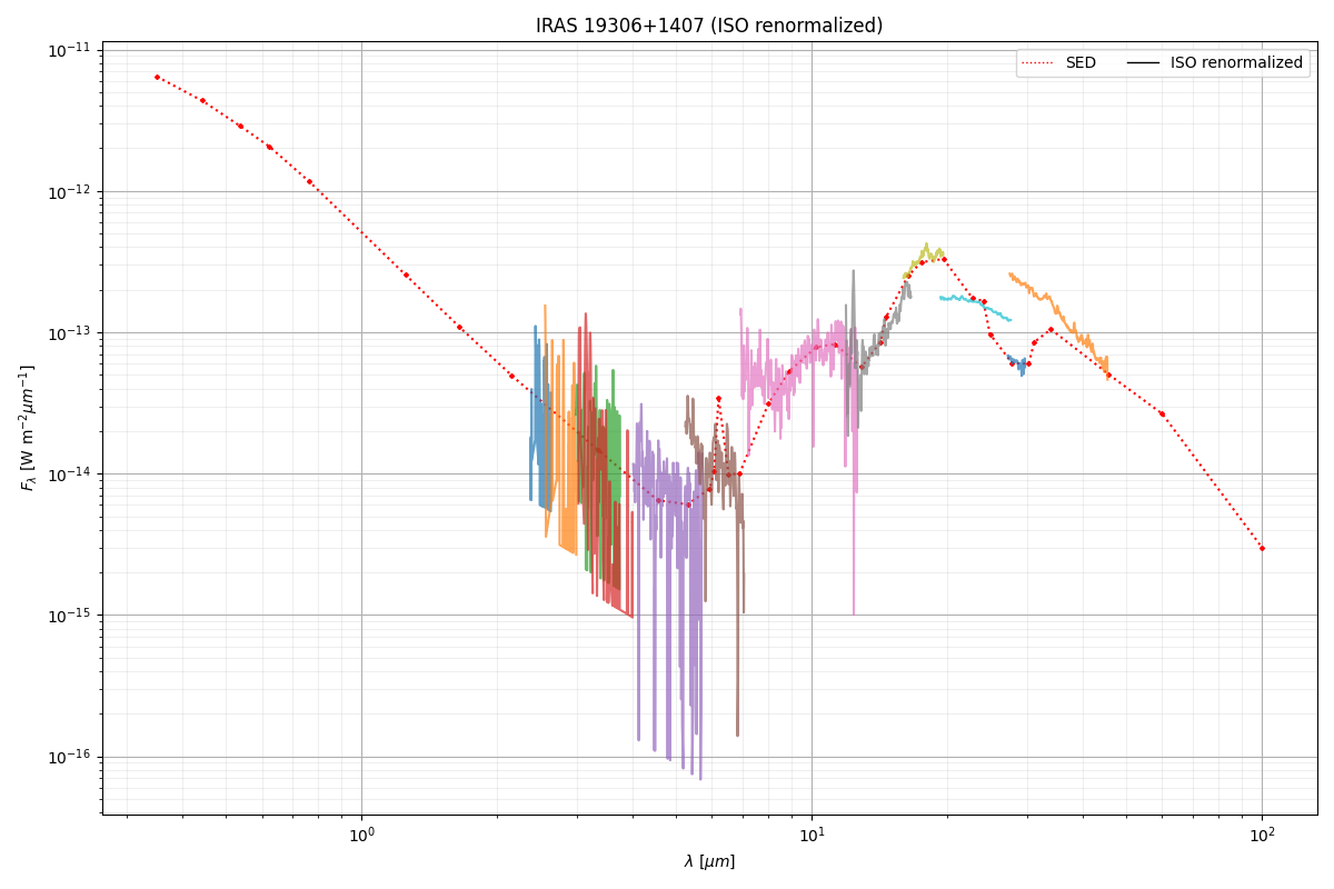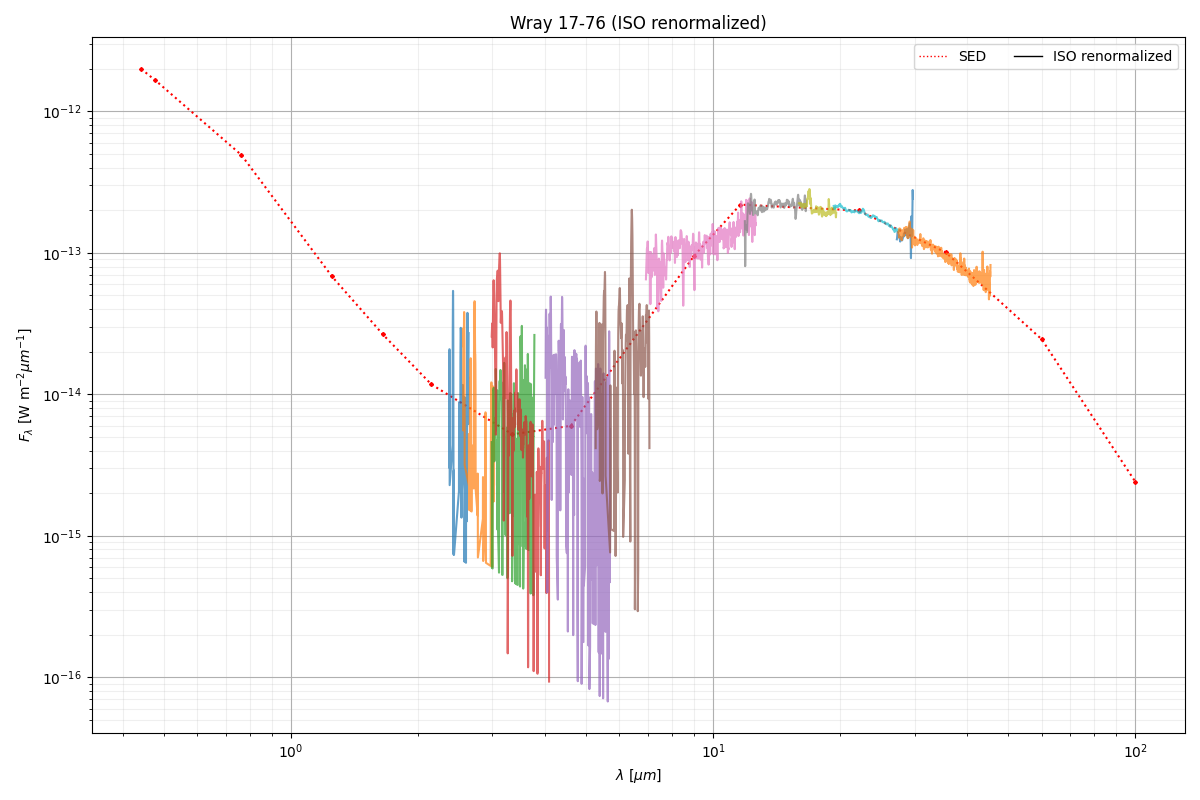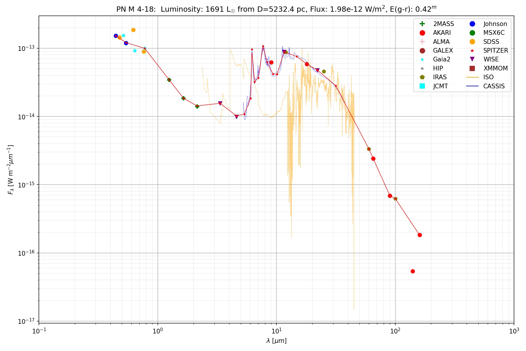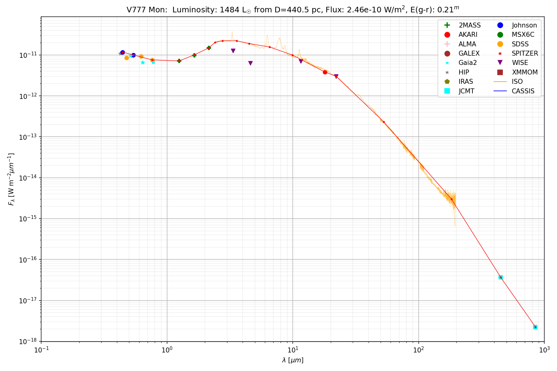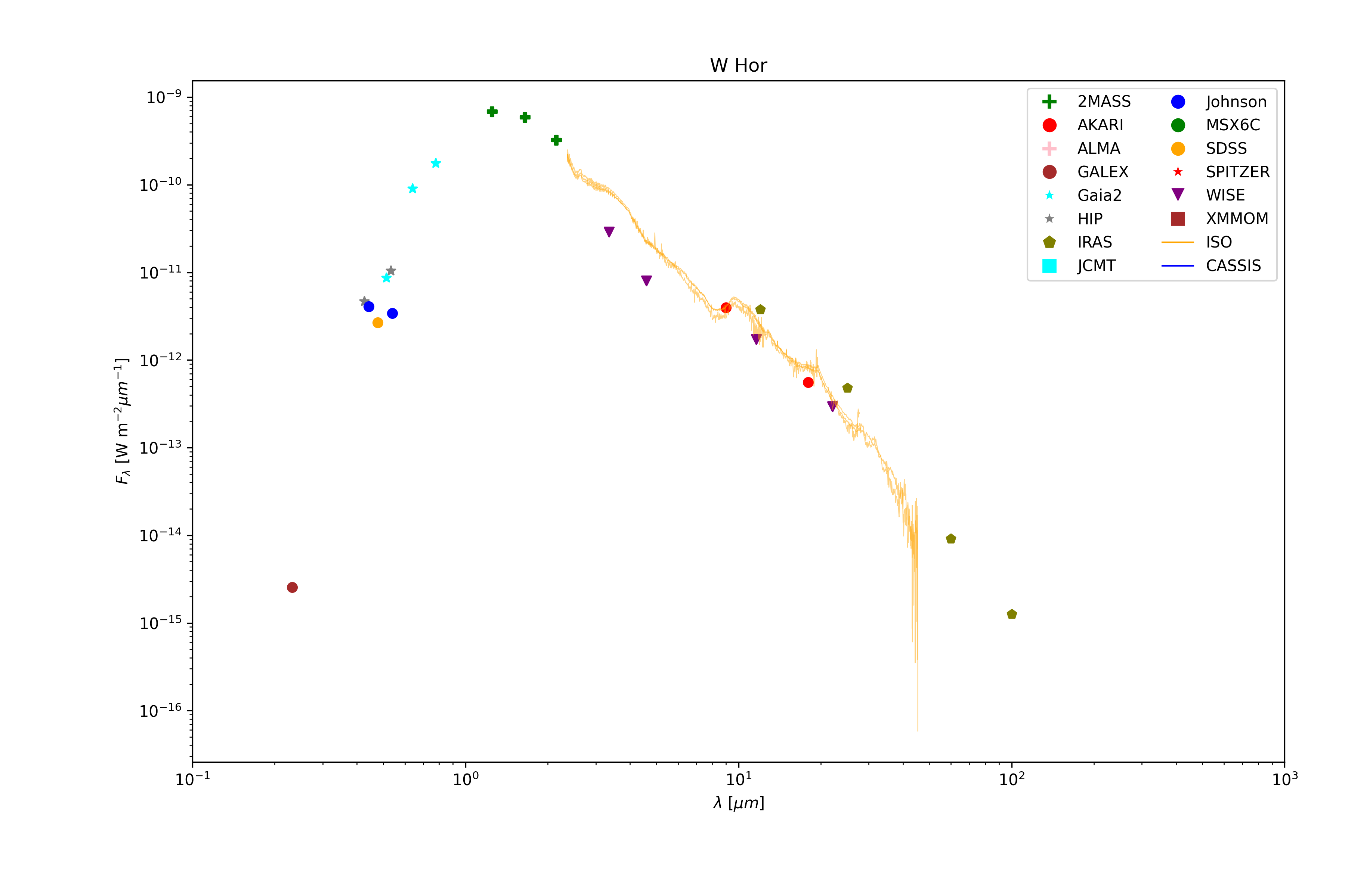 So, for each object, a file with our collected photometry, a file with the SED (corrected and uncorrected for interstellar absorption), a JSON containing all defined and collected data, and an archive with all ISO and Spitzer data and spectra (if available) are available.