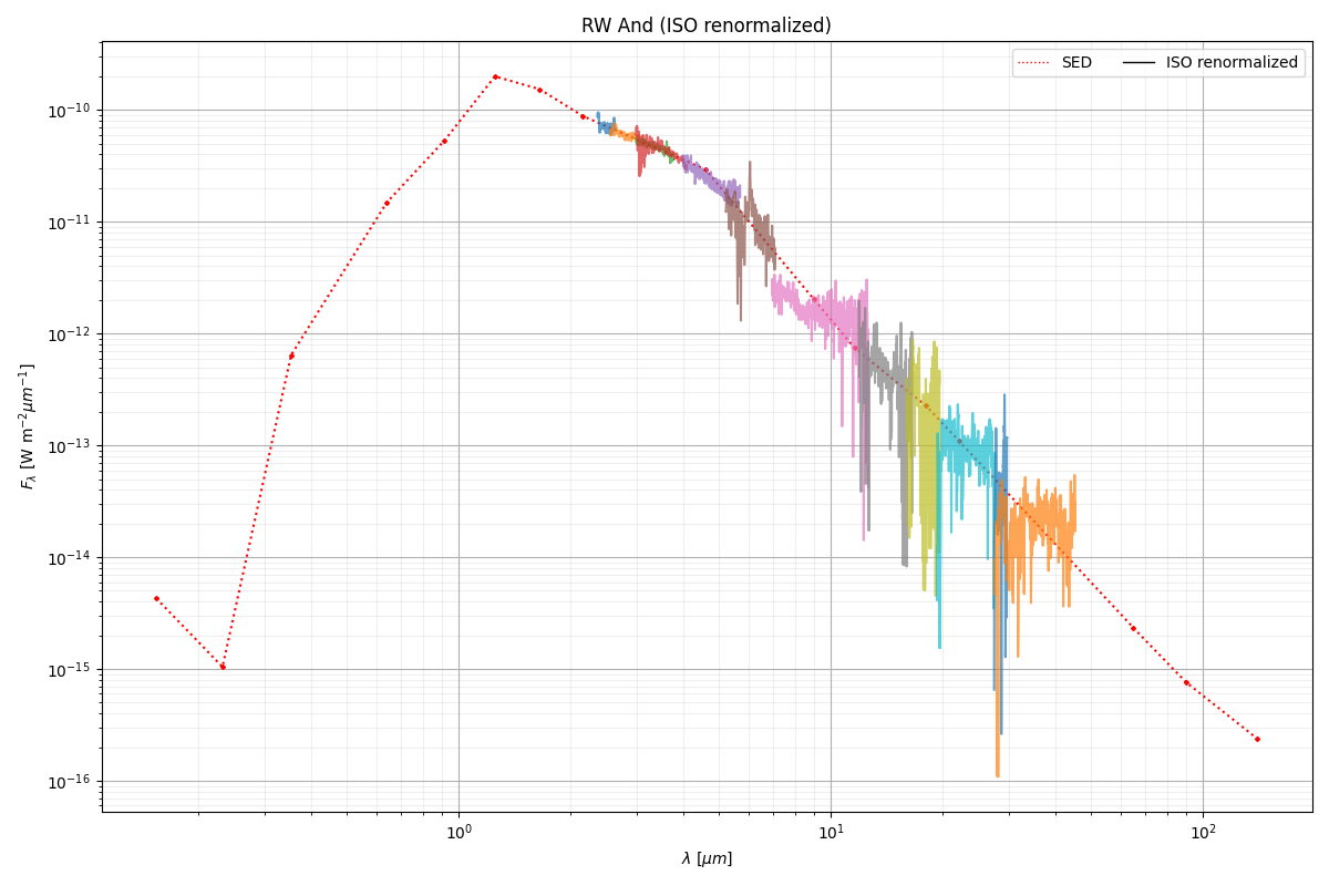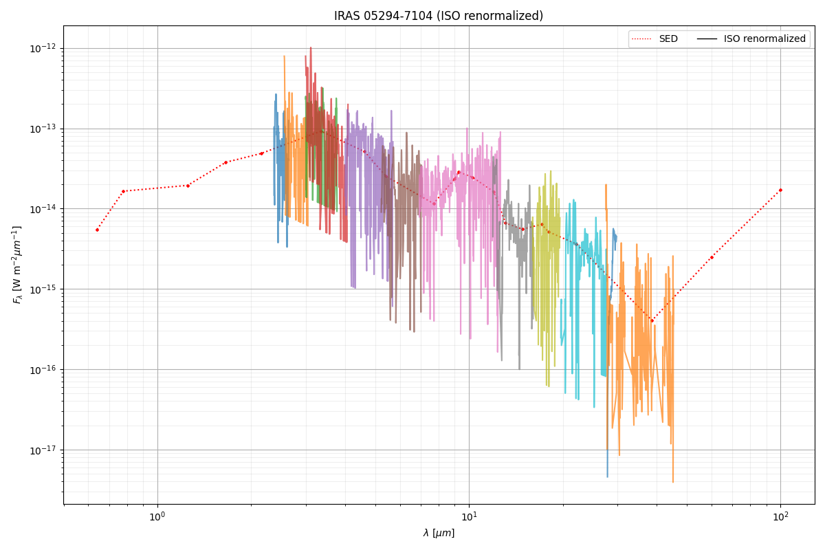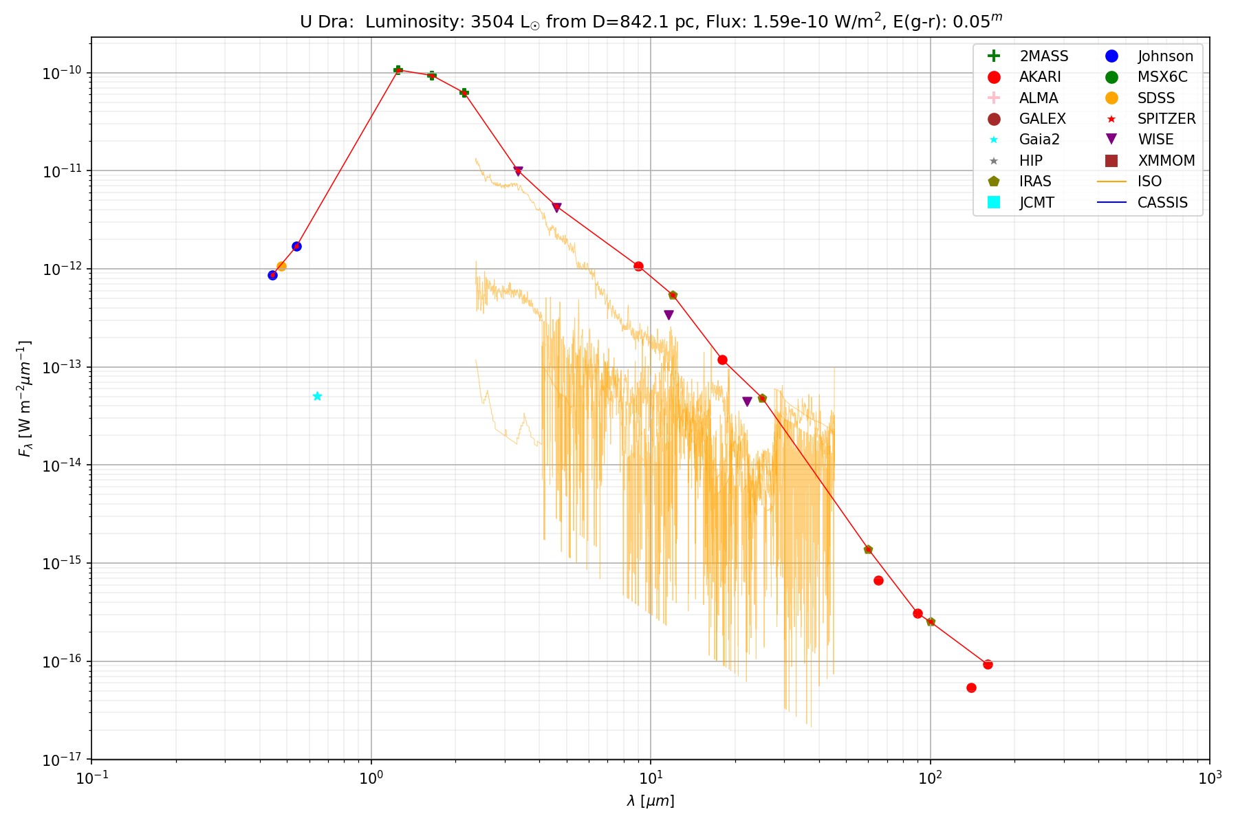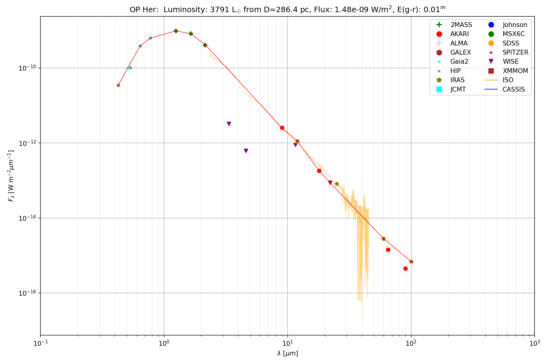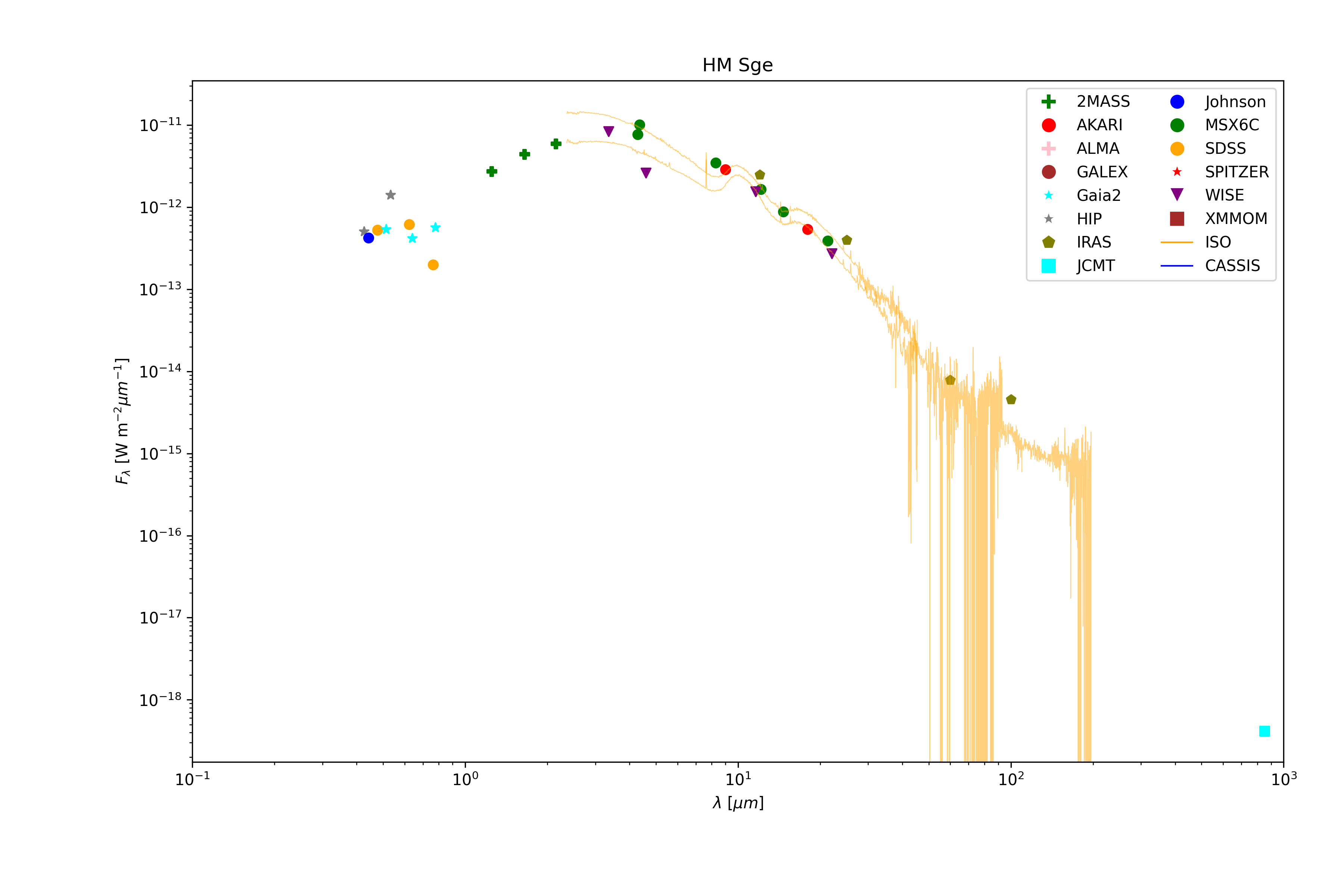 So, for each object, a file with our collected photometry, a file with the SED (corrected and uncorrected for interstellar absorption), a JSON containing all defined and collected data, and an archive with all ISO and Spitzer data and spectra (if available) are available.