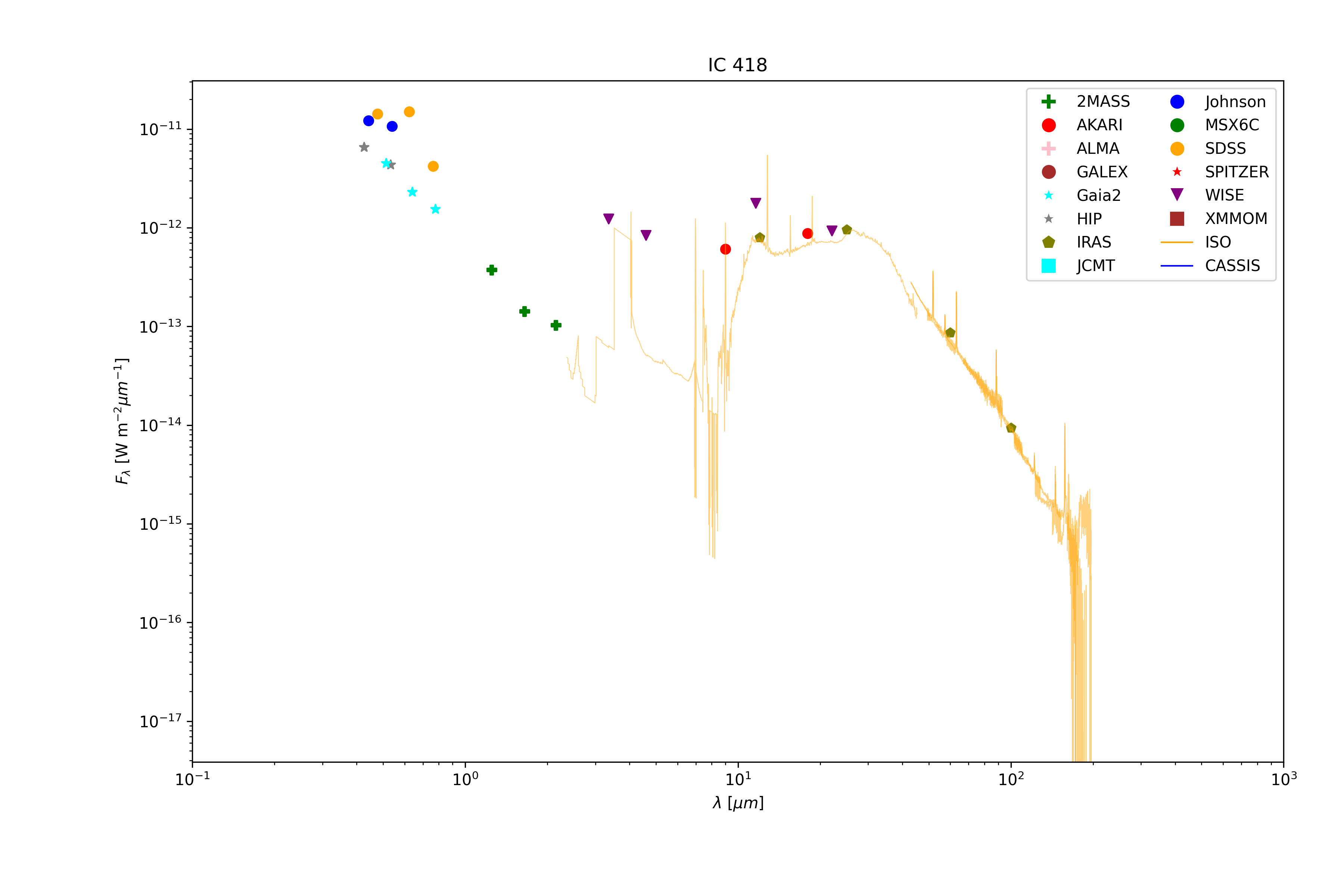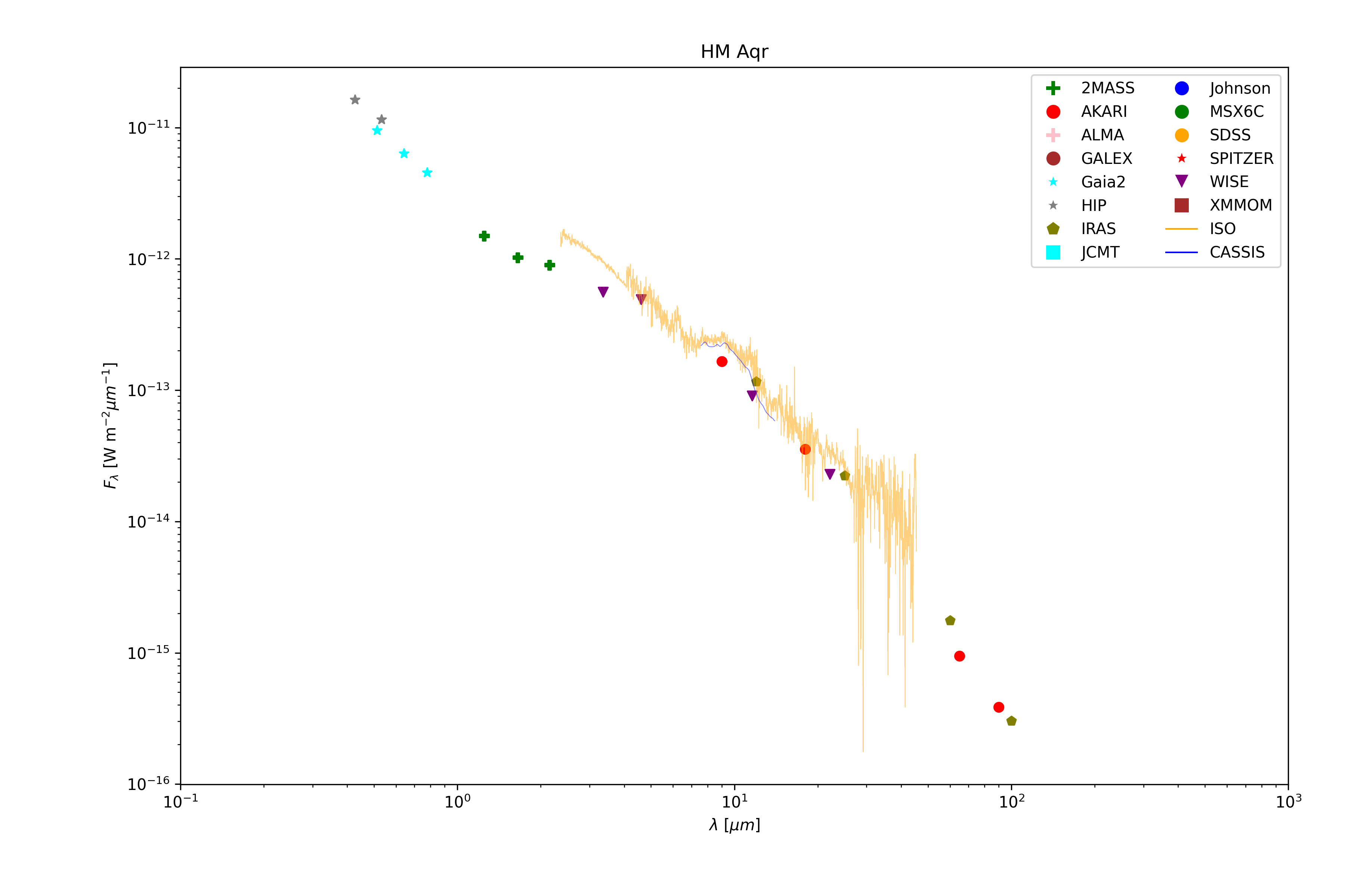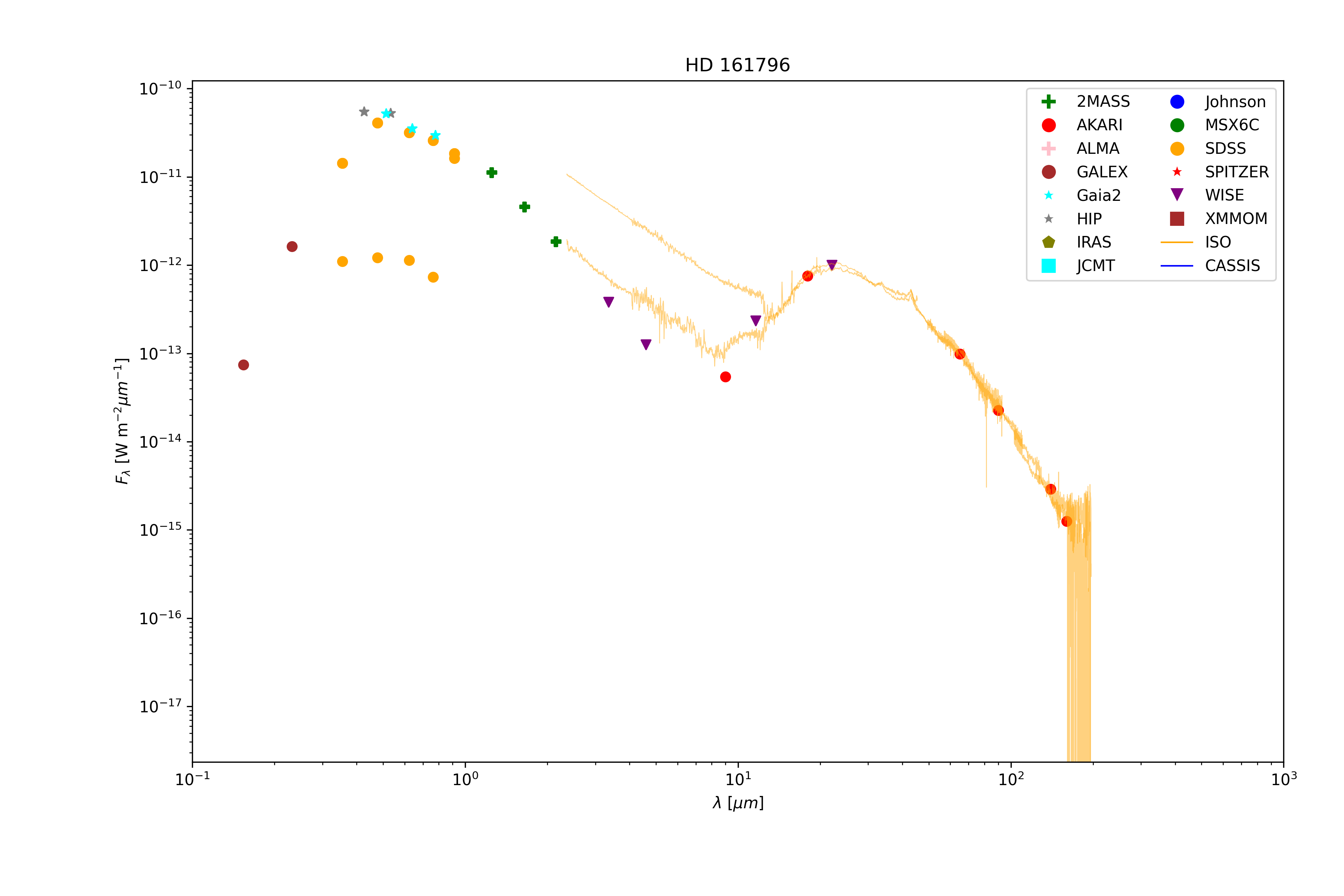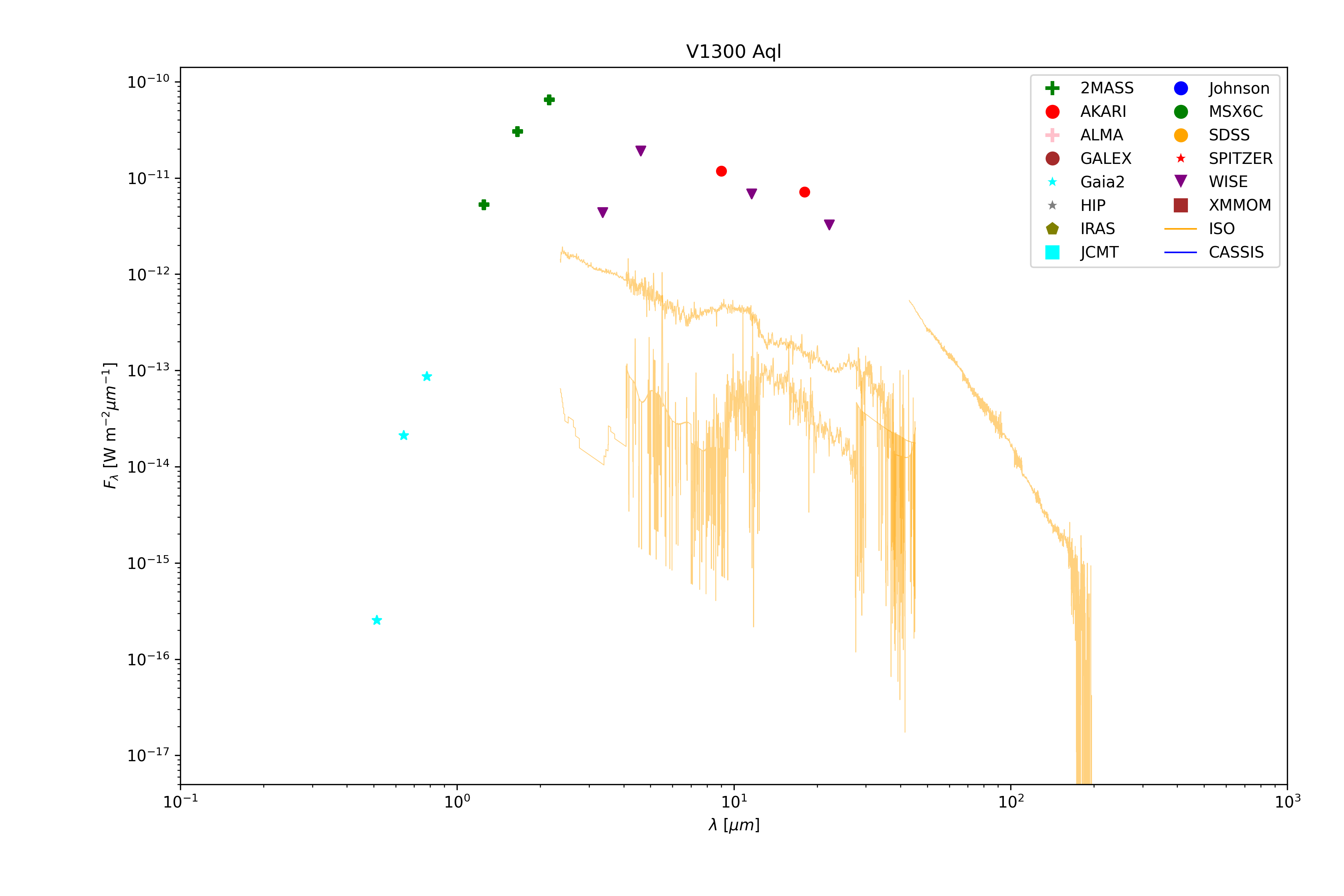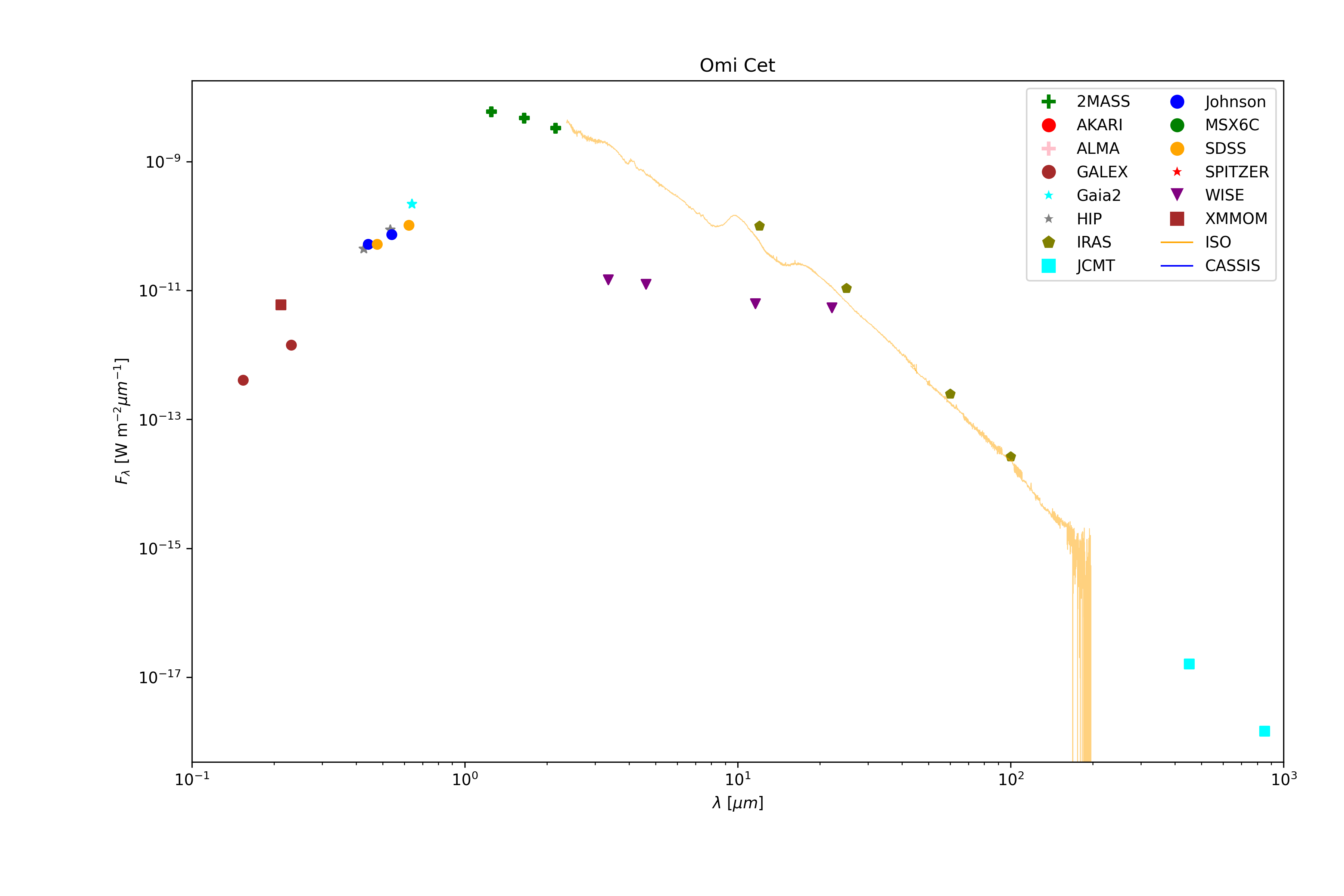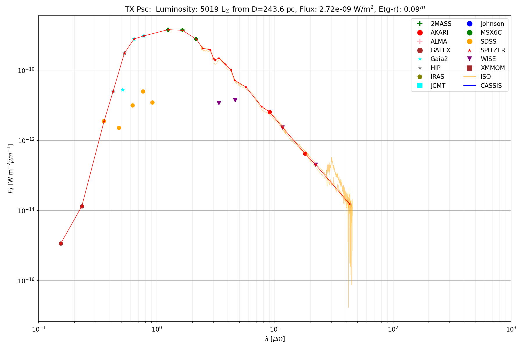 So, for each object, a file with our collected photometry, a file with the SED (corrected and uncorrected for interstellar absorption), a JSON containing all defined and collected data, and an archive with all ISO and Spitzer data and spectra (if available) are available.
