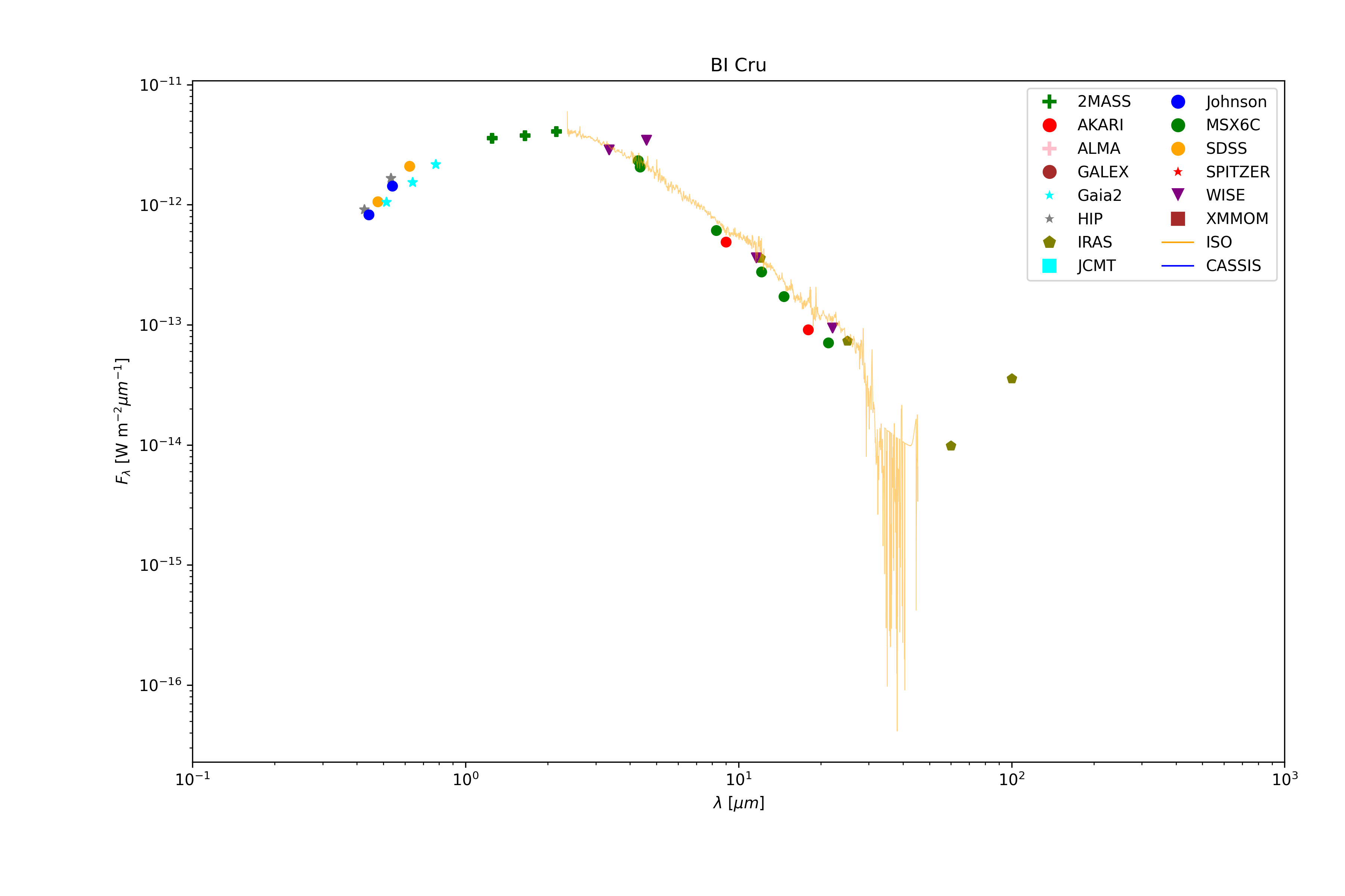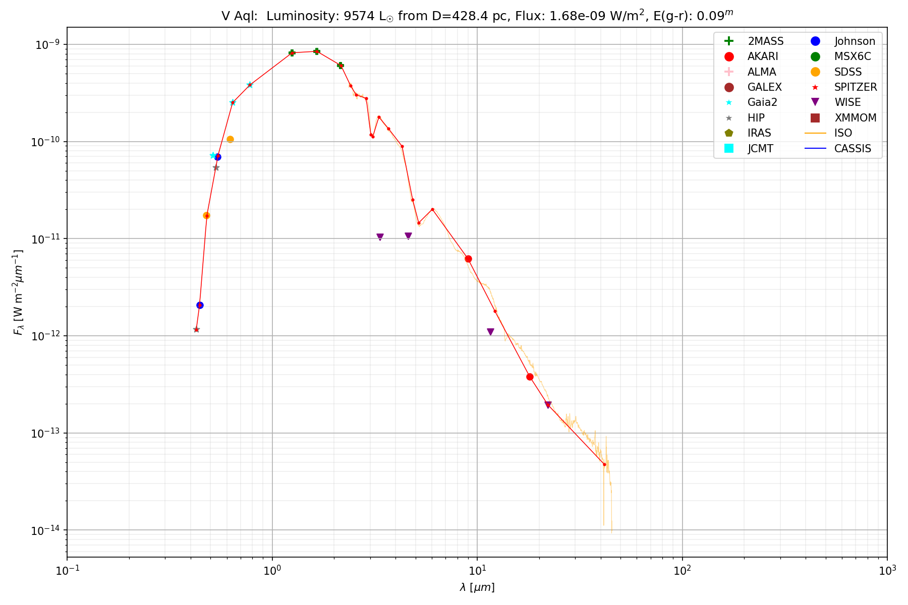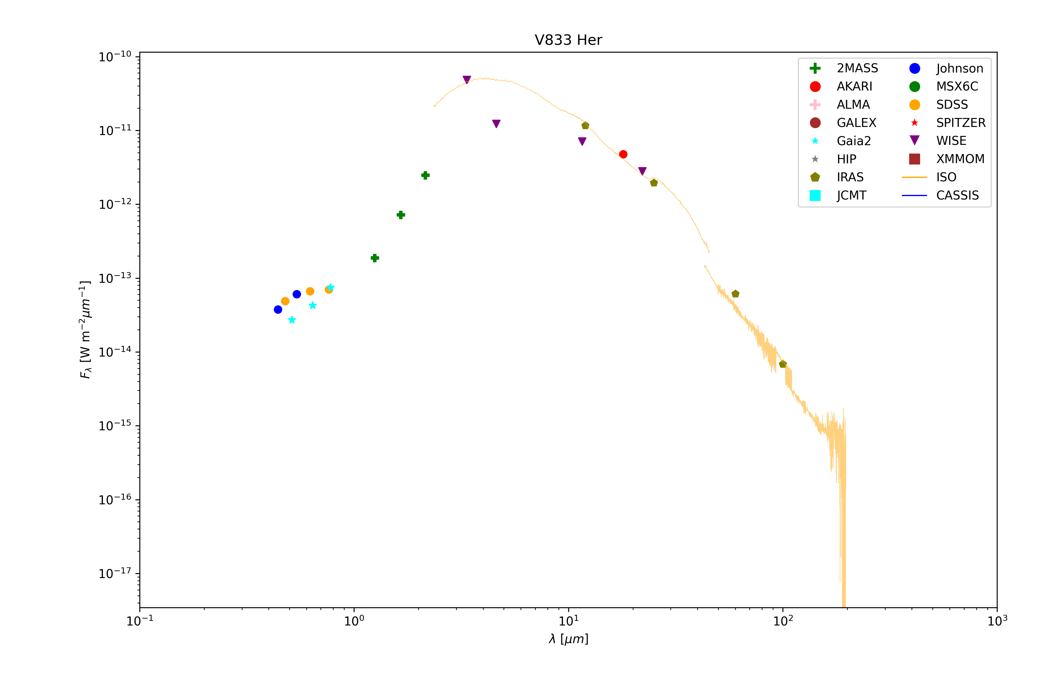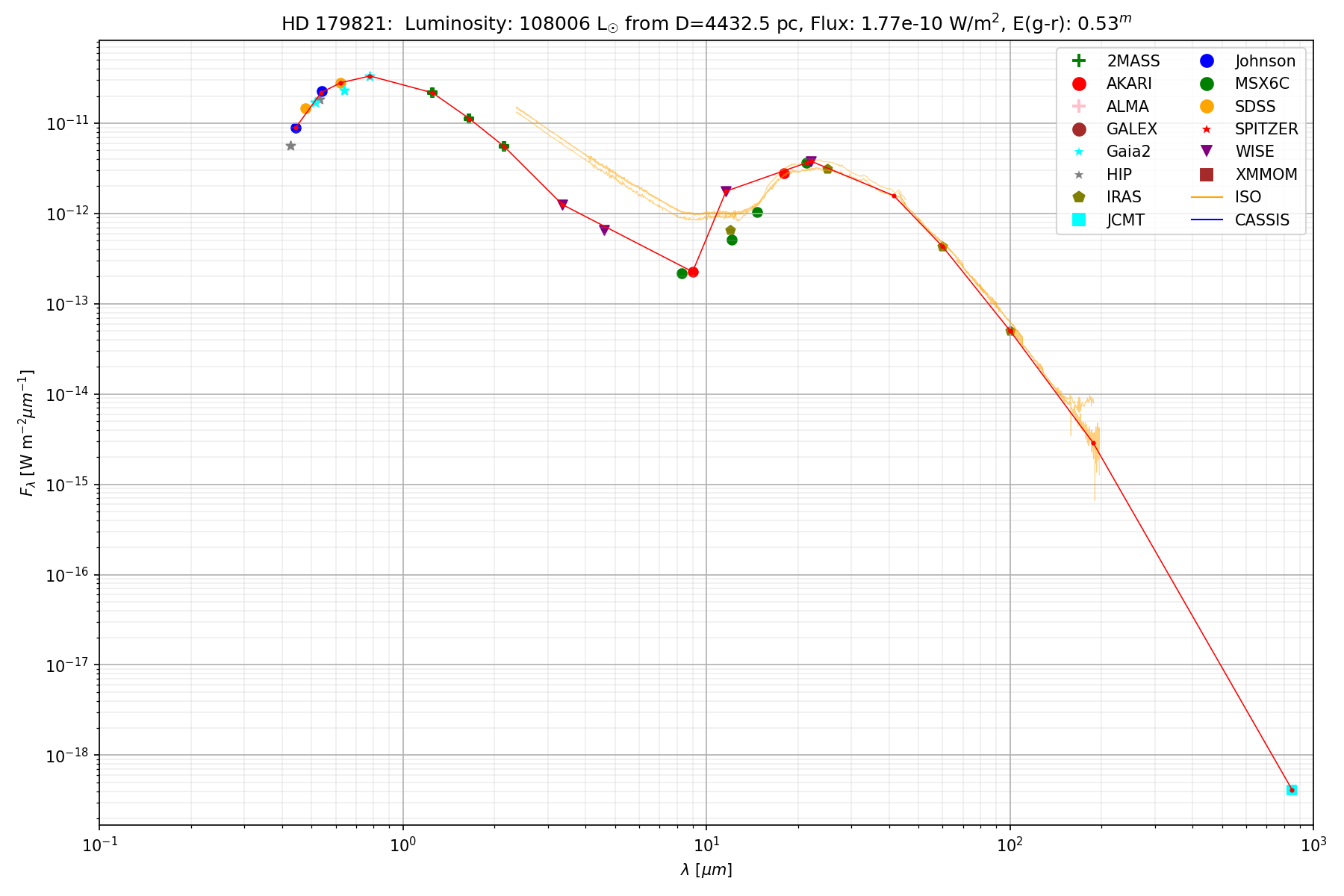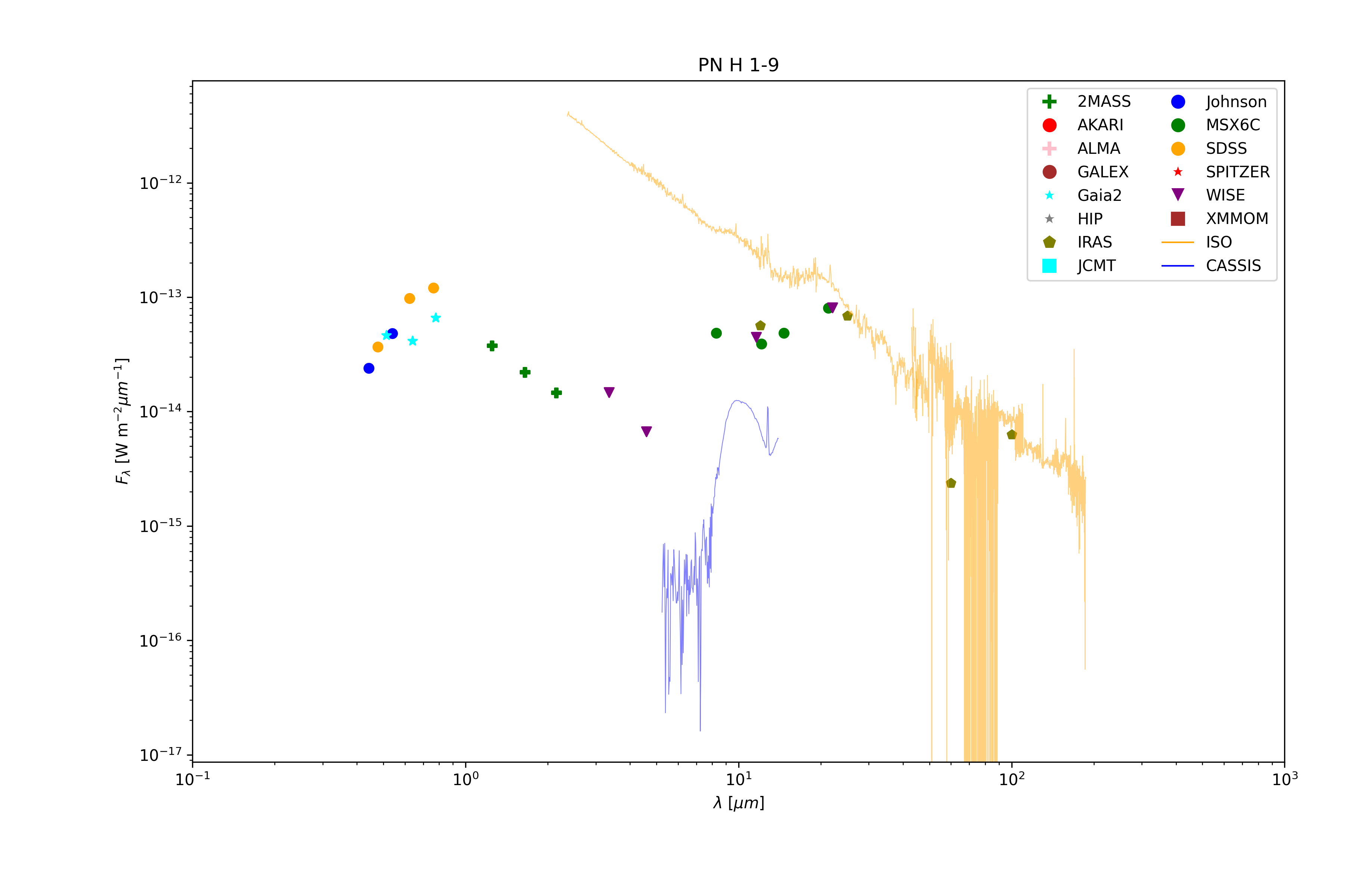 So, for each object, a file with our collected photometry, a file with the SED (corrected and uncorrected for interstellar absorption), a JSON containing all defined and collected data, and an archive with all ISO and Spitzer data and spectra (if available) are available.