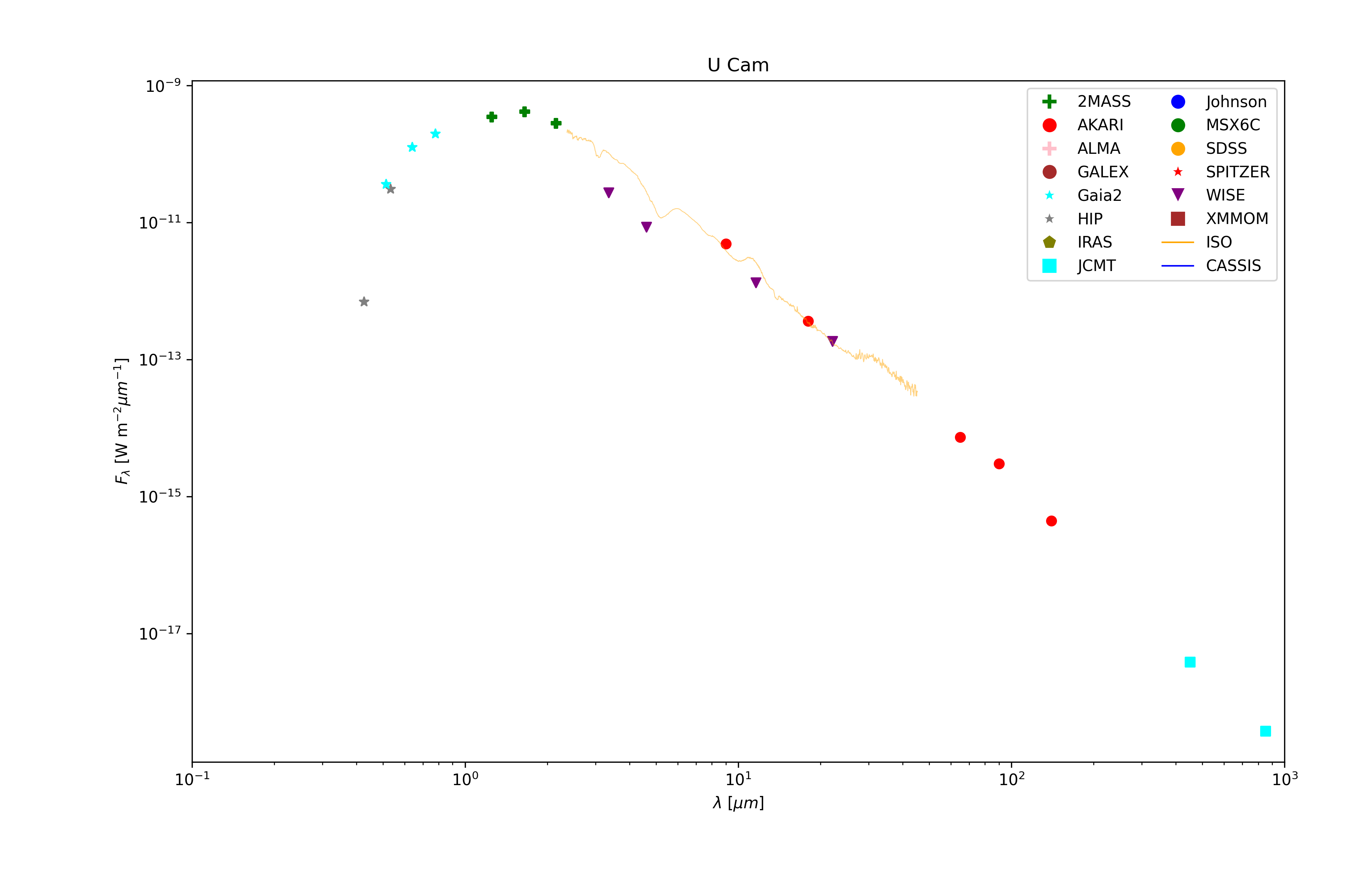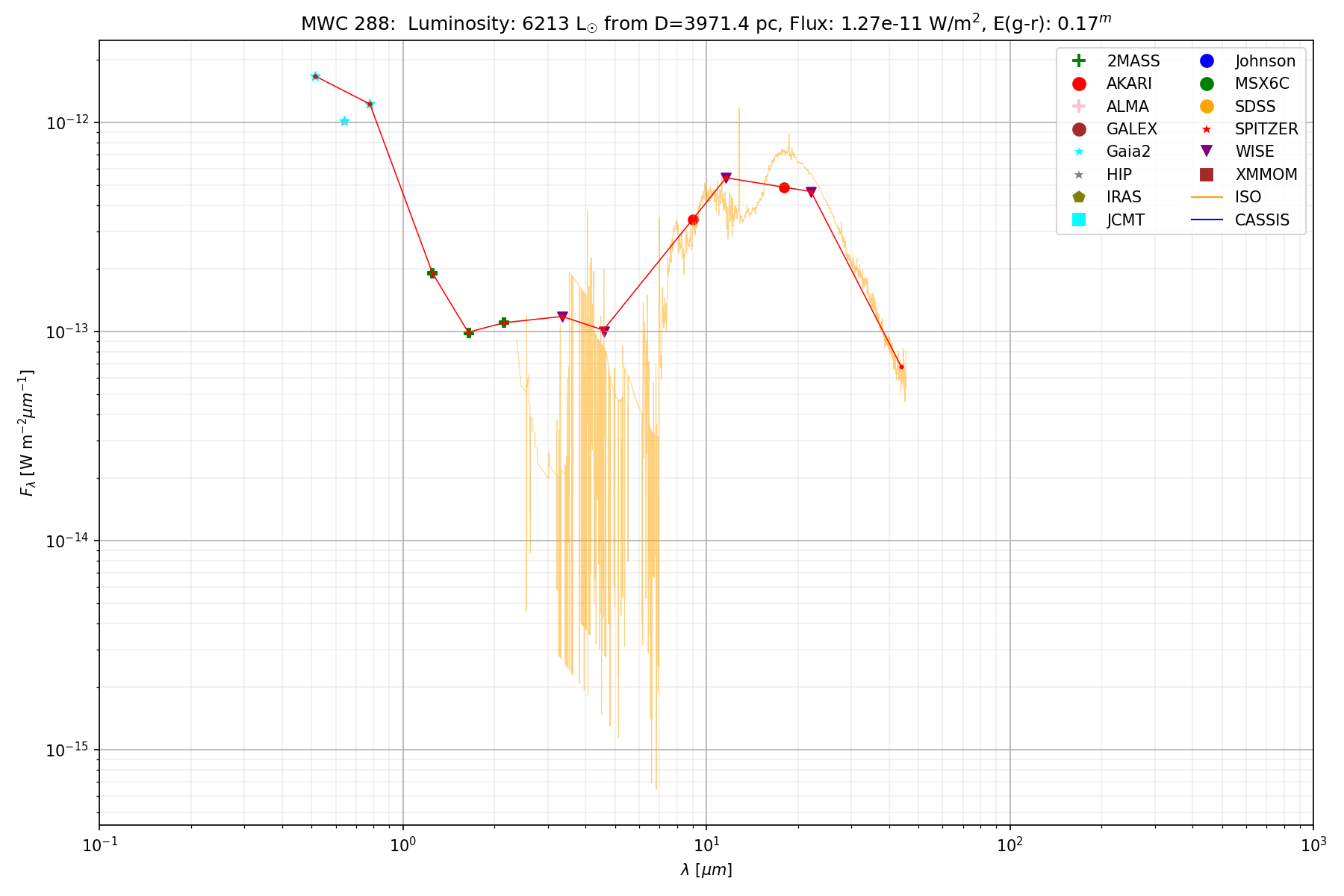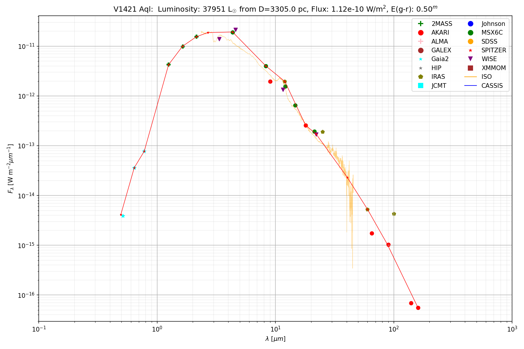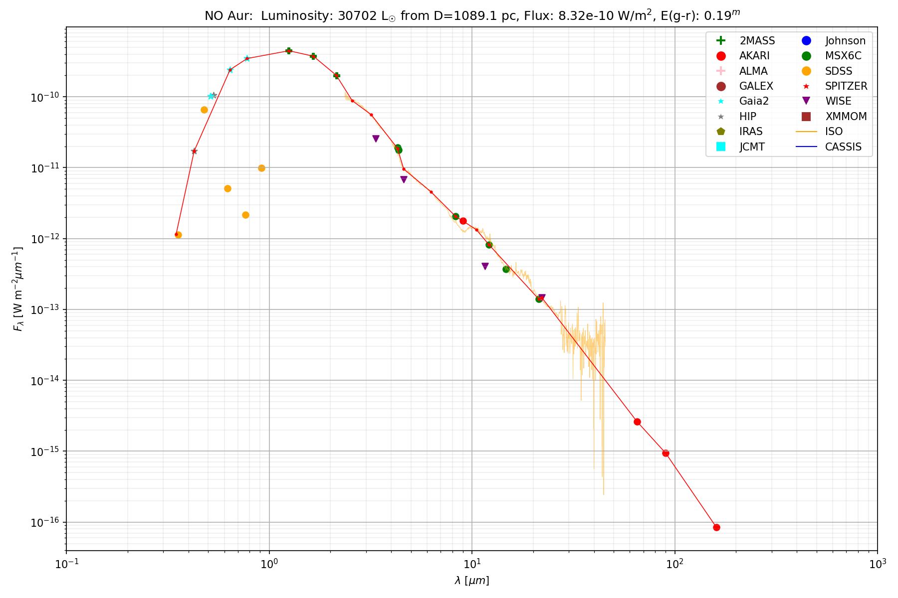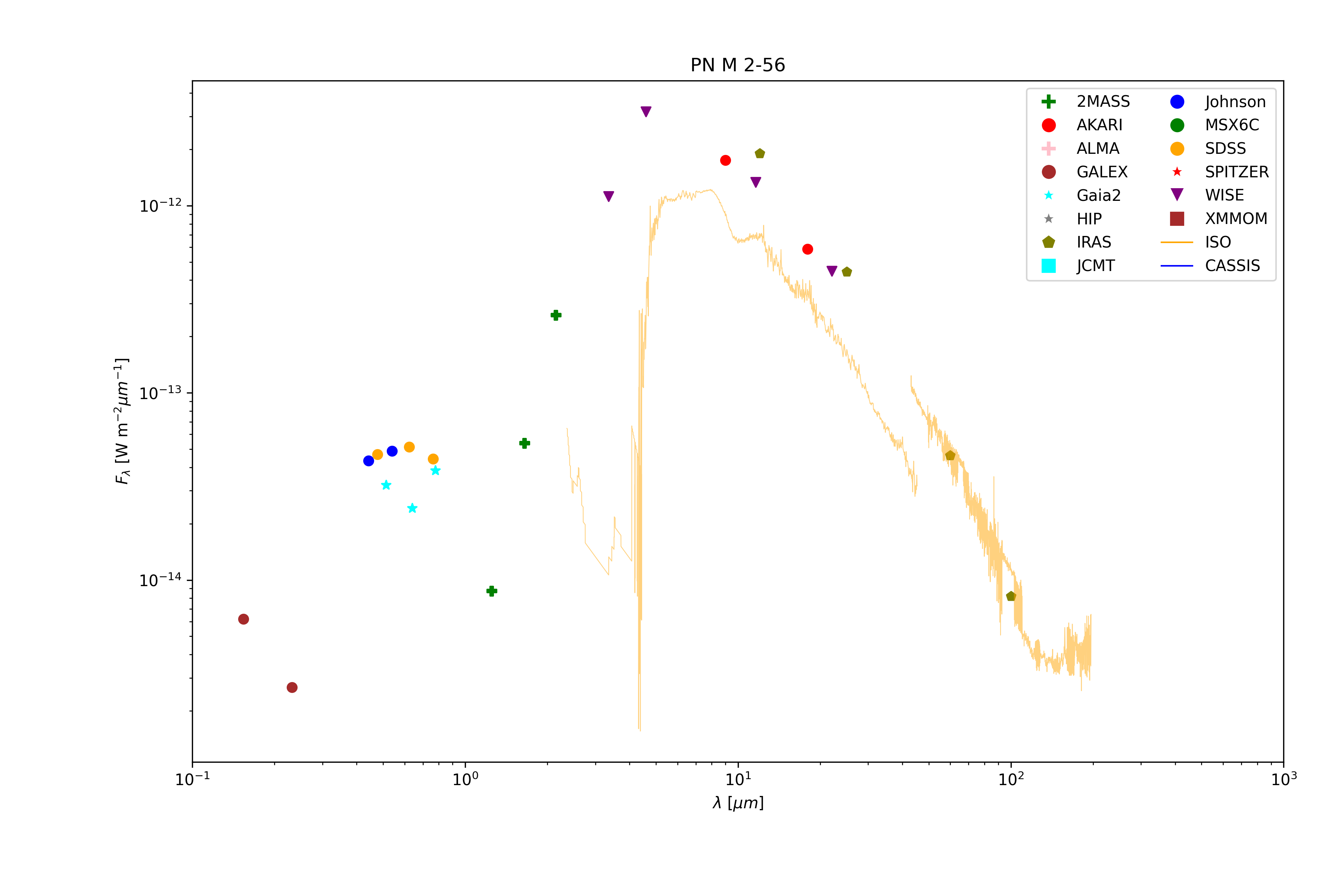 So, for each object, a file with our collected photometry, a file with the SED (corrected and uncorrected for interstellar absorption), a JSON containing all defined and collected data, and an archive with all ISO and Spitzer data and spectra (if available) are available.