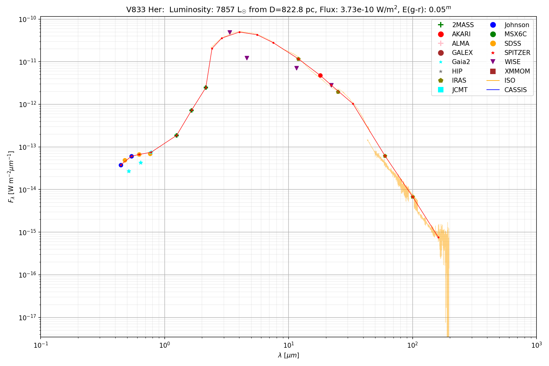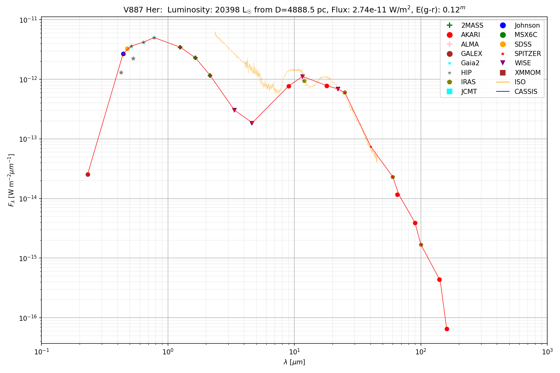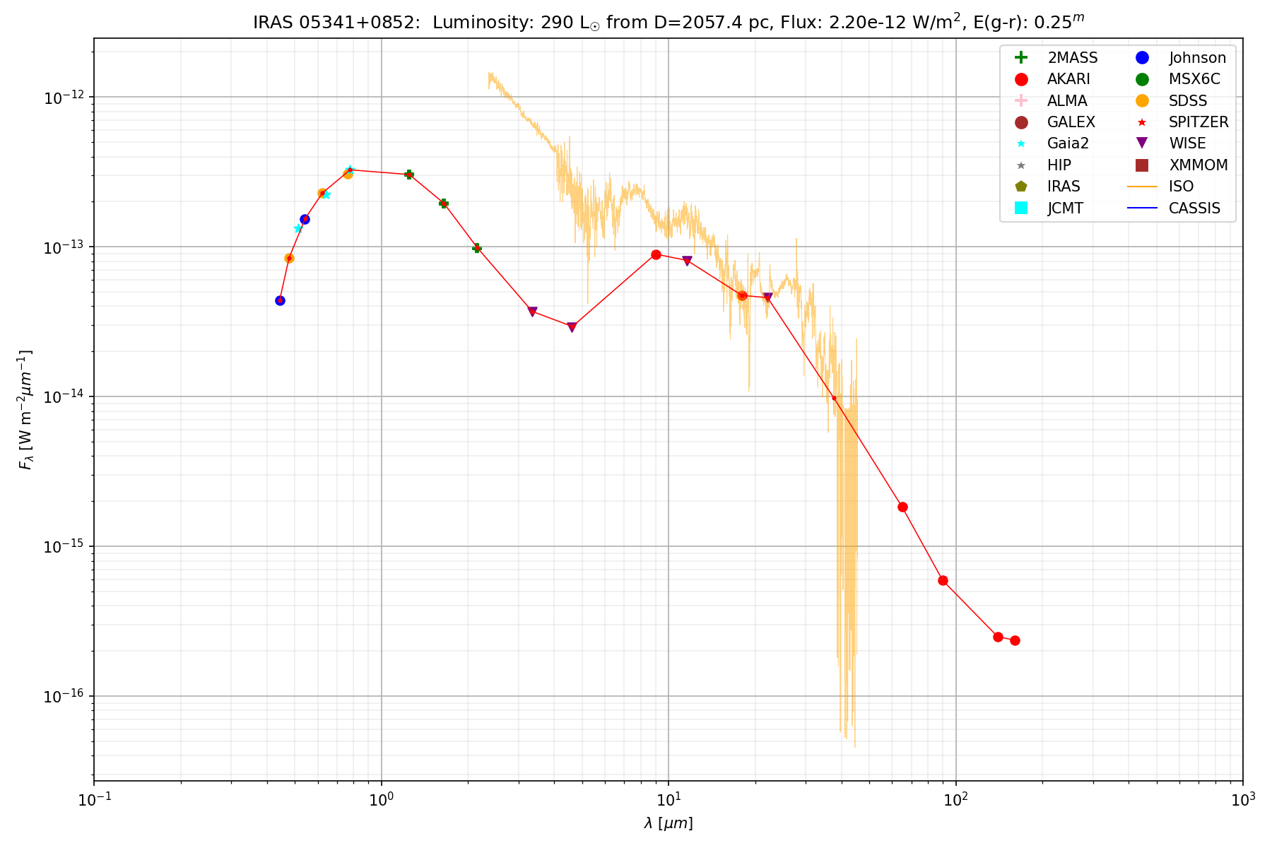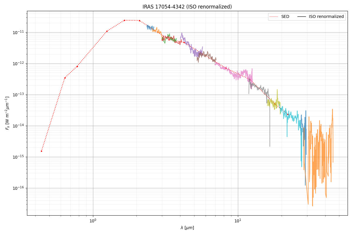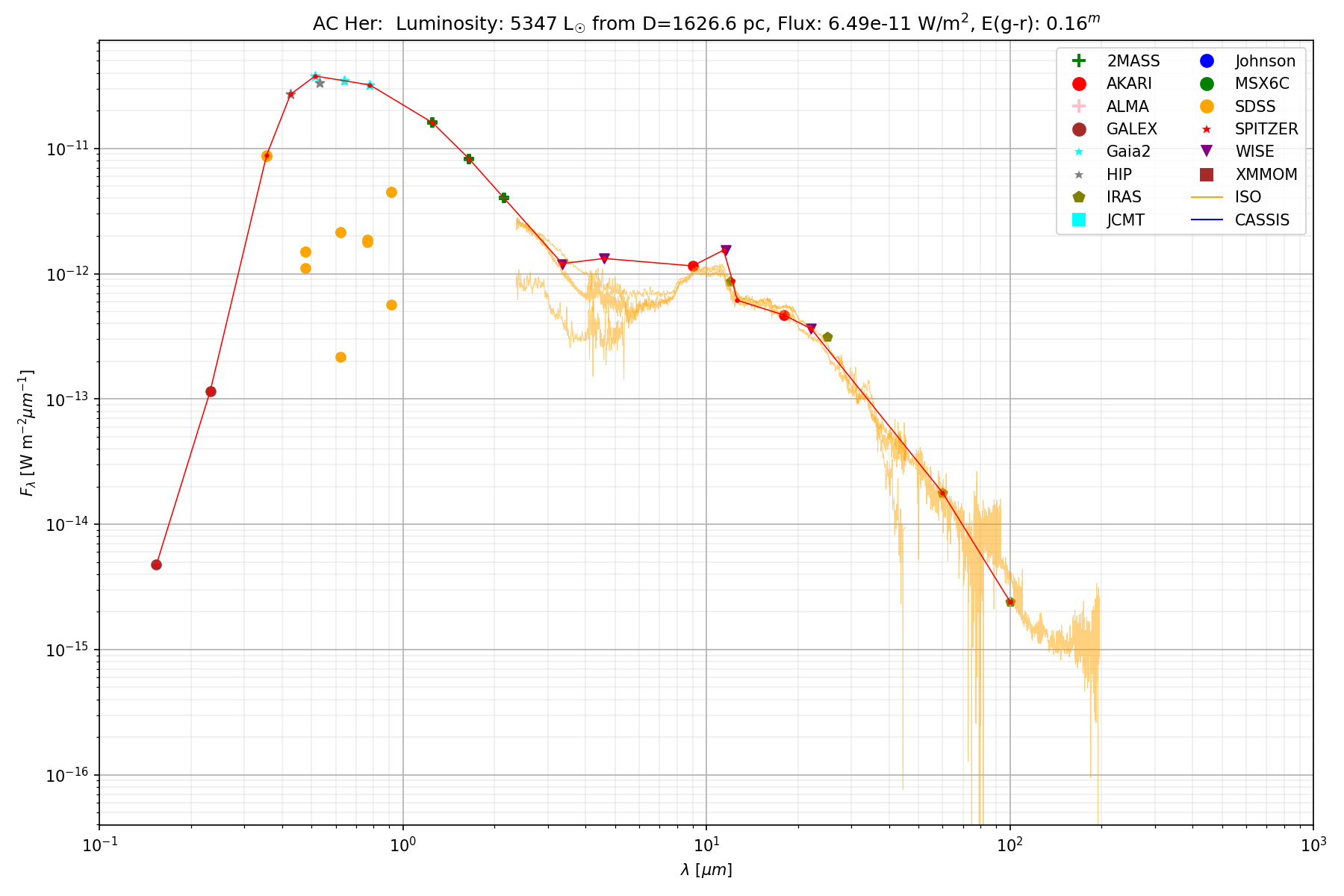 So, for each object, a file with our collected photometry, a file with the SED (corrected and uncorrected for interstellar absorption), a JSON containing all defined and collected data, and an archive with all ISO and Spitzer data and spectra (if available) are available.