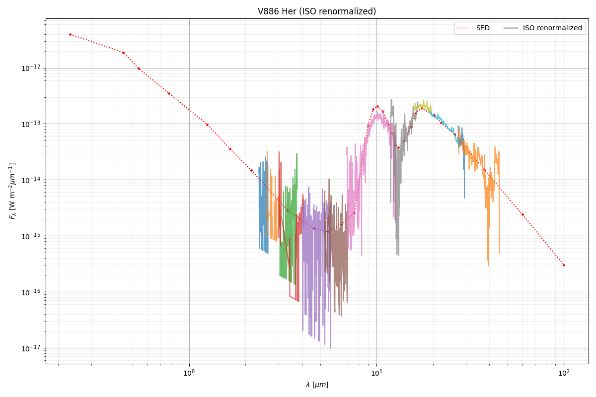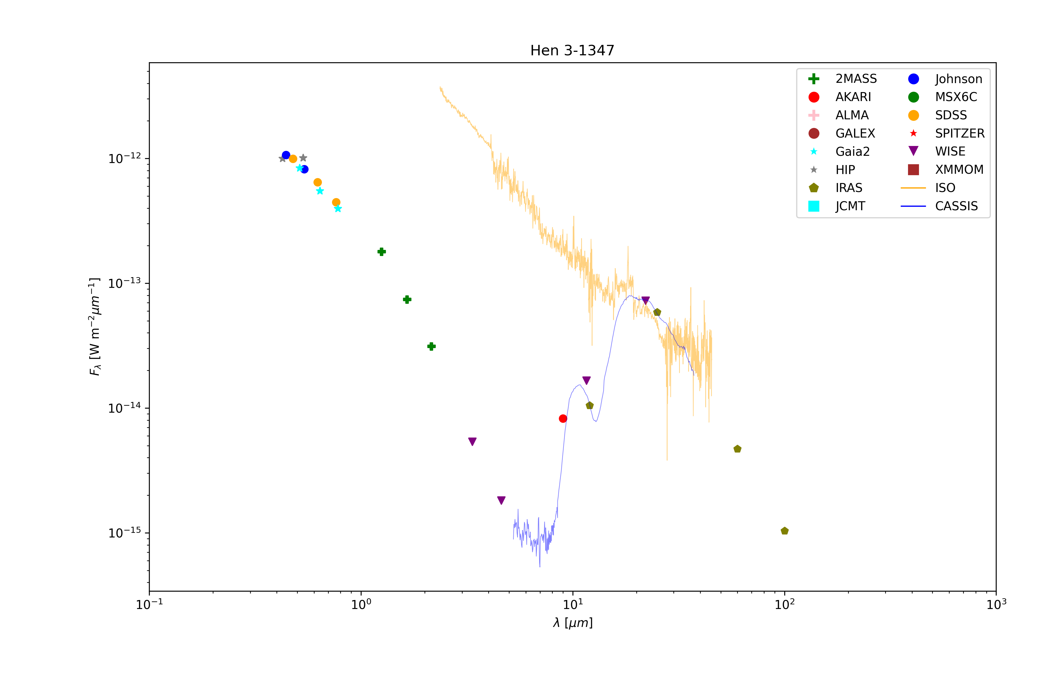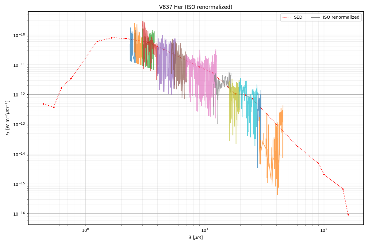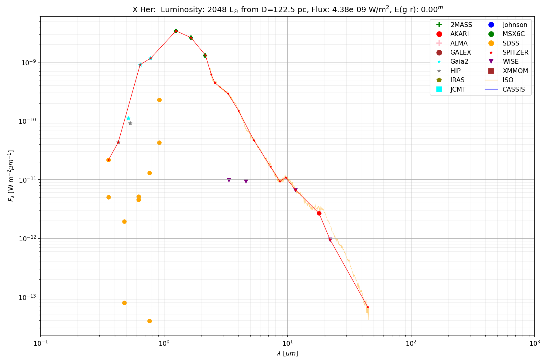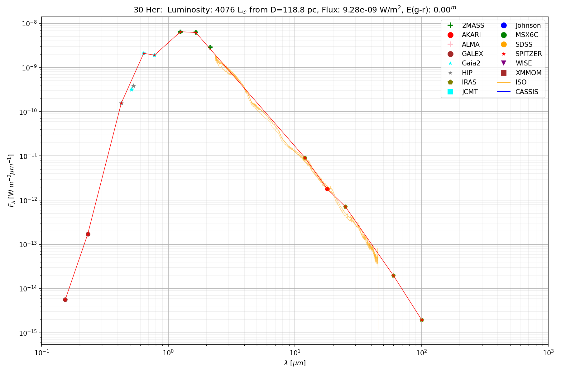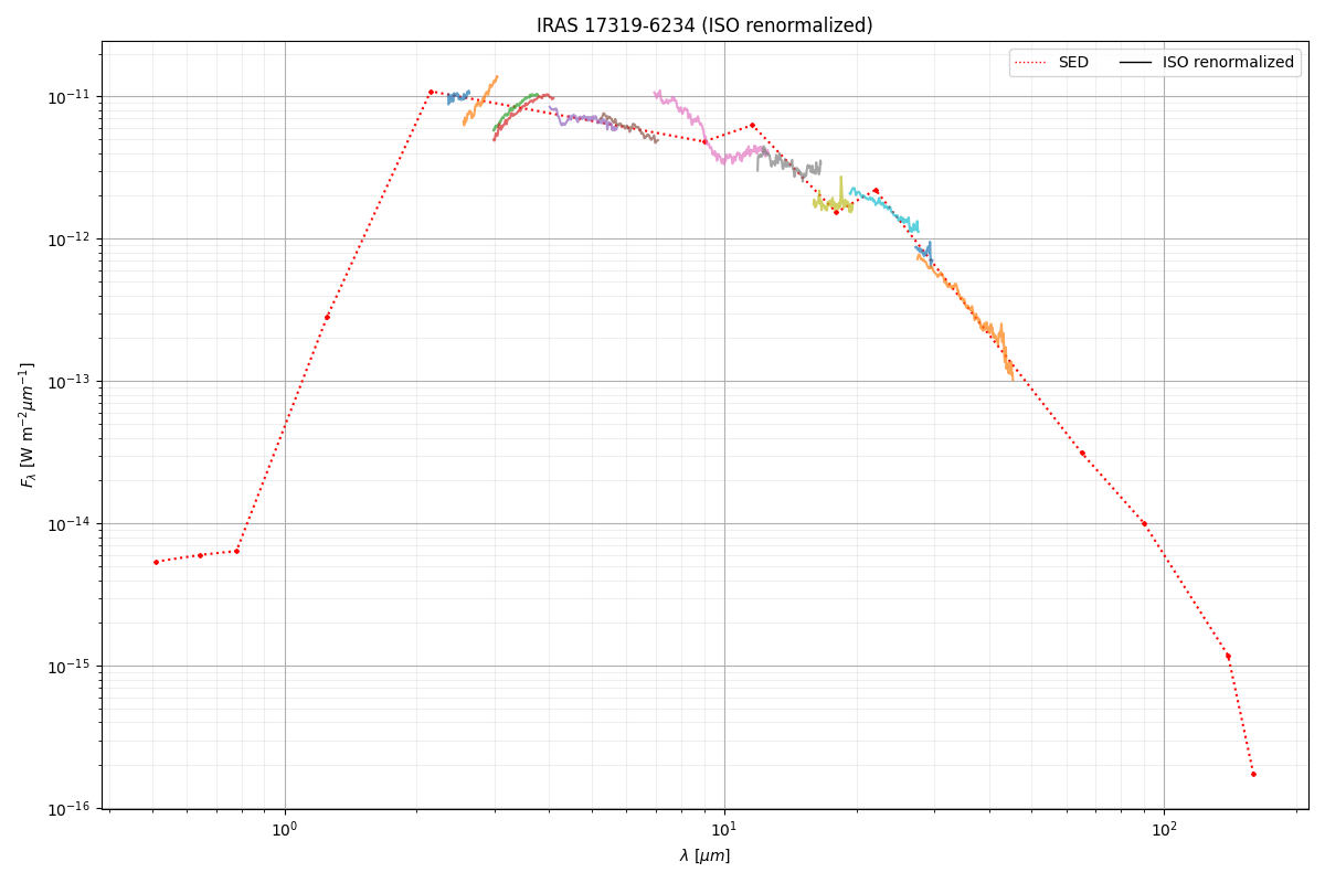 So, for each object, a file with our collected photometry, a file with the SED (corrected and uncorrected for interstellar absorption), a JSON containing all defined and collected data, and an archive with all ISO and Spitzer data and spectra (if available) are available.