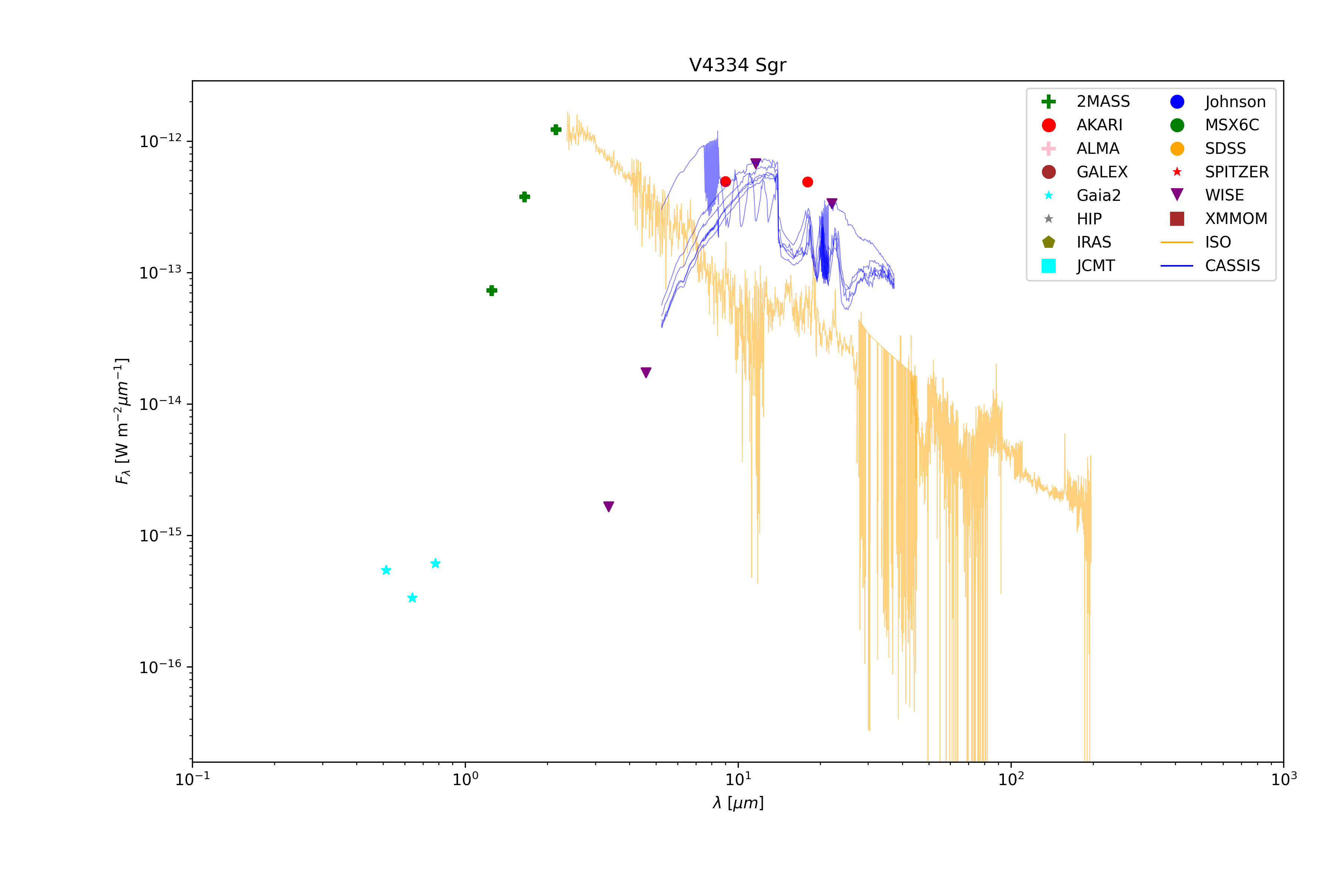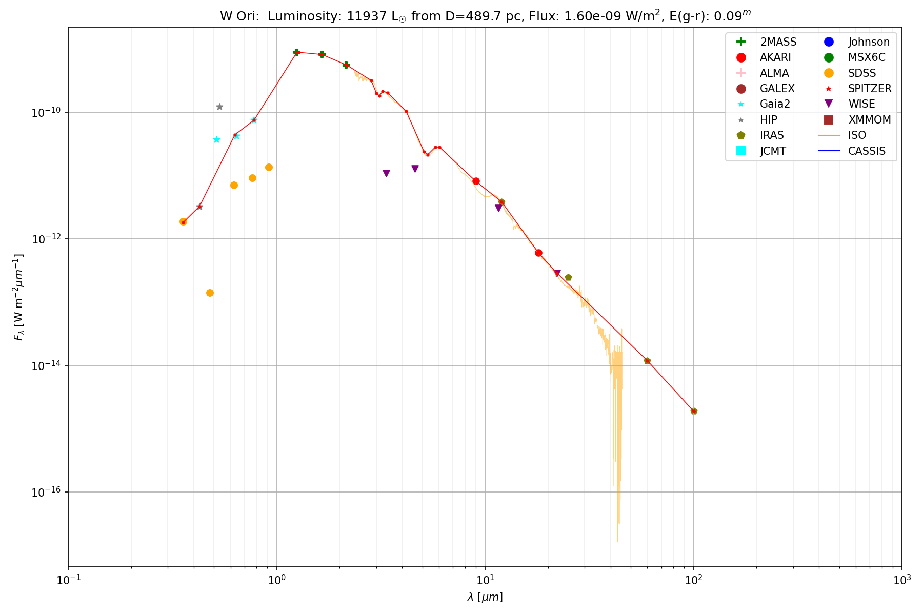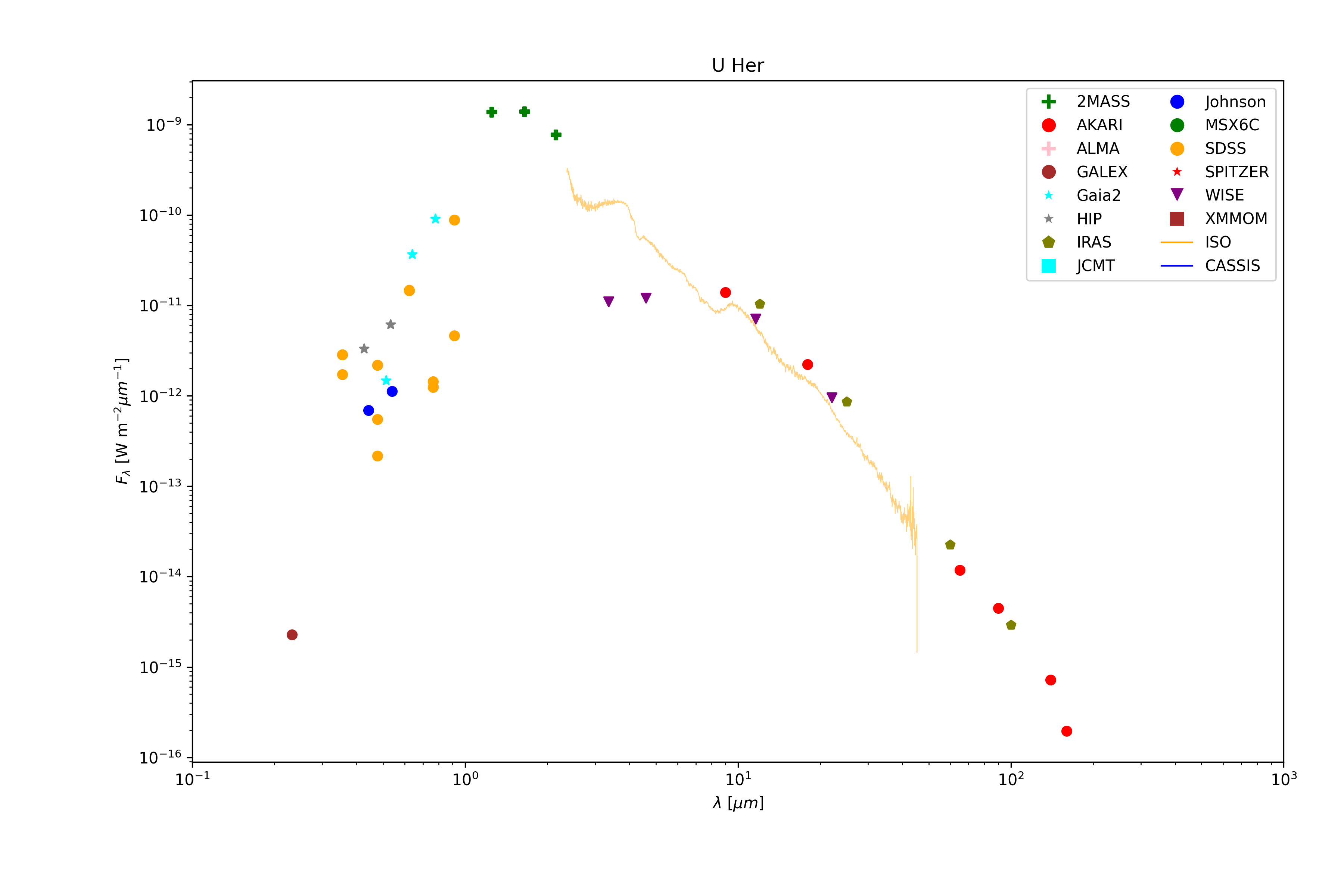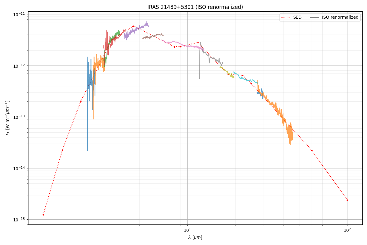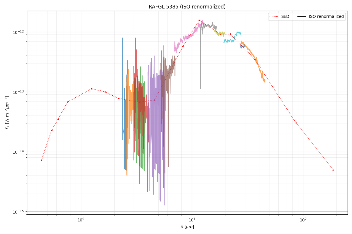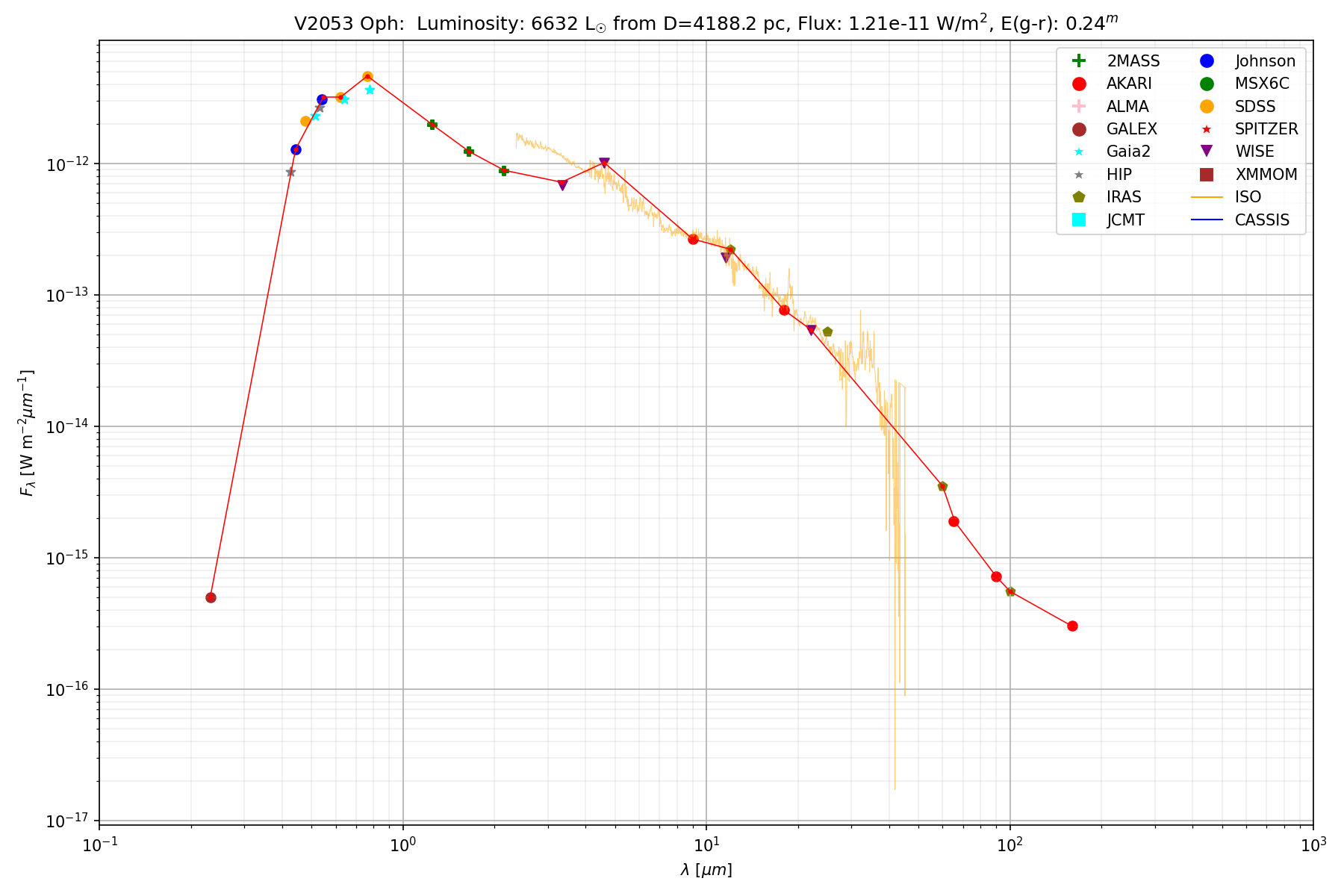 So, for each object, a file with our collected photometry, a file with the SED (corrected and uncorrected for interstellar absorption), a JSON containing all defined and collected data, and an archive with all ISO and Spitzer data and spectra (if available) are available.