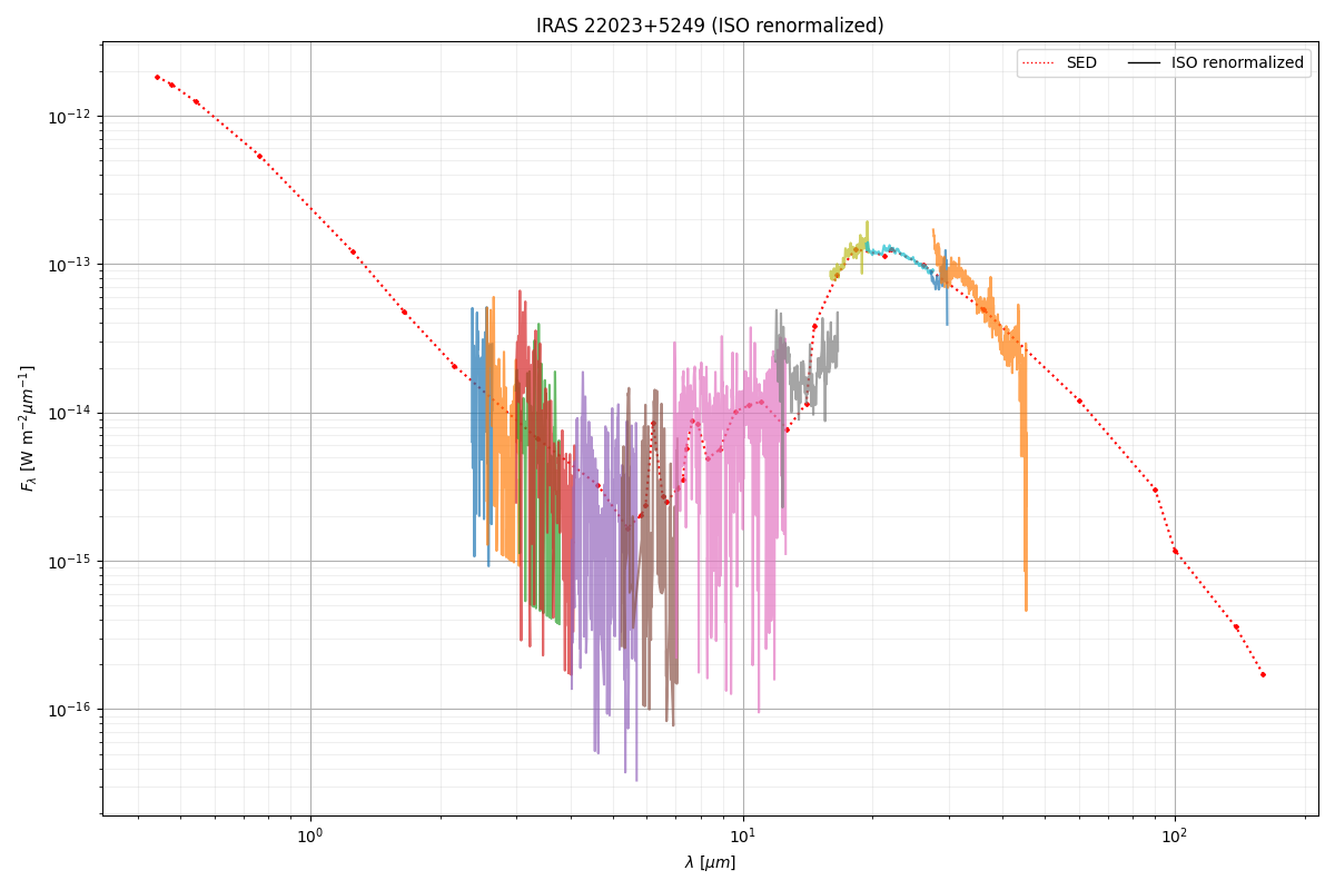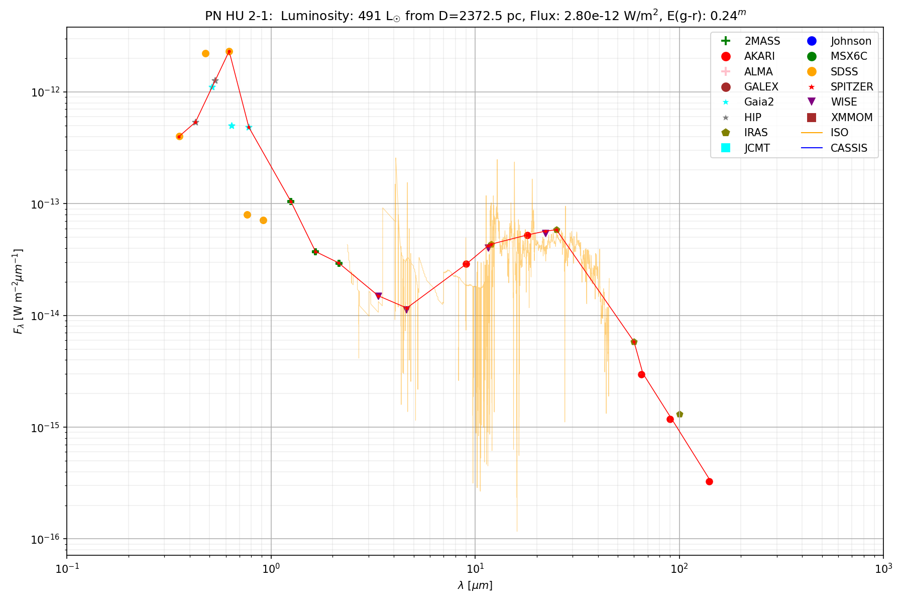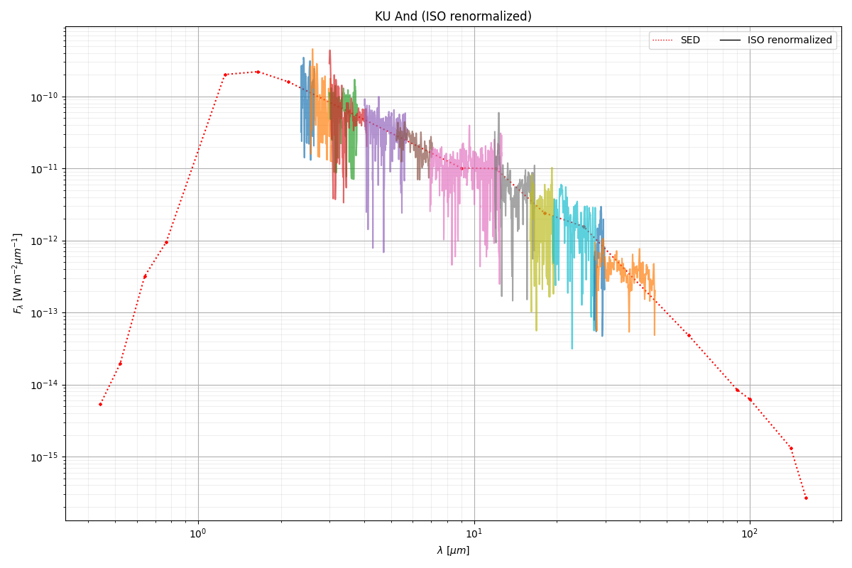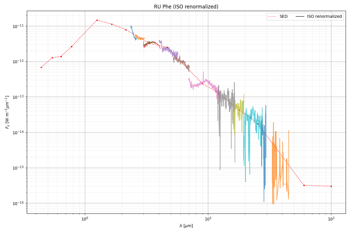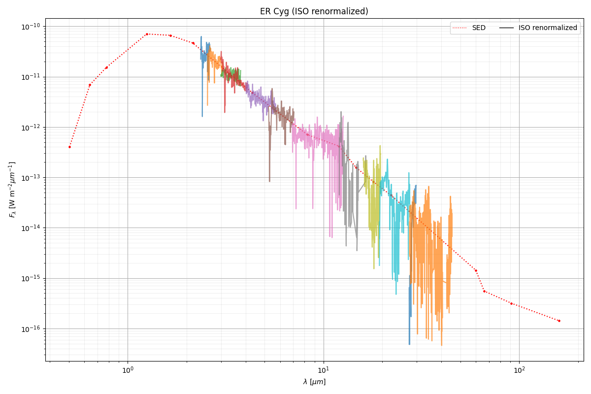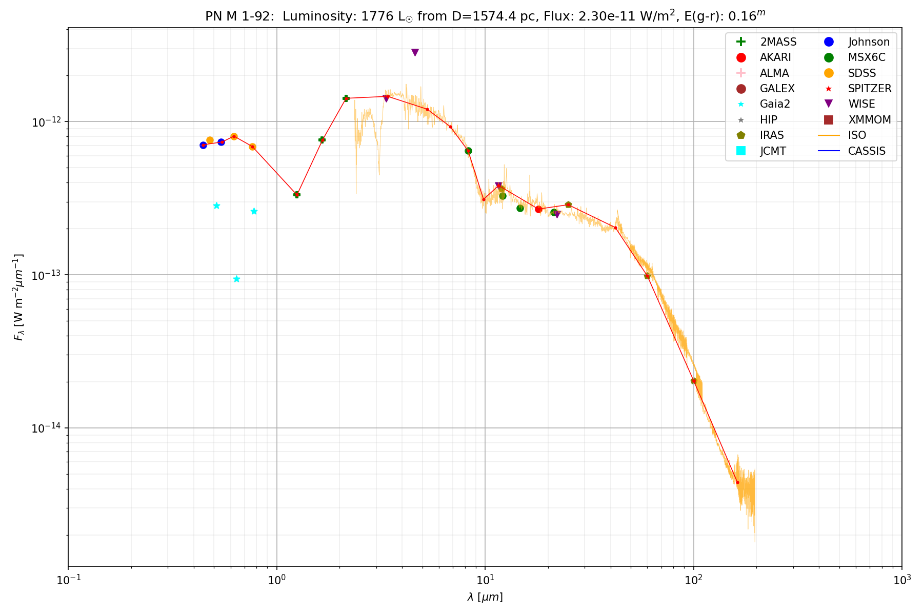 So, for each object, a file with our collected photometry, a file with the SED (corrected and uncorrected for interstellar absorption), a JSON containing all defined and collected data, and an archive with all ISO and Spitzer data and spectra (if available) are available.