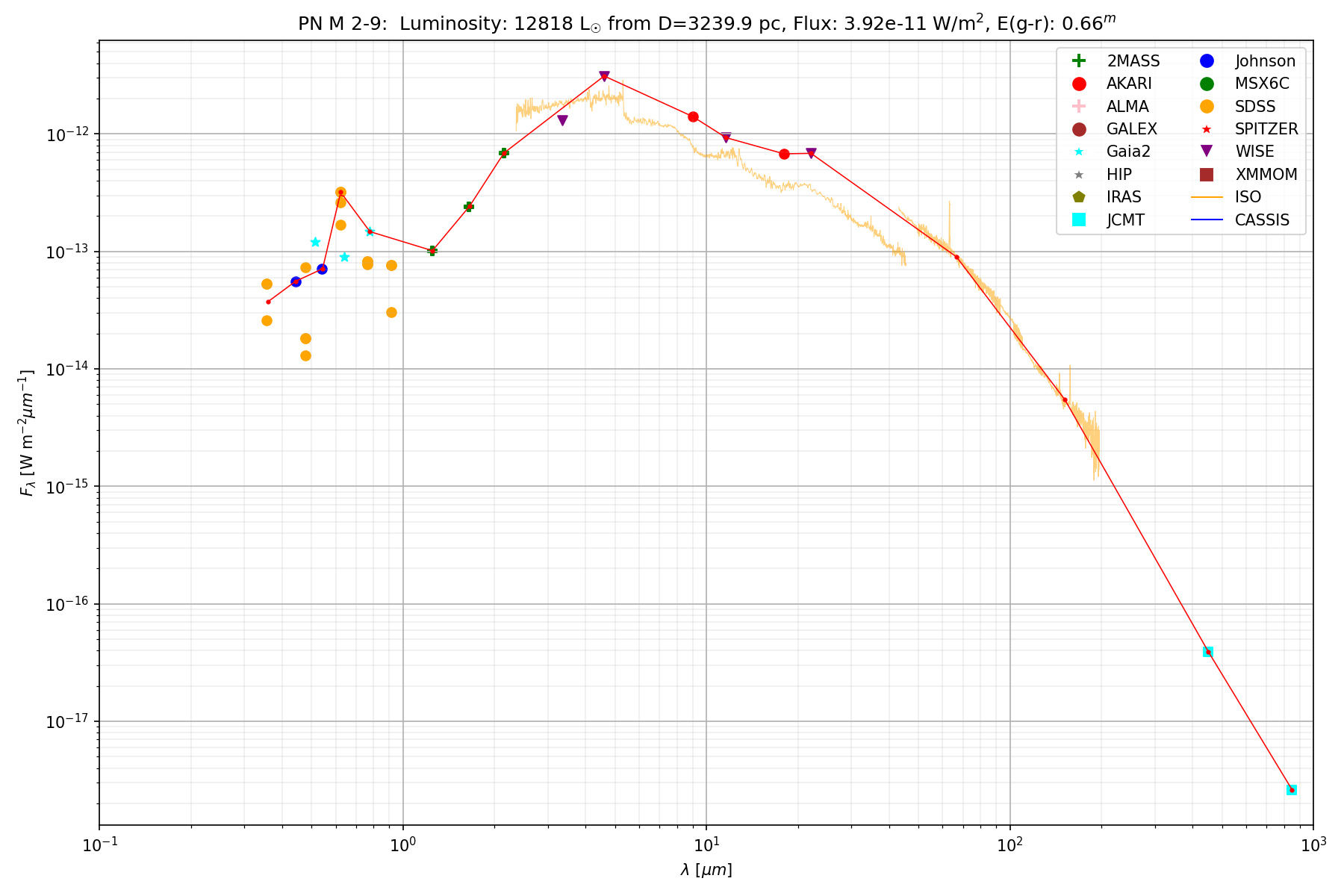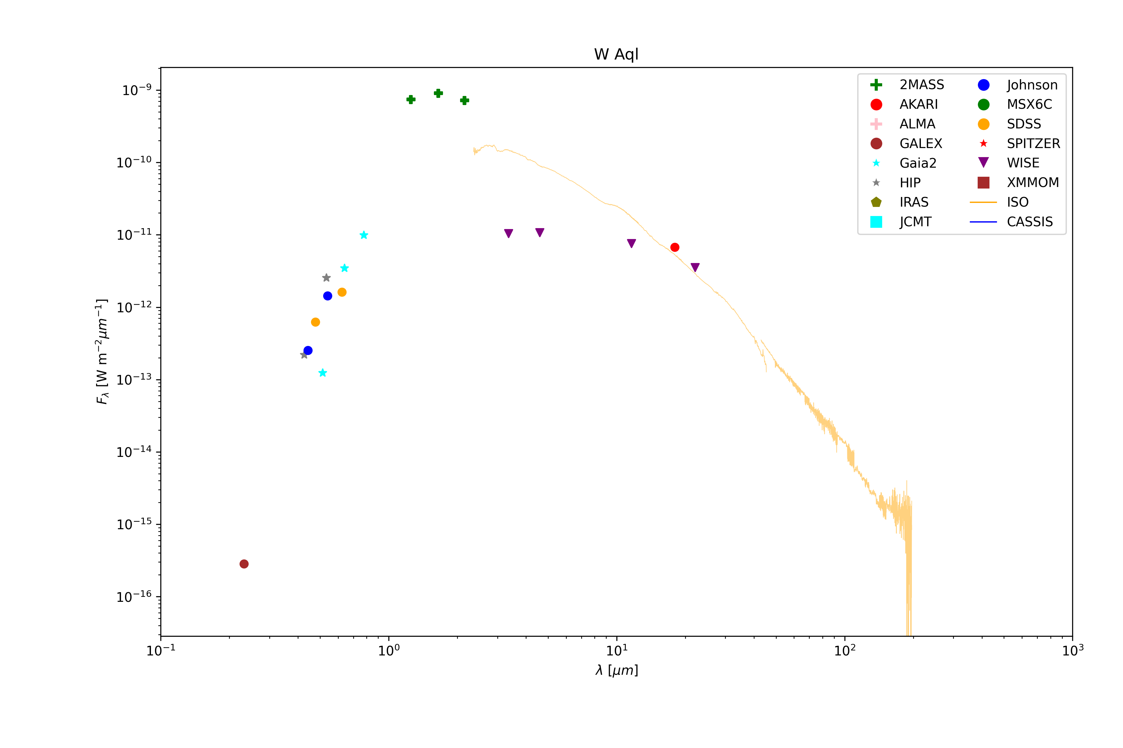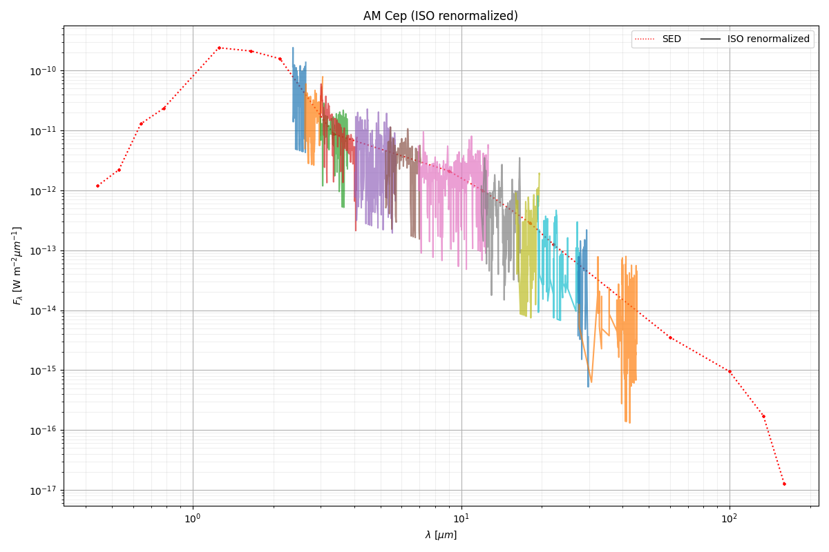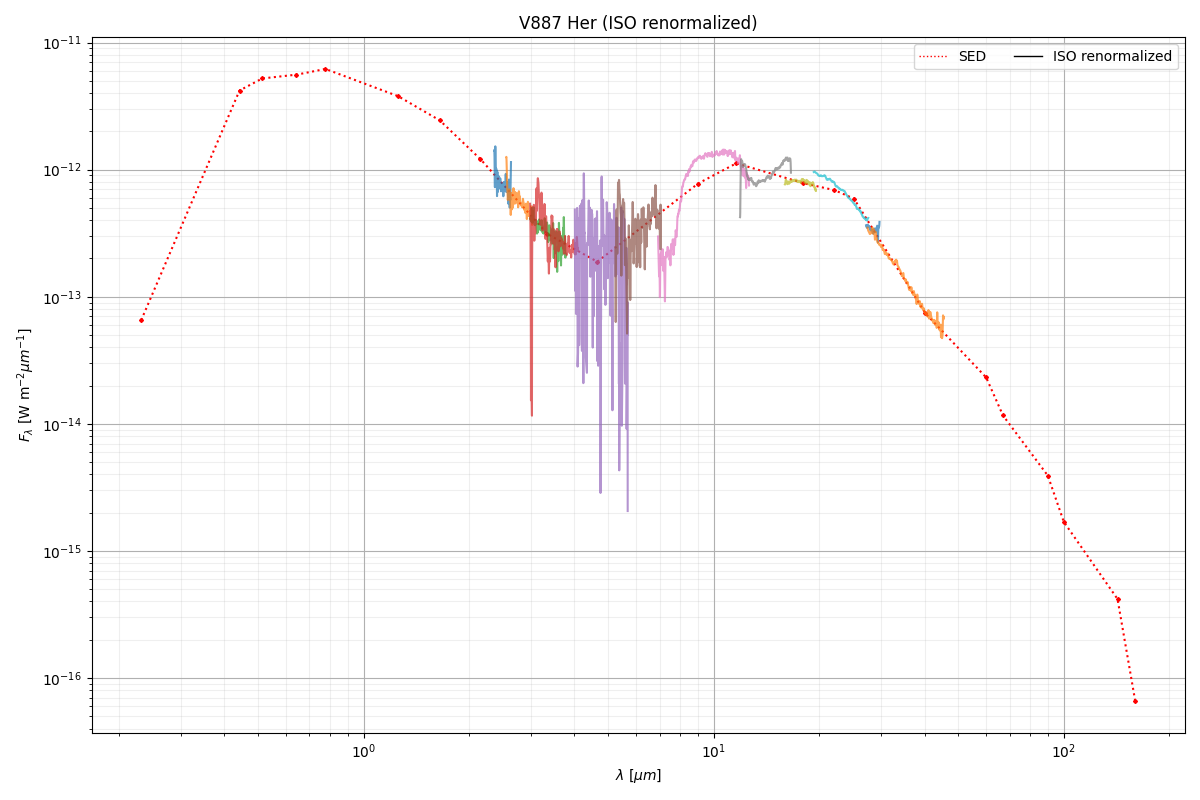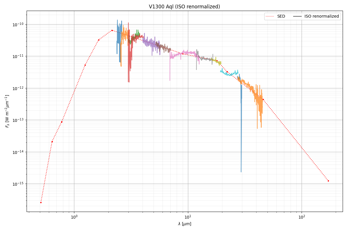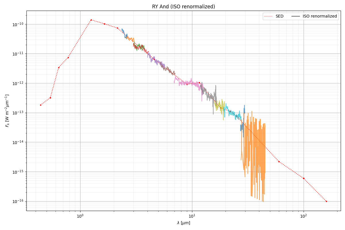 So, for each object, a file with our collected photometry, a file with the SED (corrected and uncorrected for interstellar absorption), a JSON containing all defined and collected data, and an archive with all ISO and Spitzer data and spectra (if available) are available.