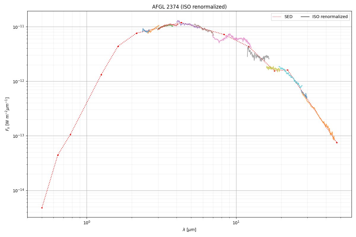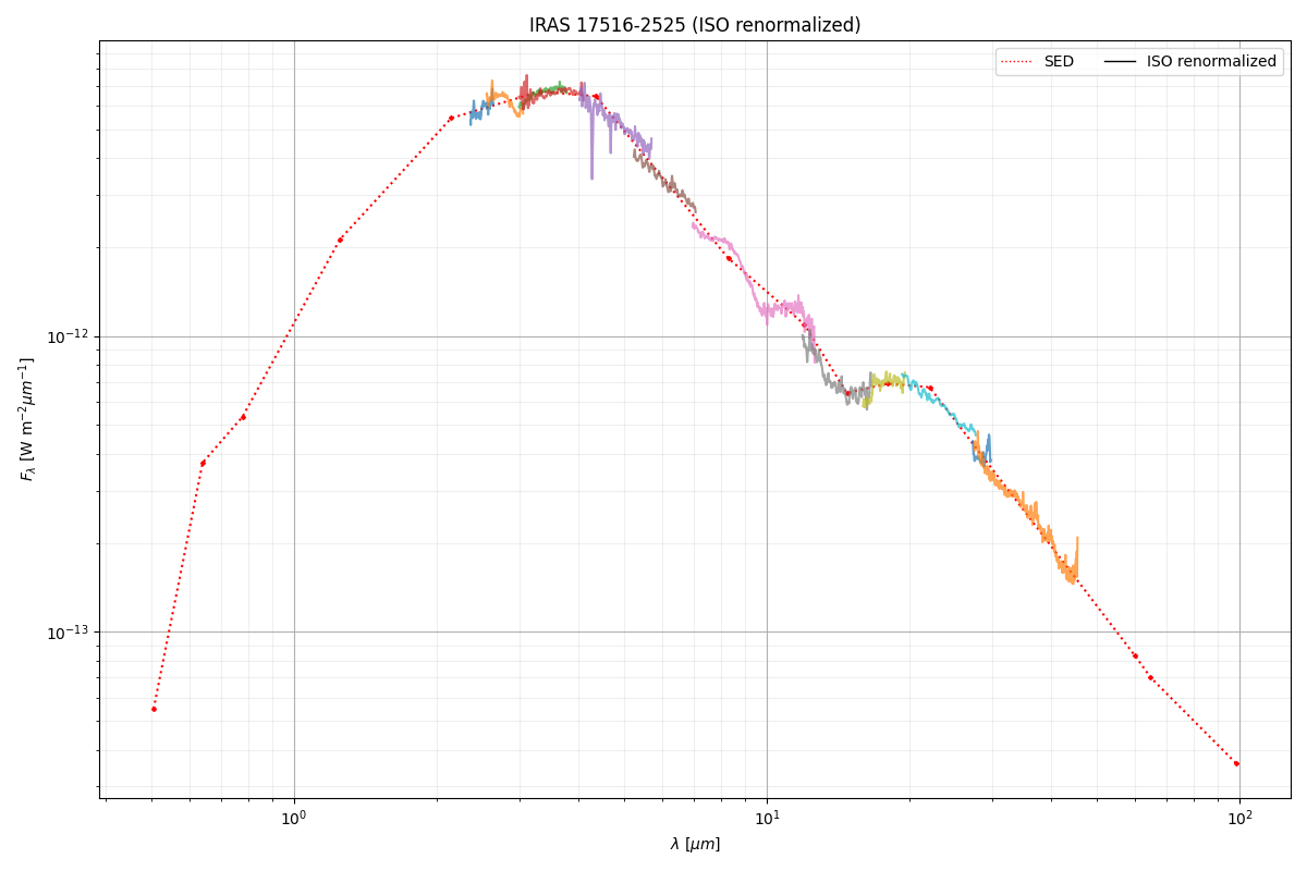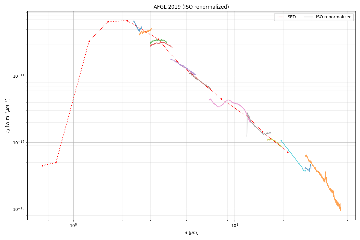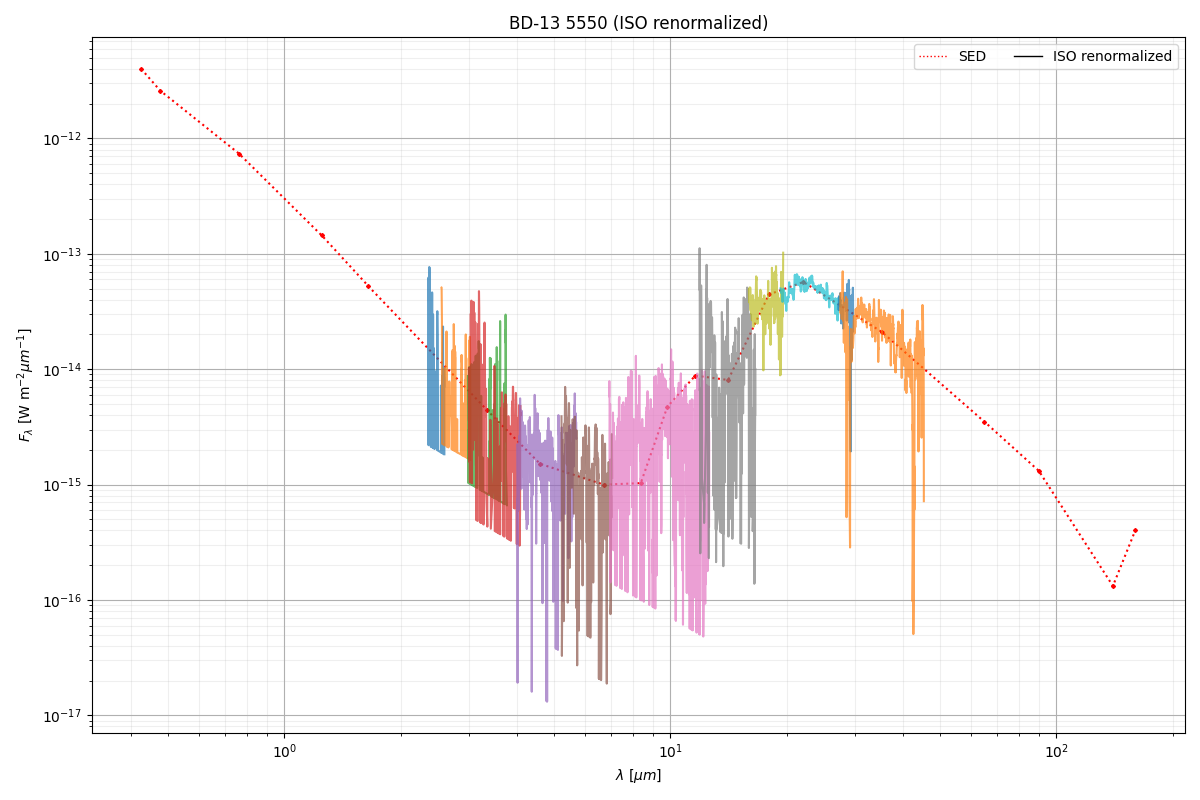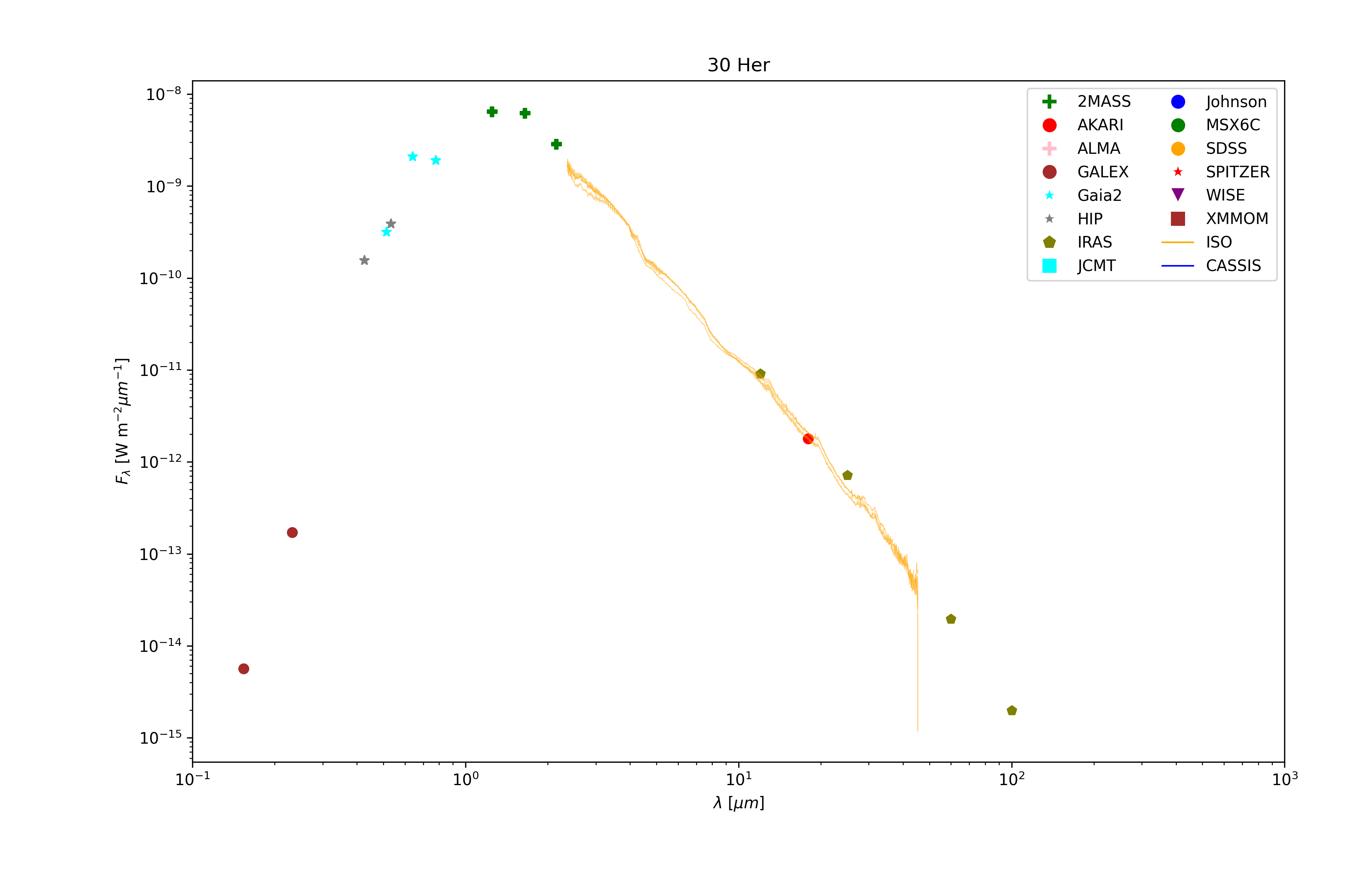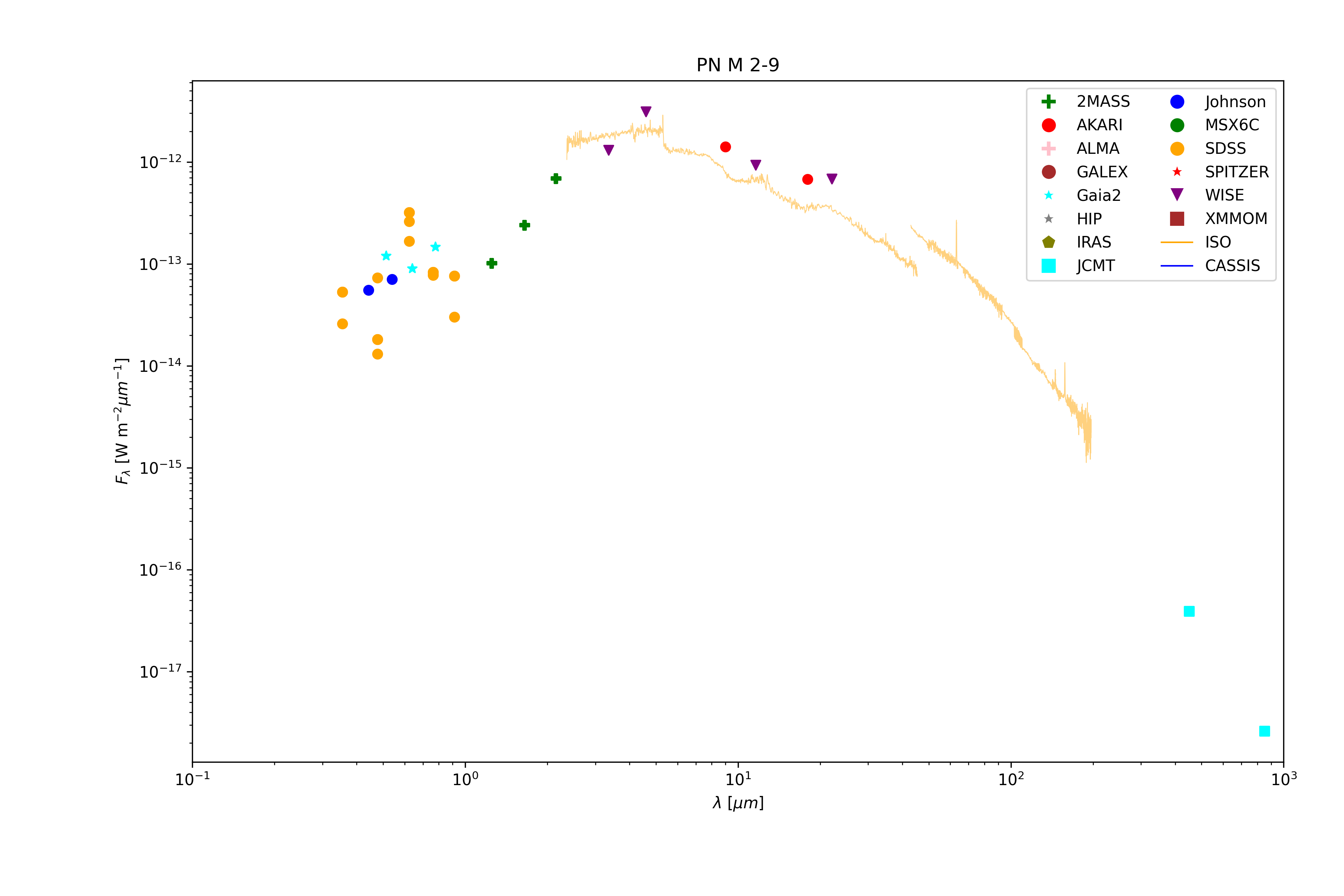 So, for each object, a file with our collected photometry, a file with the SED (corrected and uncorrected for interstellar absorption), a JSON containing all defined and collected data, and an archive with all ISO and Spitzer data and spectra (if available) are available.