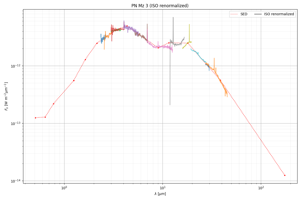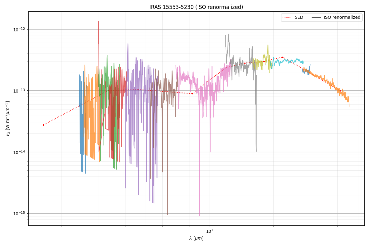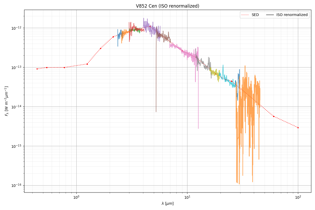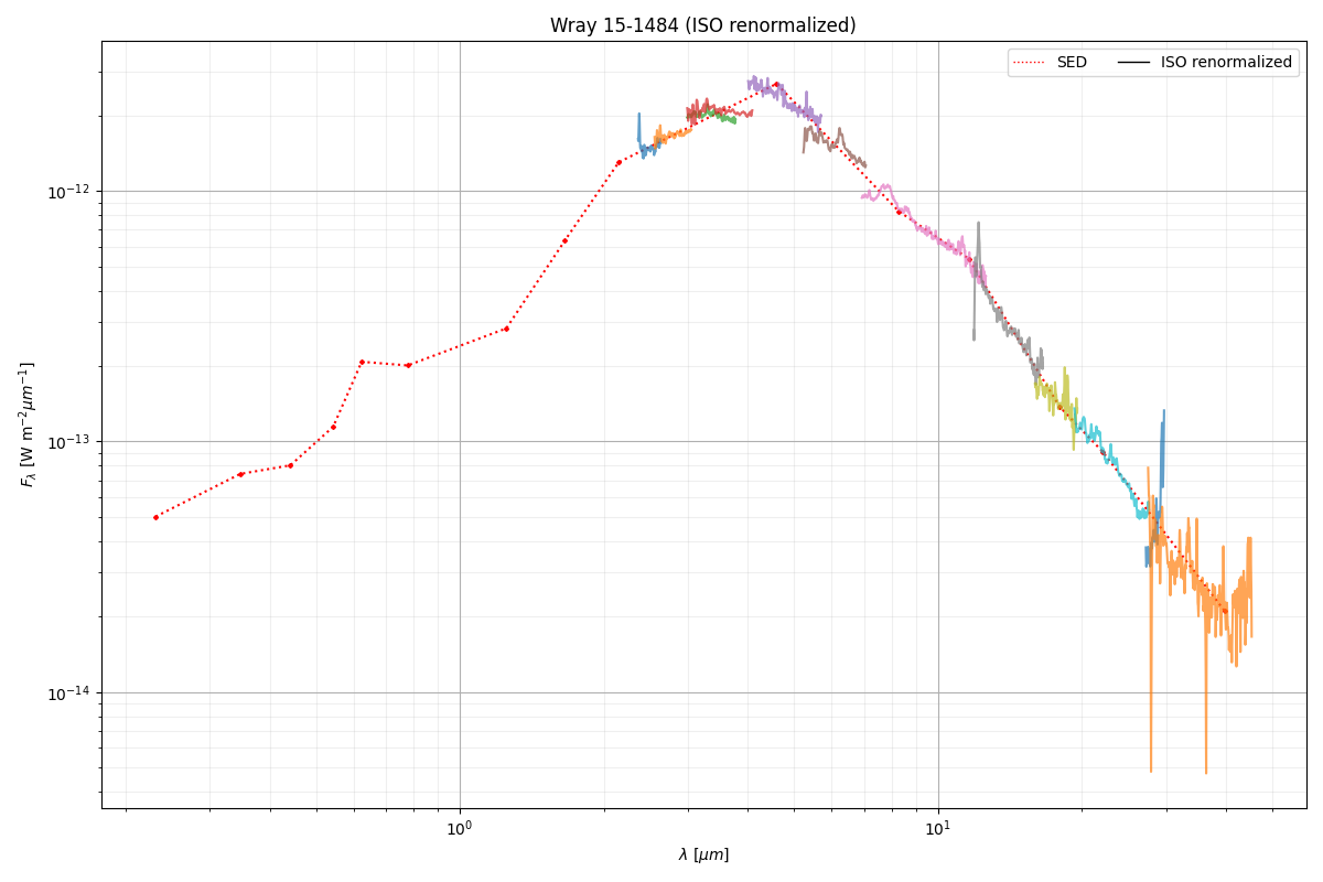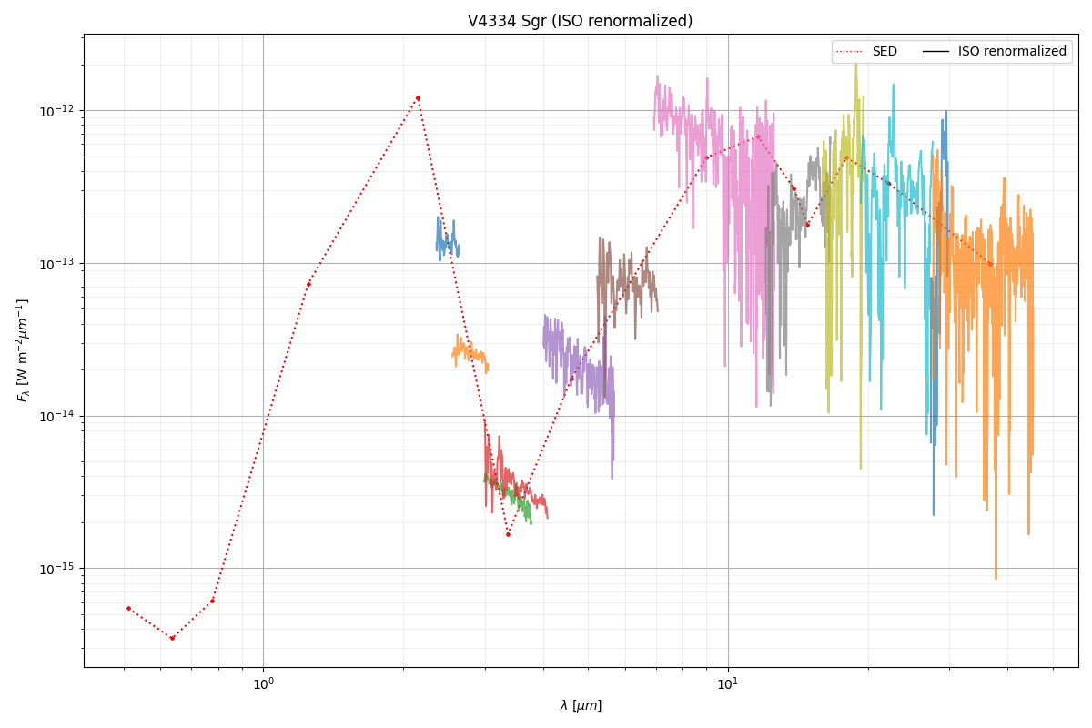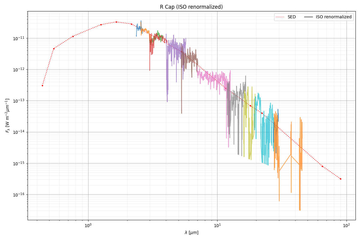 So, for each object, a file with our collected photometry, a file with the SED (corrected and uncorrected for interstellar absorption), a JSON containing all defined and collected data, and an archive with all ISO and Spitzer data and spectra (if available) are available.