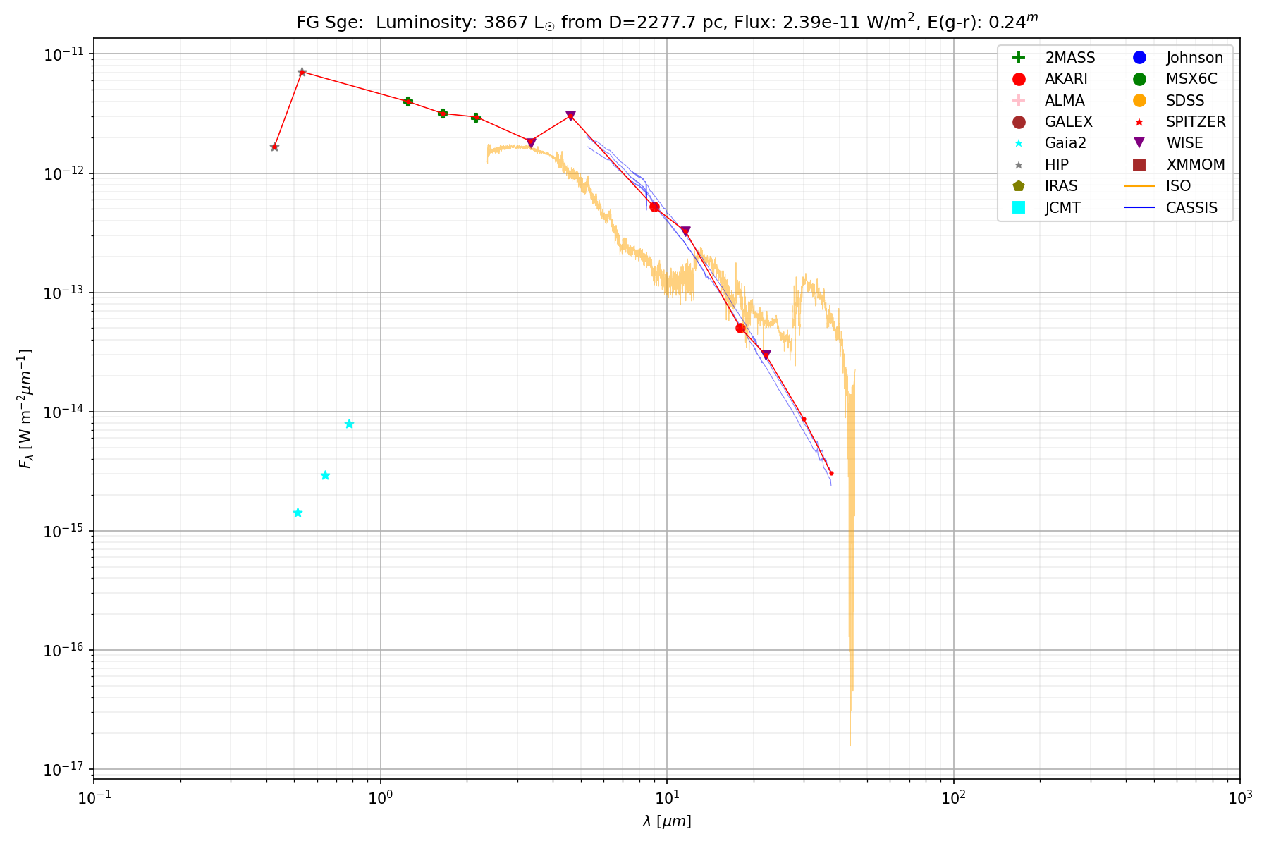 | FG Sge | post-AGB, ? | 20:11:56.06 | 20:20:04.4 | 7.216 | 2.39e-11 | 3867 | 2277.7 | 0.24 | PPic | +- SPic | N/A | Phot Sed | JSON | Archive |